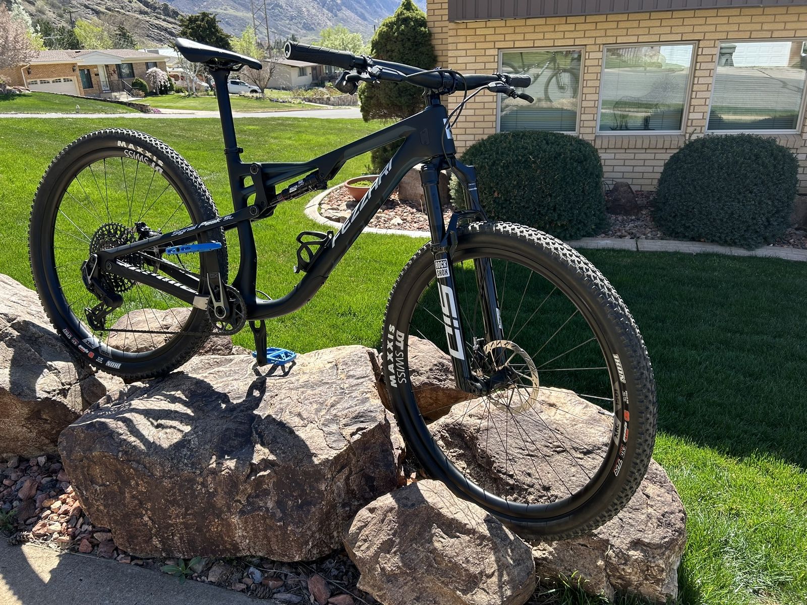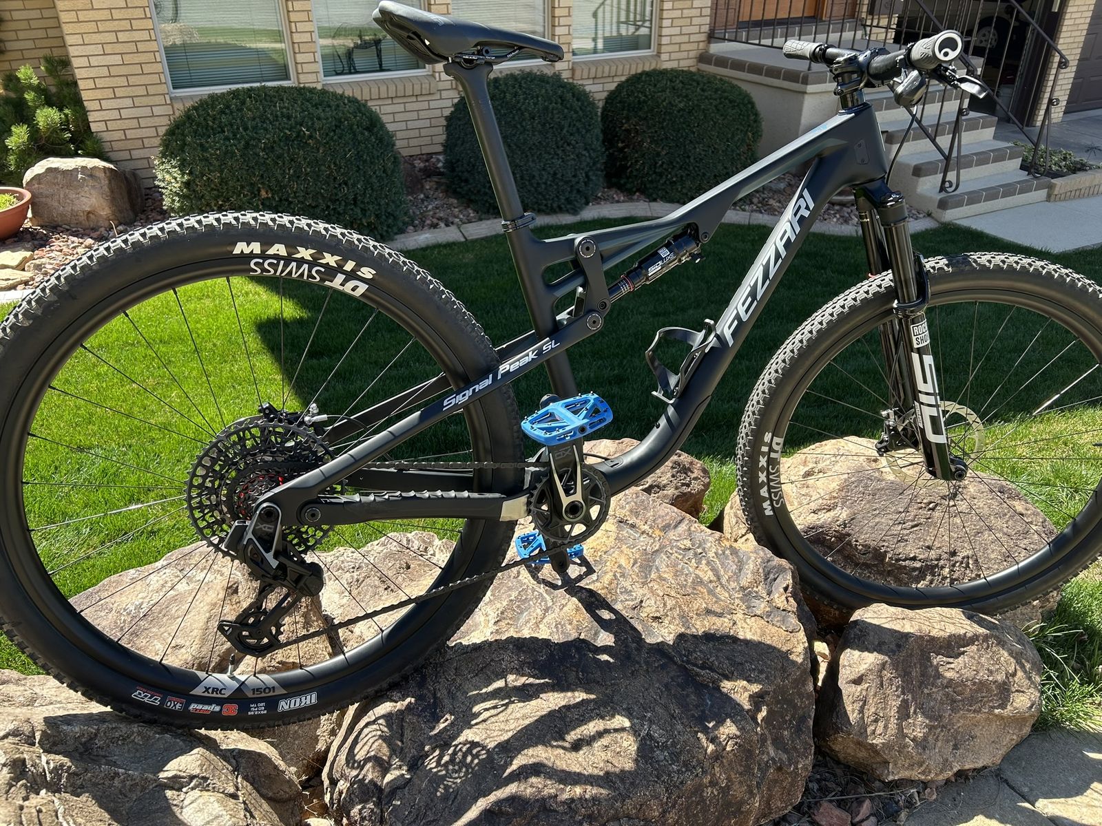 FULL CARBON FULL SUSPENSION MOUNTAIN BIKE. FAZZARI (ARI) SIGNAL PEAK SL. CARBON FRAME, SRAM XO EAGLE AXS TRASMSSION GROUP SET, DT SWISS XRC 1501 WHEEL SET, 240 HUBS. ROCK SHOX ULTIMATE SID FRONT AND REAR SUSPENSION. BIKE IS COMPARABLE TO ONES COSTING THOUSANDS MORE. MEDIUM SIZE FRAME. ONLY RIDDEN 50 MILES. $5,000 CALL OR TEXT GREG 970-409-9970