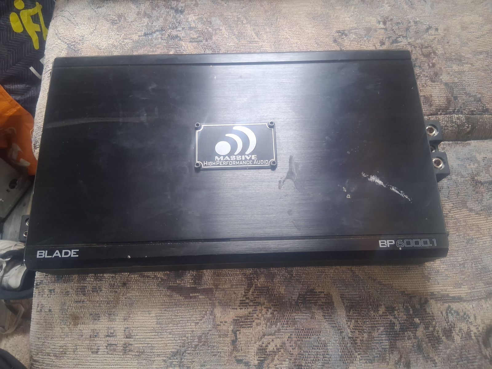 6000 w mono amp this amp has been sitting around doing nothing it's not even broken in yet it's got 3 or 4 hours on it if that I've had it a couple of years