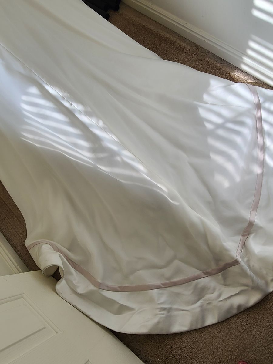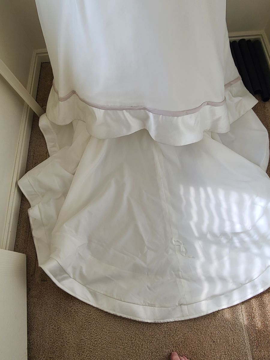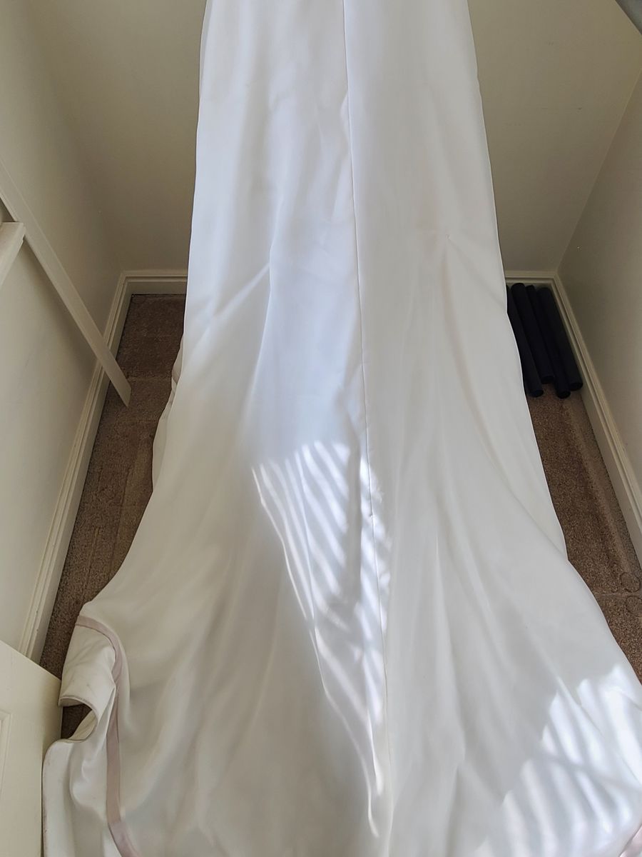 VenmoWedding dress with accompanying veil. Used but in good condition. Size 0. Adjustable train to flow or hook on back of dress.