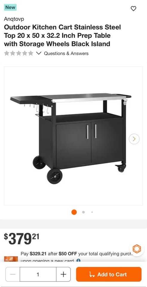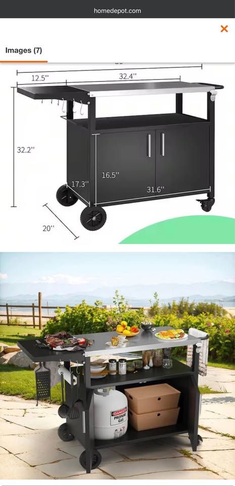 VenmoOutdoor Kitchen Cart Stainless Steel Top 20 x 50 x 32.2 Inch Prep Table with Storage Wheels Black Island