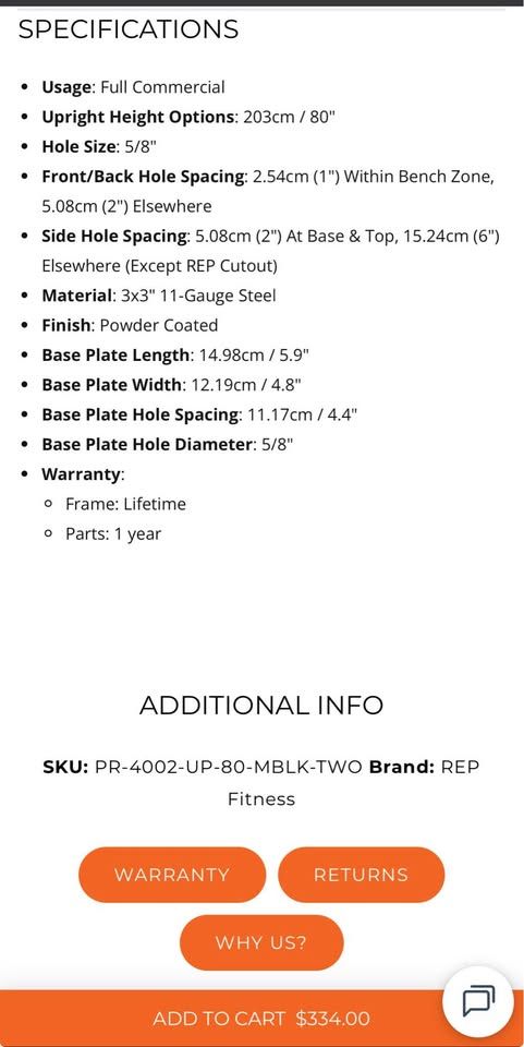 VenmoBuild your PR-4000 with two 80" (203cm) Black Uprights. These are sturdy and heavy-duty, made from 3x3" 11-gauge steel. Compatible with various attachments to add more training options, they feature laser-cut numbering every fifth hole making it easy to arrange attachments.