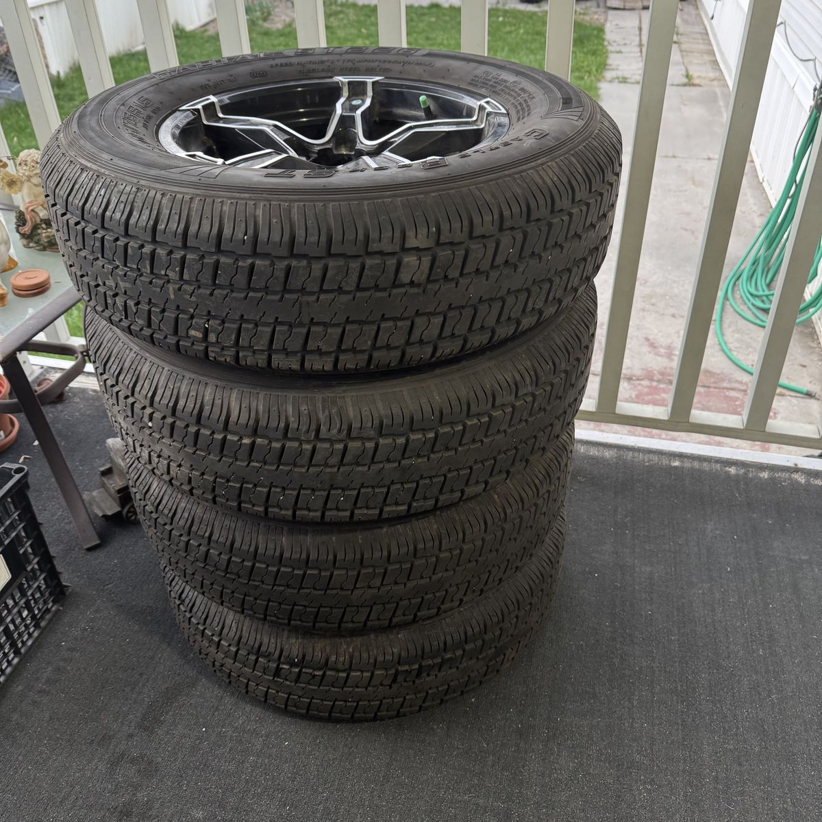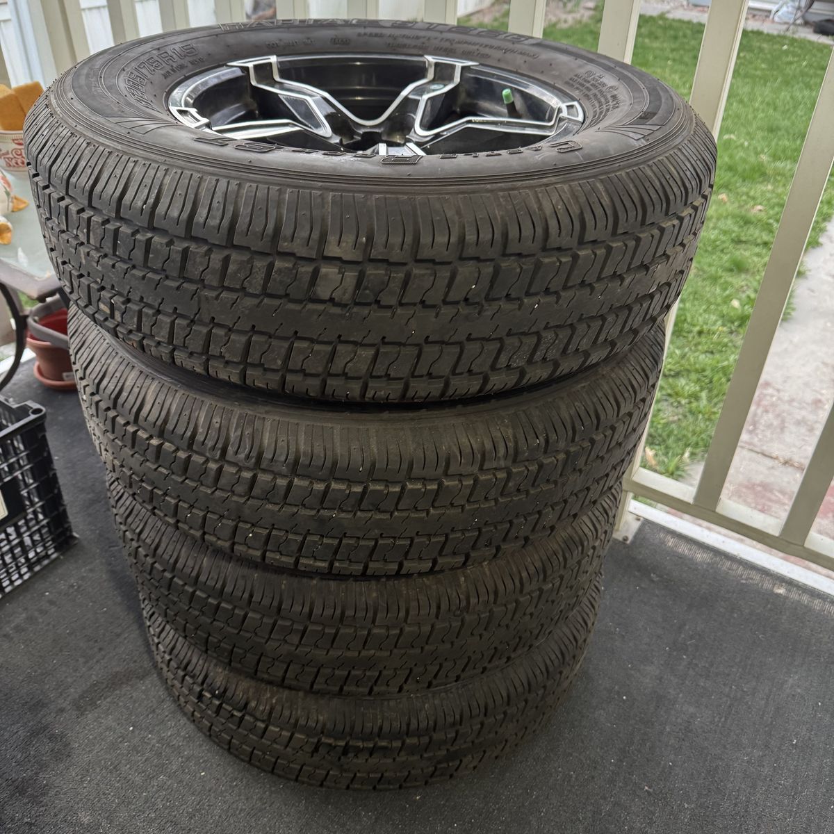 I am selling this set of trailer tires and rims. They are in perfect condition and ready to be mounted. All details can be seen in the photos. $400.00.