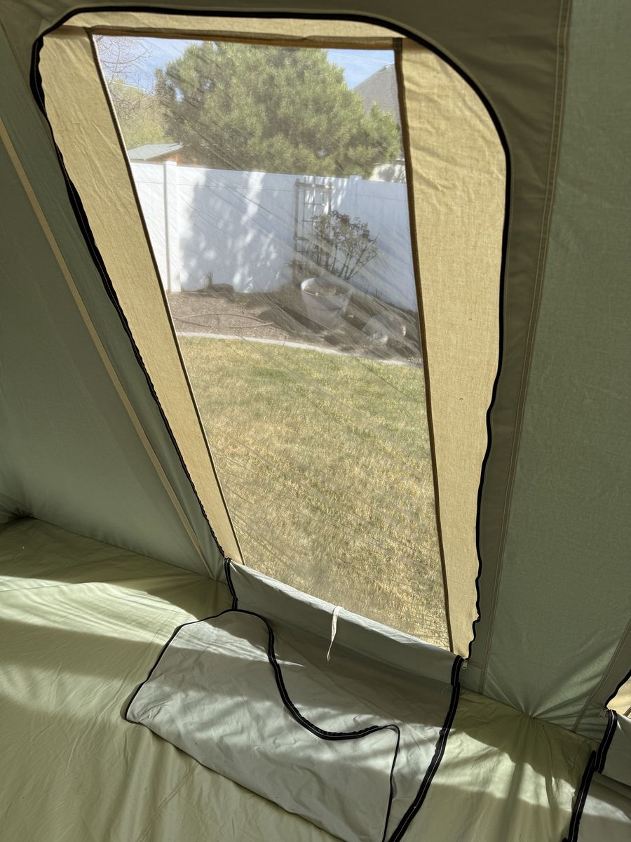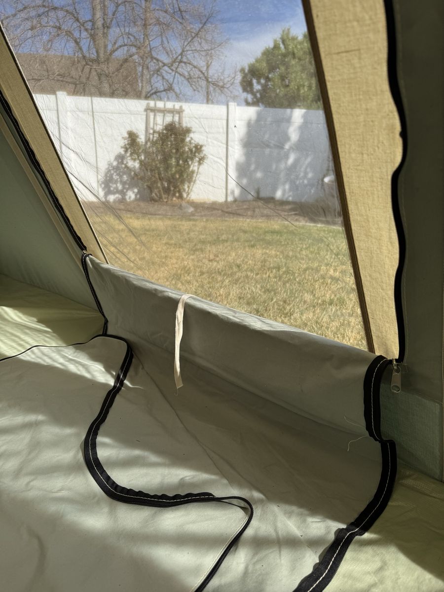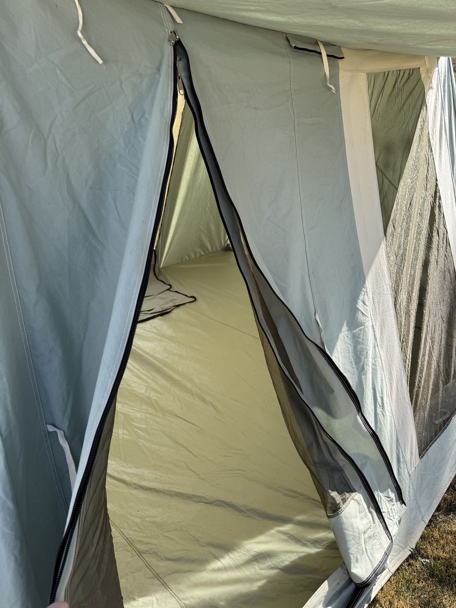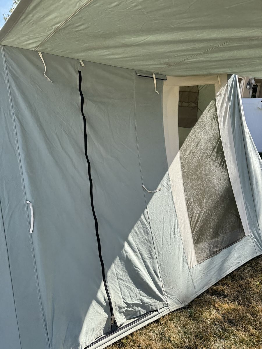 Venmo10’x14’ Kirkham’s Spring Bar tent. Gently used and well taken care of. Hate to see it go. No rips, tears, or holes. All zippers work like new. This tent has never seen rain. Heavy duty ground tarp, extra tent stakes, all poles, canopy ropes, and all original carry bags included. $975.00.