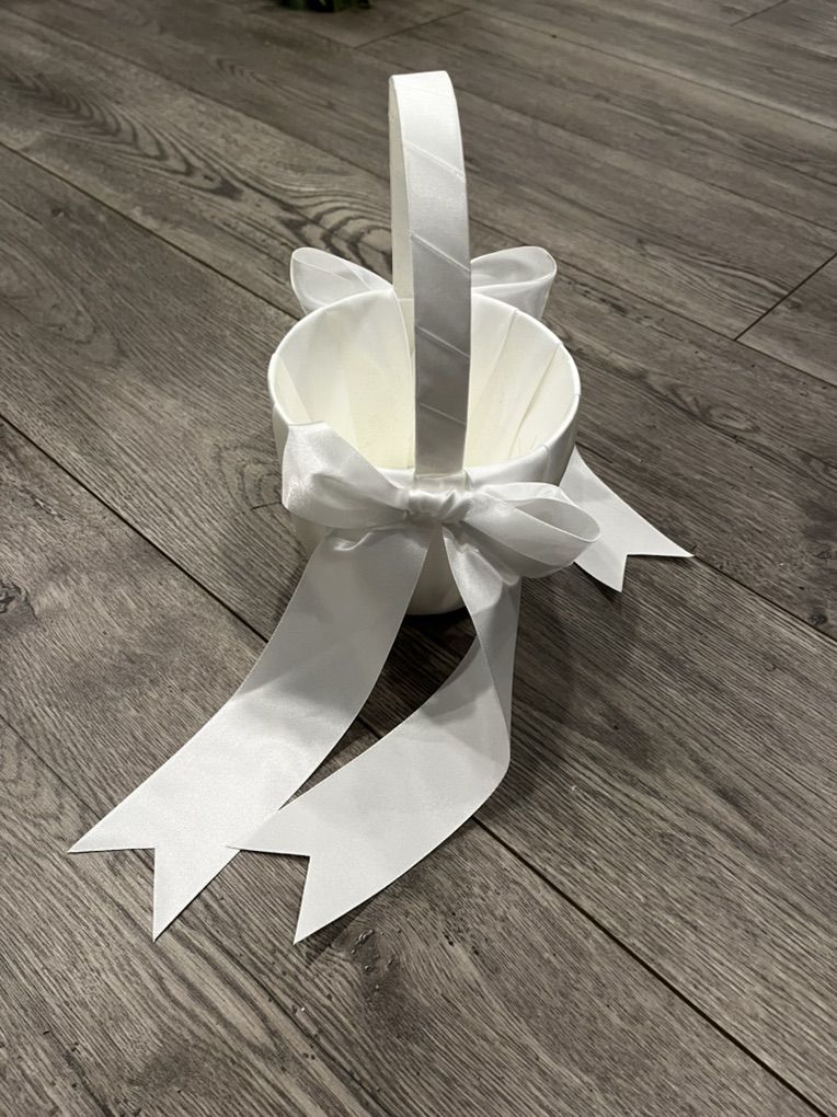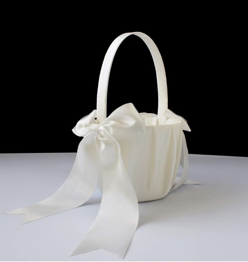 Sweet ivory flower girl baskets, perfect for your big day!\