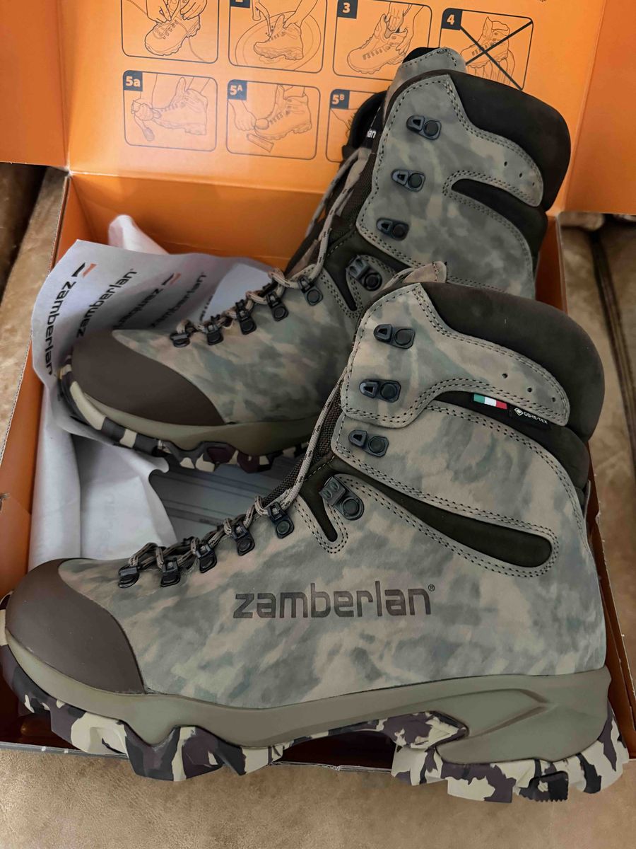 Features include: Camouflaged Zamberlan Vibram® 3D outsoles are extremely rugged, provide excellent grip on a variety of terrain, feature an uplifting forward rocker and solid downhill braking Rubber toe rand for increased protection and durability Dual-density midsoles are made of PU with TPU stabilizers and Vibram's premiere backcountry rubber compound Uppers feature Zamberlan’s latest leather creation with a unique camouflage blend to enhance your entire hunting kit, from head to boot Gore-Tex® Performance Comfort membranes provide waterproof protection and breathability and are guaranteed by Gore-Tex® for the life of the boot Microtex® collars wick moisture from around the collar and reduce leg abrasion for greater comfort The ZFS (Zamberlan Flex System) allows the upper to break forward comfortably without compromising lateral support and protection Made in Italy