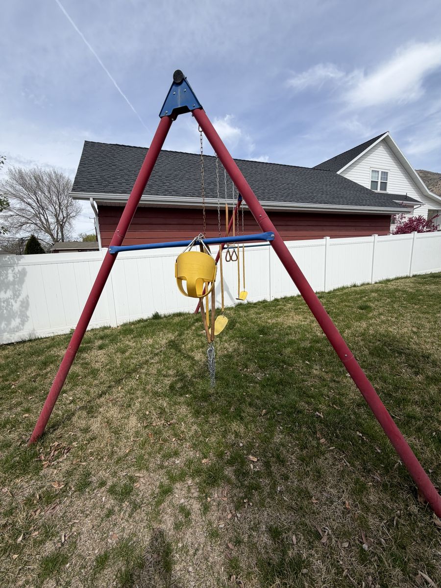 ApplePayUsed 10 ft Lifetime Swing set, everything works. We are moving and can’t take it. Comes with additional baby/toddler swing. Adults can swing on this too.