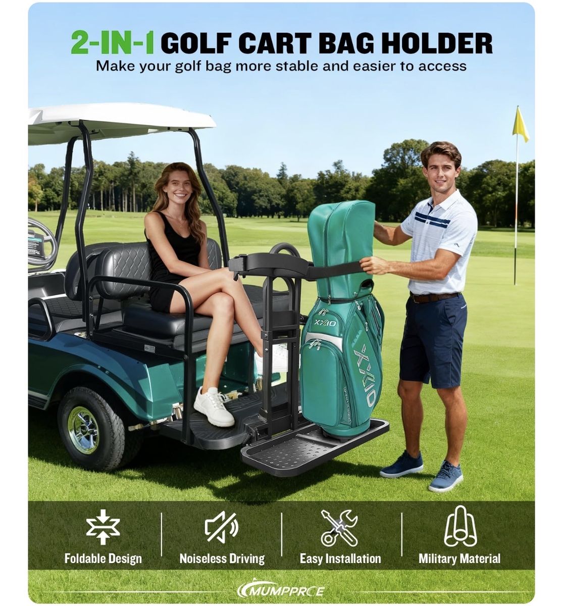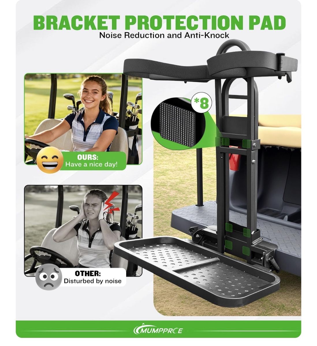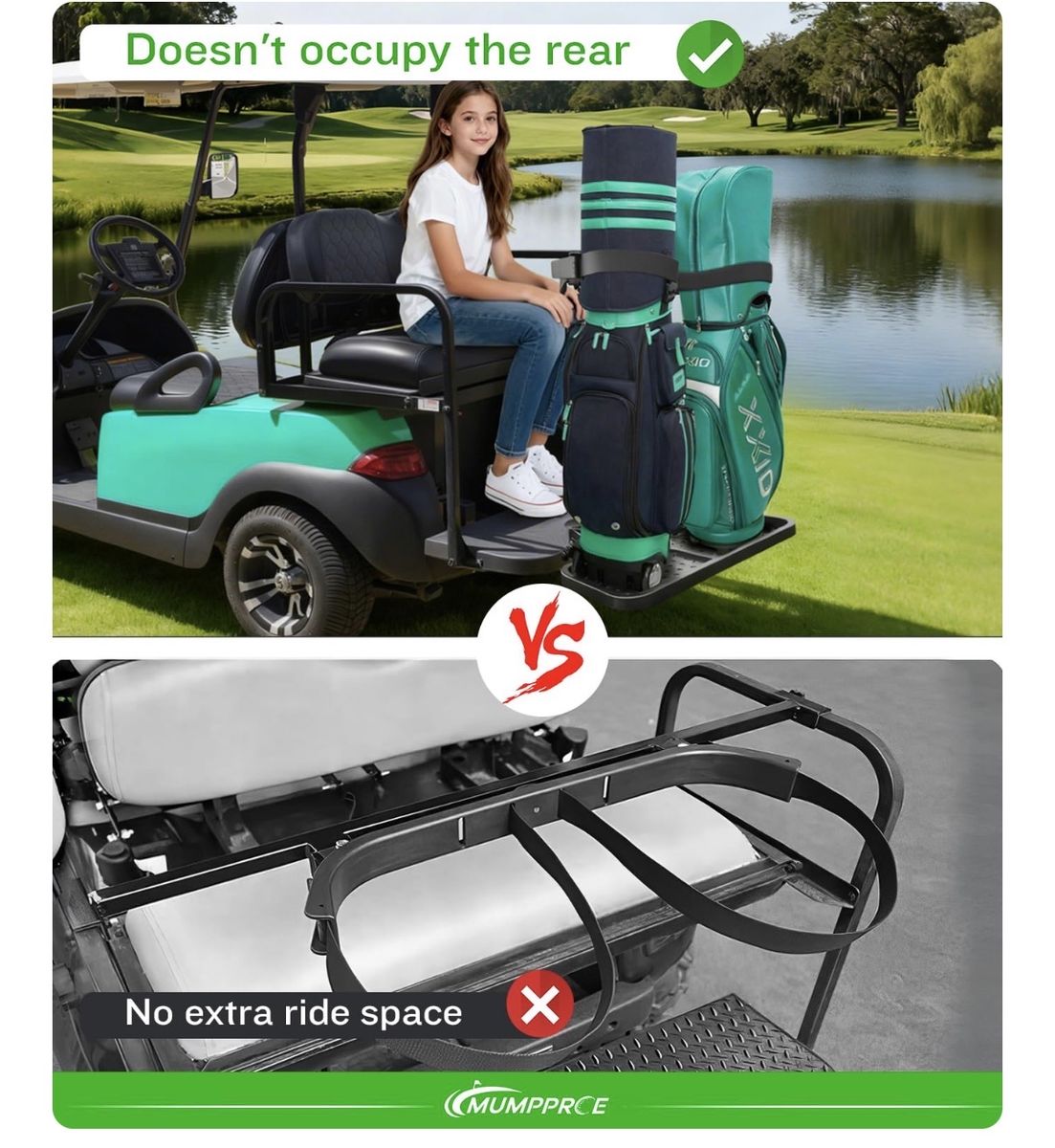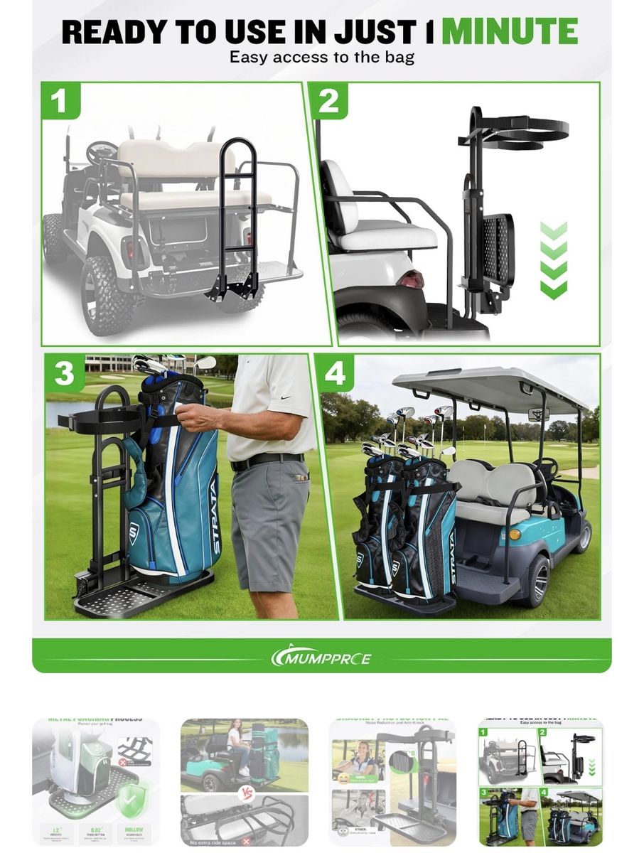 Pre-installed Universal Foldable Golf Cart Rear Seat Bag Holder, Upgraded Golf Cart Rear Seat Bag Rack for EZGO Club Car Yamaha, Fits Safety Grip Bar Maximum 8'' Wide, Solid, Space-Saving, No-Drill