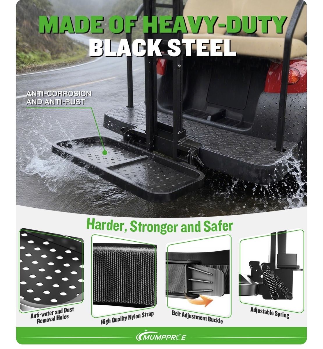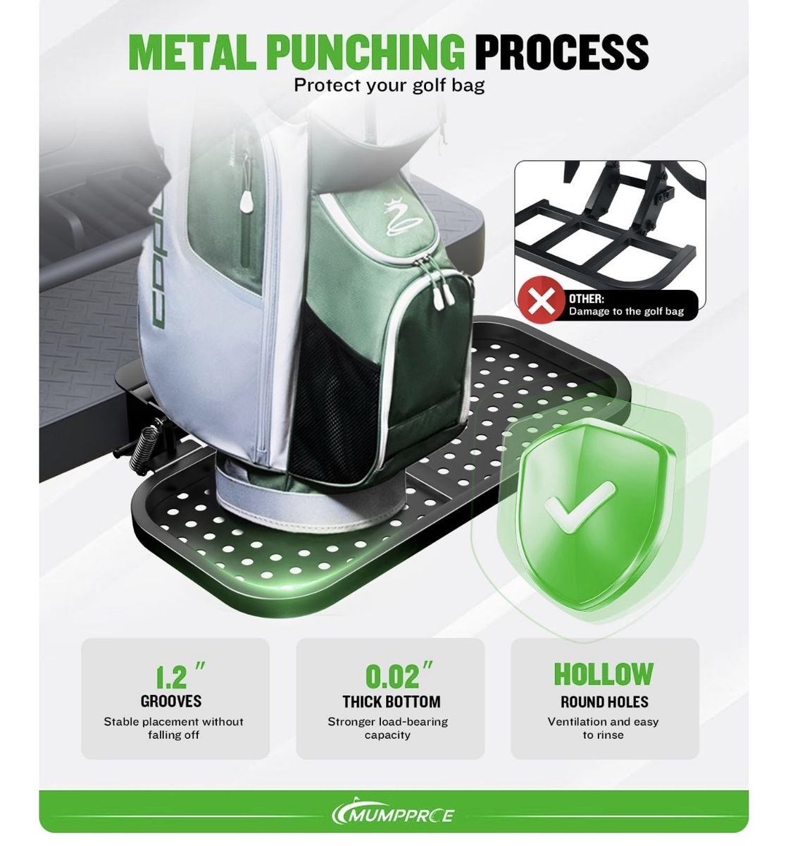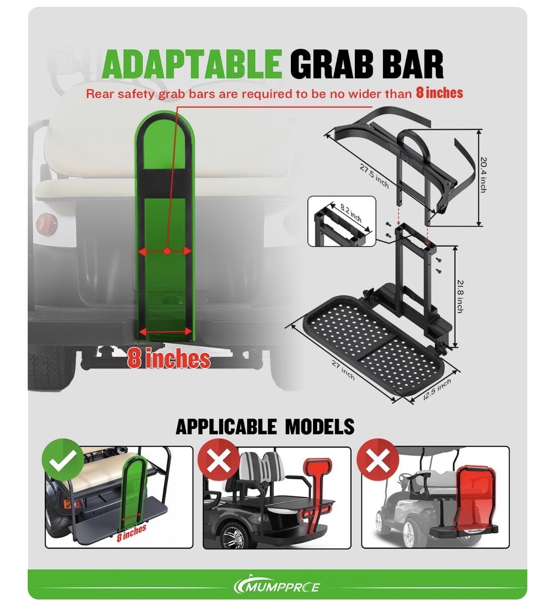Pre-installed Universal Foldable Golf Cart Rear Seat Bag Holder, Upgraded Golf Cart Rear Seat Bag Rack for EZGO Club Car Yamaha, Fits Safety Grip Bar Maximum 8'' Wide, Solid, Space-Saving, No-Drill