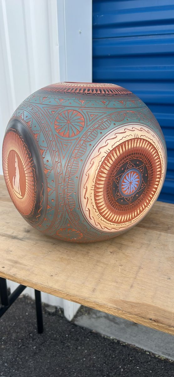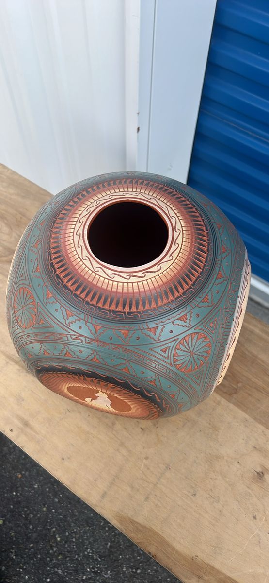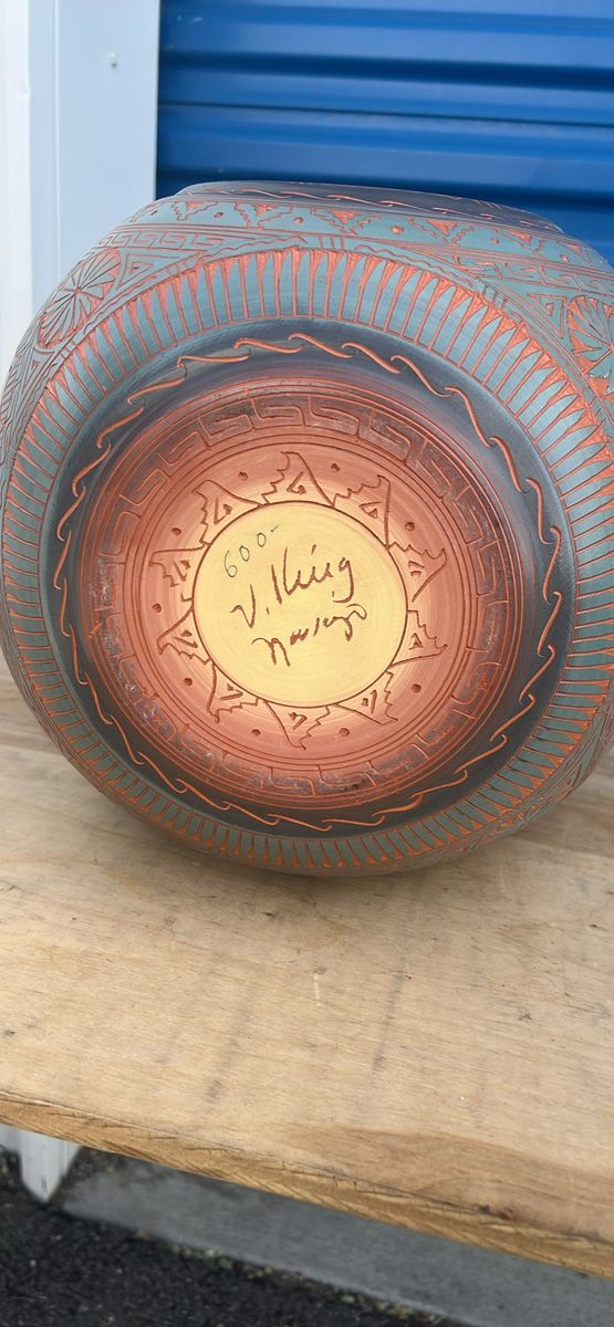GooglePayNative American Navajo Etched Pottery Rounded Square 10" Vase Signed V. King