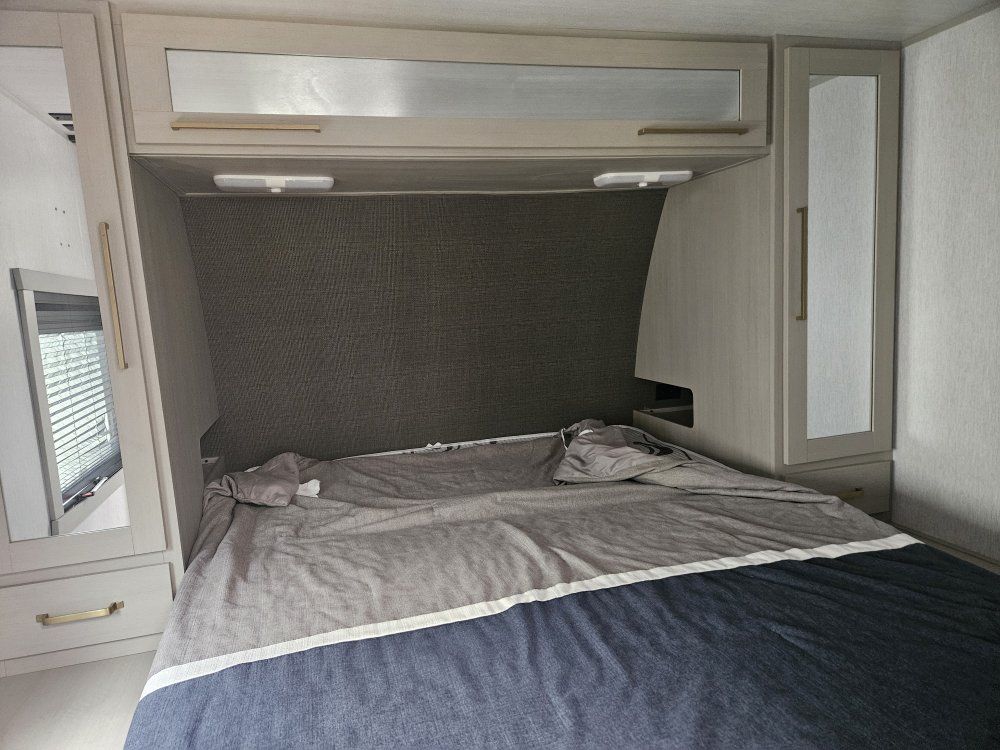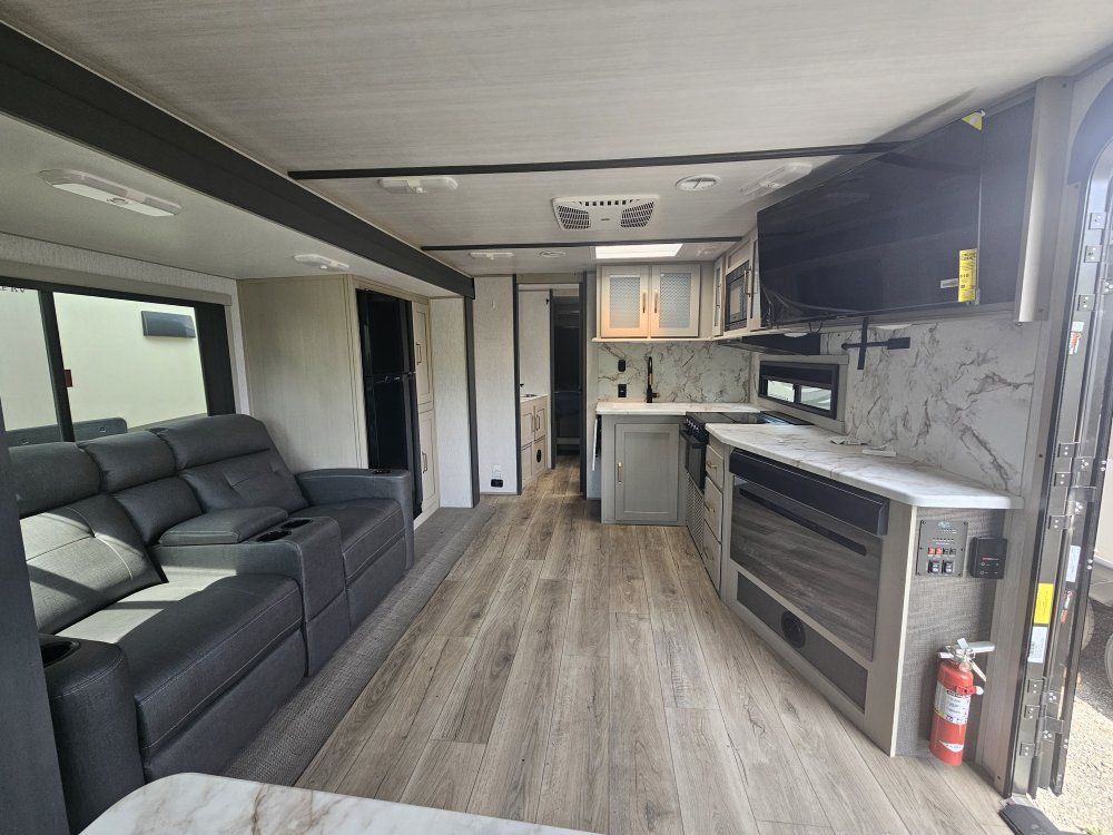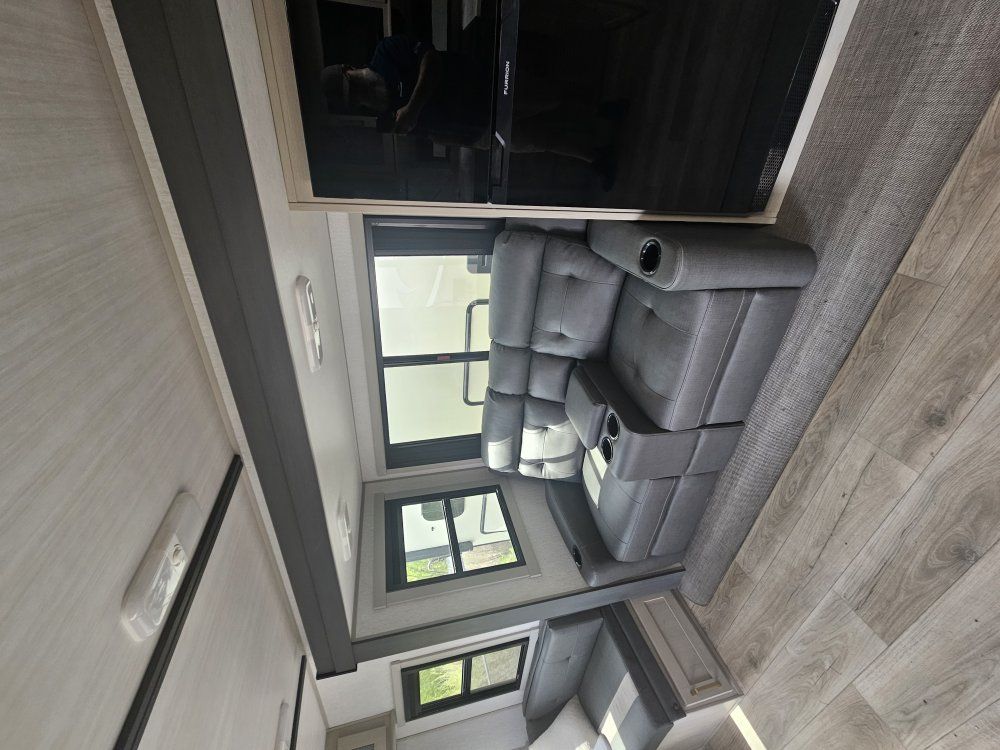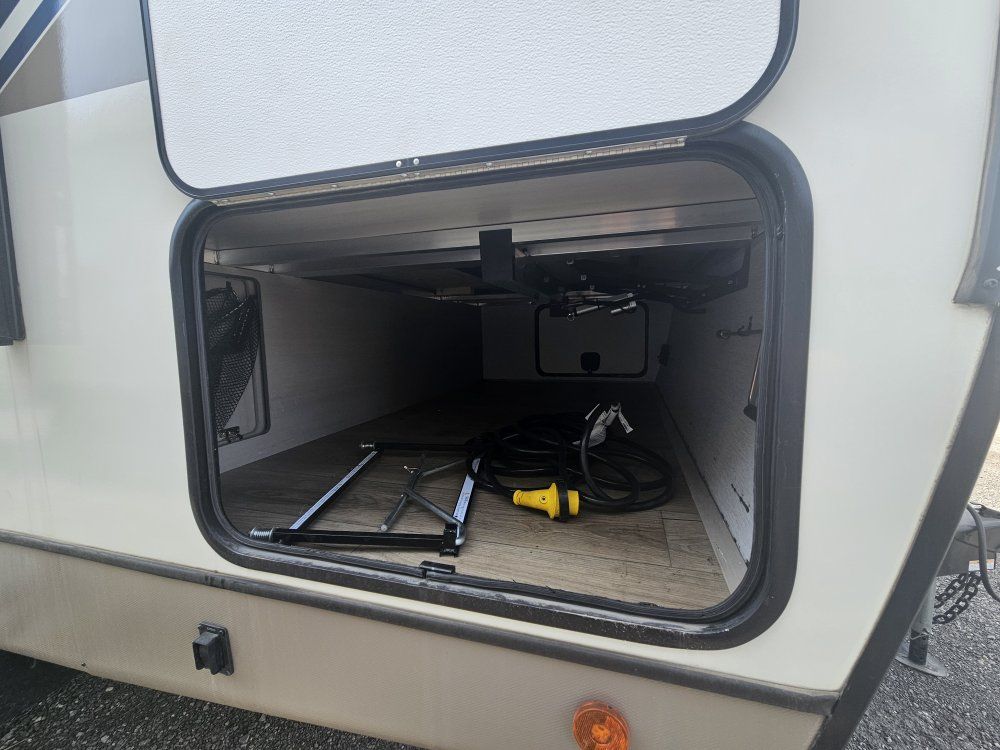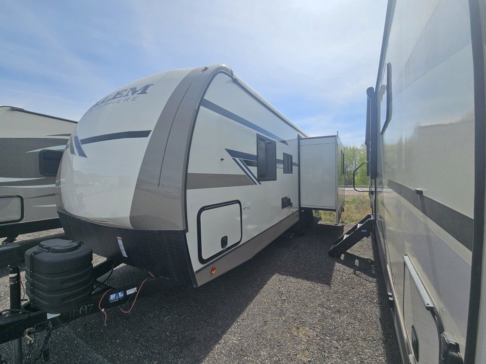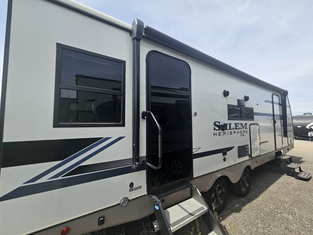 Come on in and take a look at this beautiful, gently used travel trailer. The 2024 Forest River Salem Hemisphere Hyper-Lyte 24RDHL (often referred to as the 24RDH) is a dual-entry travel trailer designed as a "couple's coach" that can accommodate up to four people. Below are the primary specifications and features for this model: Dimensions & Weights • Exterior Length:29' 11" to 30' 0" • Exterior Height:10' 10" to 11' 3" (depending on A/C options) • Exterior Width:8' 0" (96") • Unloaded Vehicle Weight (UVW/Dry Weight):Approx.6,208 – 6,228 lbs • Hitch Weight:Approx. 820 – 925 lbs • Cargo Carrying Capacity (CCC):Approx.1,612 – 1,697 lbs Capacities • Fresh Water:45 – 49 gal • Grey Water:62 gal • Black Water:32 gal • Propane:2 x 20 lb tanks (40 lbs total) • Water Heater:60K BTU On-Demand Tankless Interior & Comfort • Sleeping Capacity:Up to 4 • Main Bedroom:Features a 60" x 80" Queen bed with "Versa-Tilt" power mechanism for extra walk-around space. • Rear Living/Dining:Large U-shaped dinette in the rear slide-out that converts into additional sleeping space. • Kitchen:Includes a 10 cu. ft. 12V refrigerator, 3-burner cooktop, pantry with glass inserts, and a kitchen skylight. • Bathroom:Walk-through bath design with a 30" x 36" walk-in shower and porcelain toilet. • Climate Control:15,000 BTU "Quiet Cool" A/C (standard in Expedition Package) and 30,000 BTU heater. Construction & Exterior • Frame/Walls:Vacuum-bonded "Aluma Frame" sidewalls and floor with block foam insulation. • Roof:WeatherShield one-piece fiberglass roof. • Slide-out:Flush-floor slide mechanism. • Axles:Wide-stance axle system (approx.42" hub-to-hub) for improved towing stability. • Special Features:Dual entry doors (one to the main living area, one directly into the bedroom), 16' to 19' electric awning with LED lights, and an outside shower with hot and cold water. • Winter Readiness:Enclosed underbelly with 12V tank heaters on all holding tanks. Power & Tech • Solar:Prepped for roof-mounted solar panels and charge controller. • Entertainment:40" LED TV and soundbar with Bluetooth/HDMI/USB. • Backup Camera:Prepped for rear observation/backup camera.
