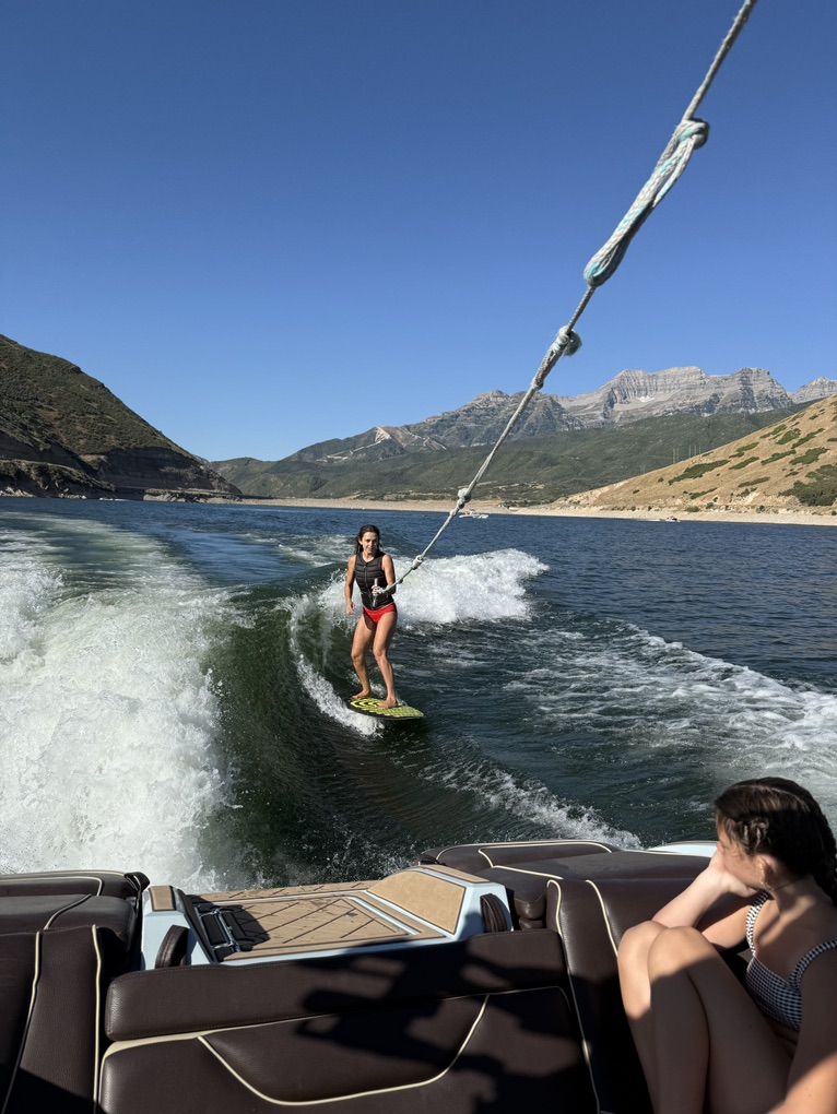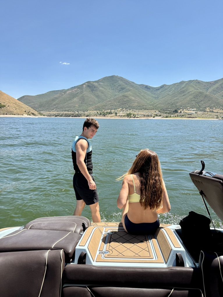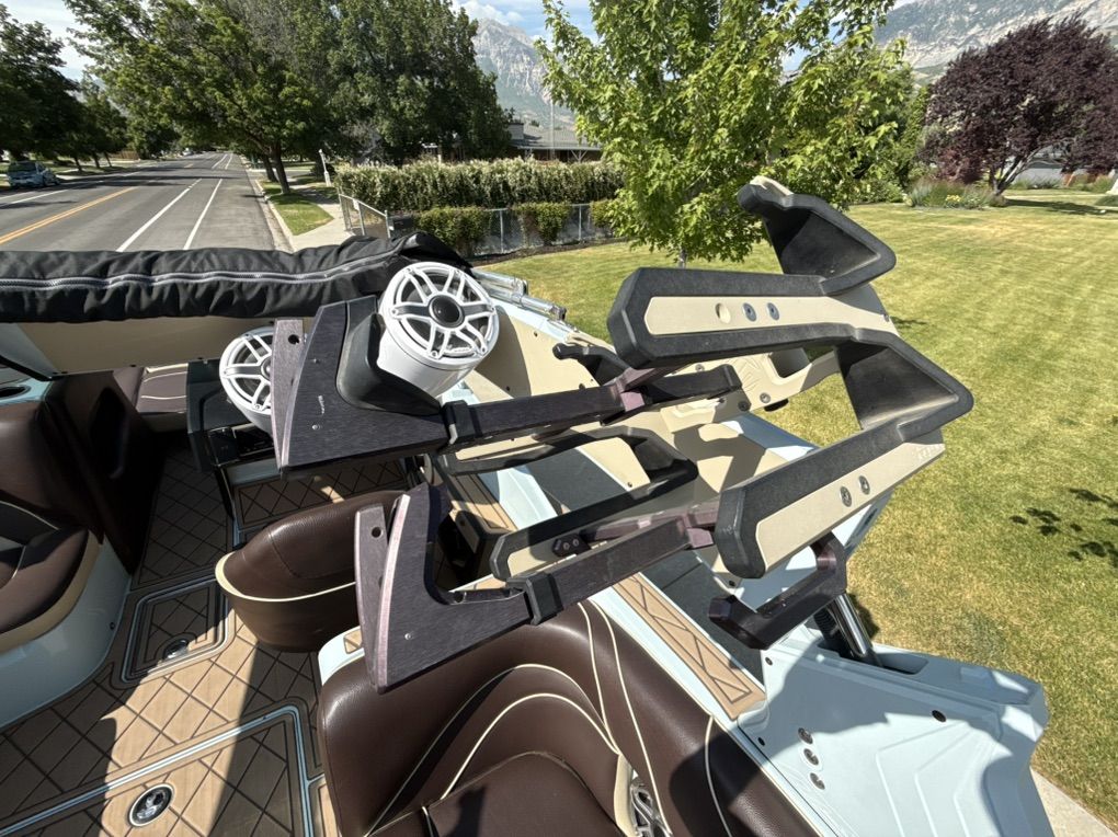 Best looking boat on the water! Light sea foam green exterior, tan/chocolate brown interior. Killer surf wave, all the bells and whistles. In great shape. Text or call with questions about the share. Thanks!