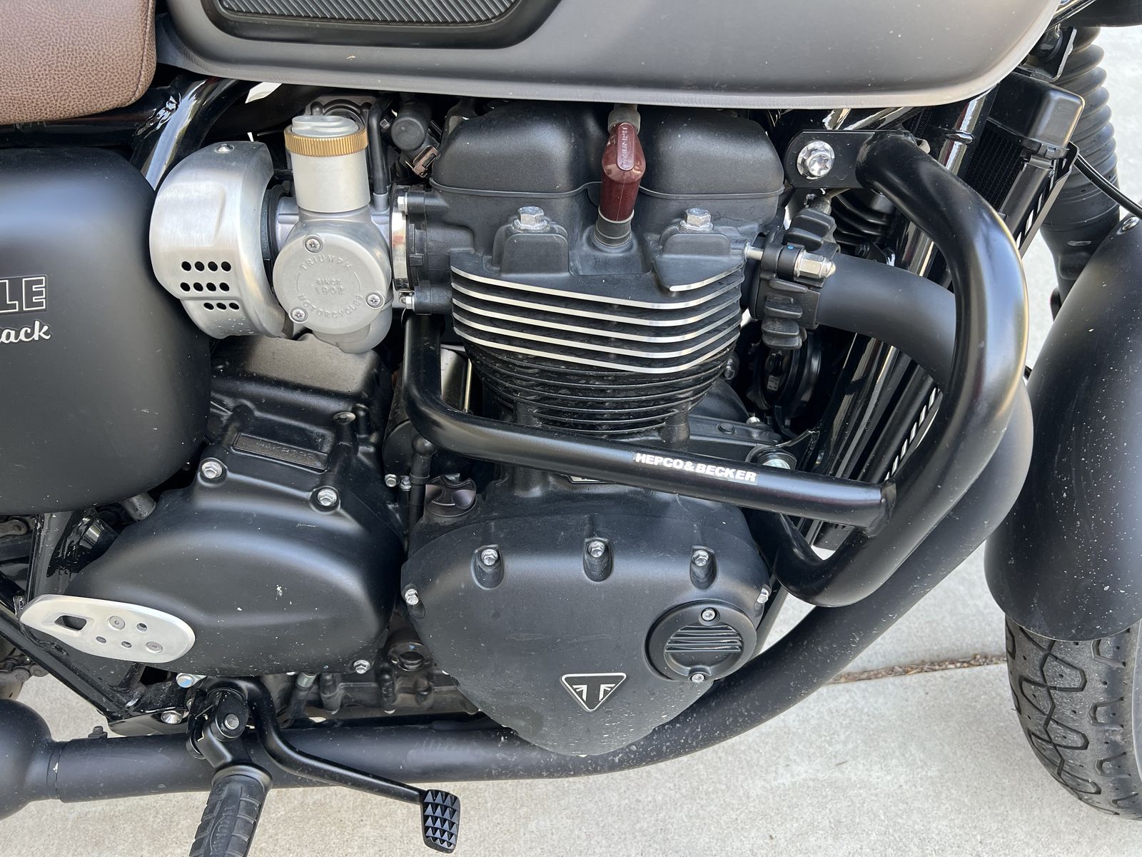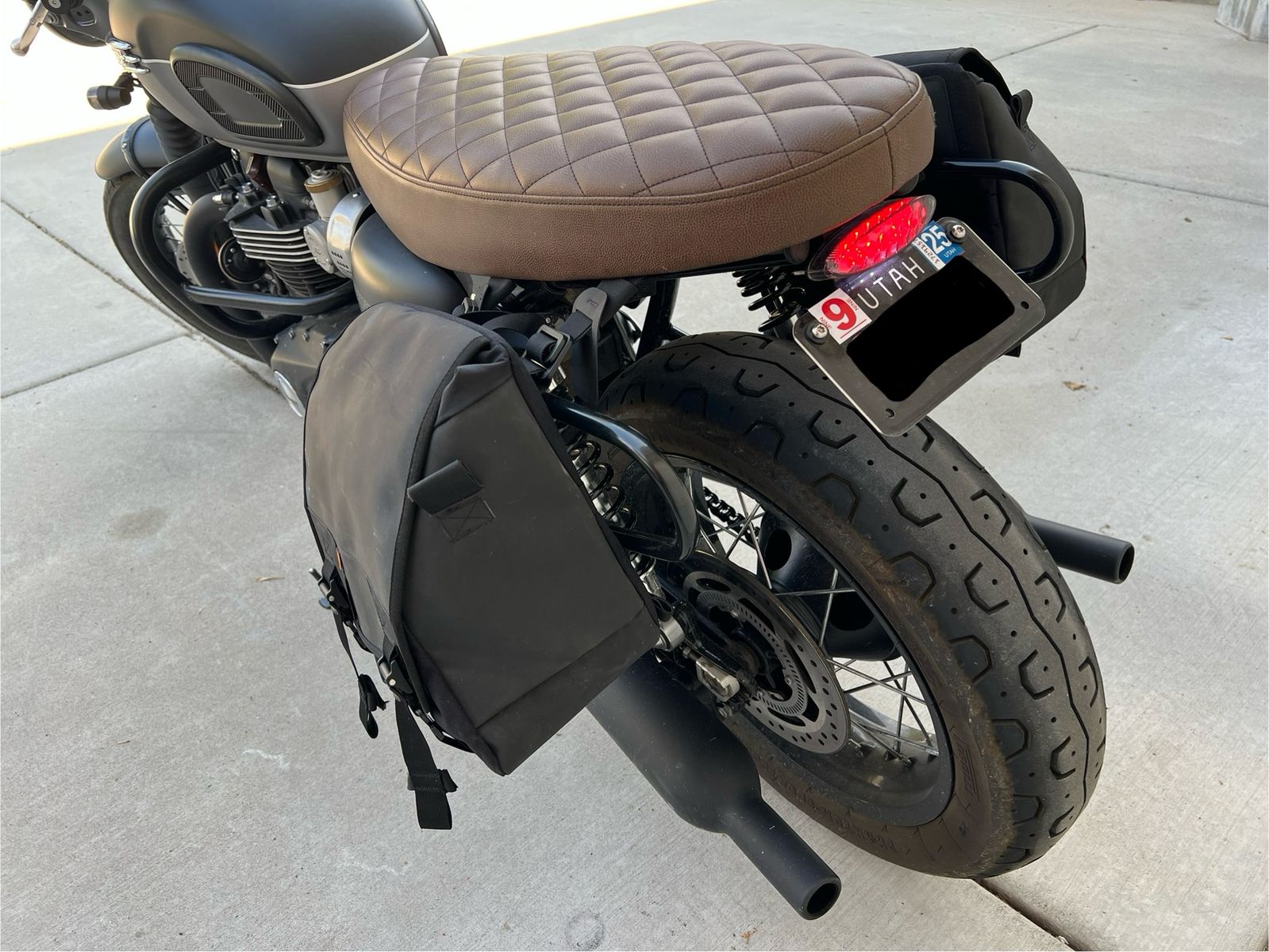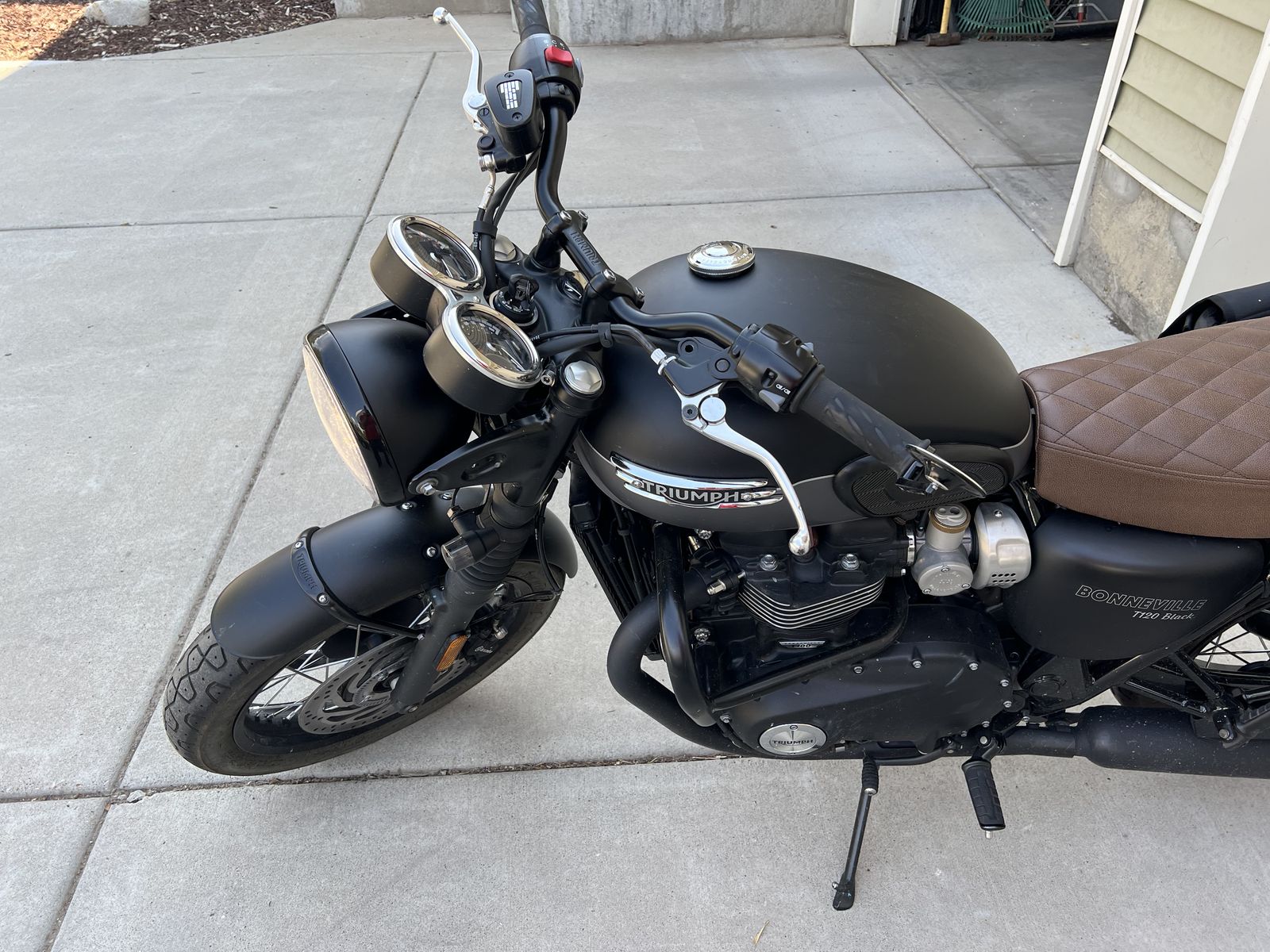 2022 Triumph Bonneville T120 Beautiful, excellent condition bike. Second owner, bought at around 1400 miles, now has 2800 miles. “Blacked-out” feature looks absolutely amazing with the custom leather seat. Minimalist LED turn signals and handlebar mirrors complete the look. Comes with pannier support bars and Kriega “messenger bag” style panniers, engine guards and radiator guards. Selling because of move and can’t bring it along. Key Features: - 1200cc parallel-twin with a 270° firing interval, known for high torque and smooth delivery. - A "blacked-out" aesthetic from the engine to the exhaust and classic wire wheels, giving it a sophisticated and moody appearance. - High-specification technology includes enhanced riding modes, standard cruise control, and advanced switchable traction control and ABS. - Improved handling with lighter wheels, refined suspension, and powerful Brembo front brakes, contributing to a spirited and agile ride. - Twin analogue clocks with a multi-function LCD display and integrated technology. The T120 Black combines the timeless design of the original Bonneville with modern performance and technology. It's designed for riders who appreciate classic aesthetics but want a contemporary, reliable, and technologically advanced motorcycle. Its comfortable, upright riding position makes it suitable for both daily rides and longer journeys.