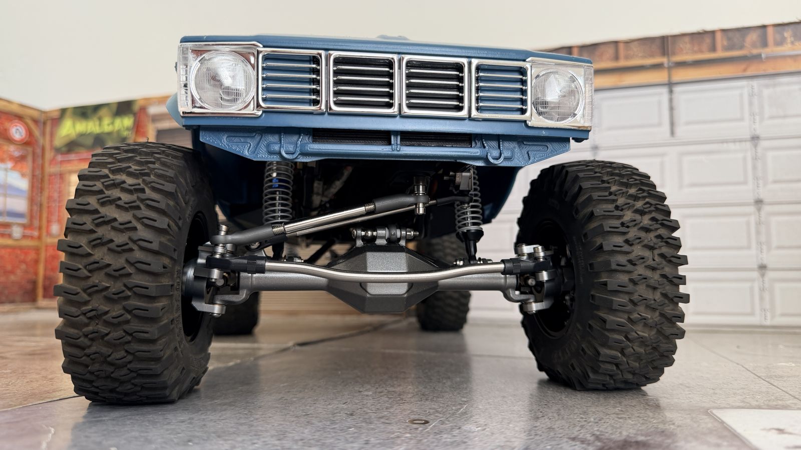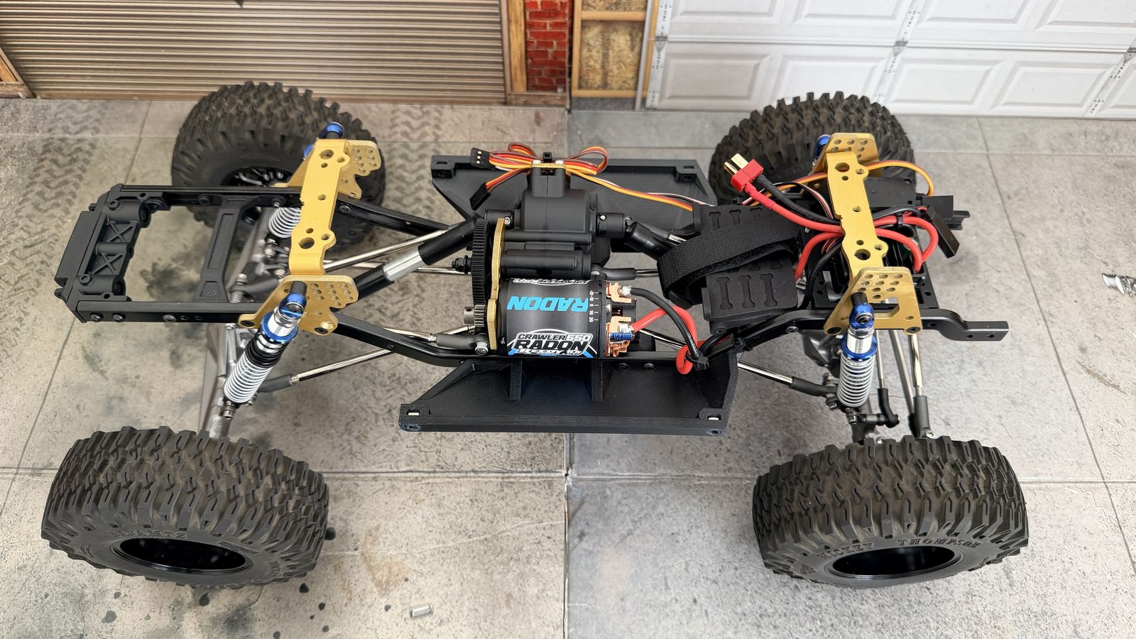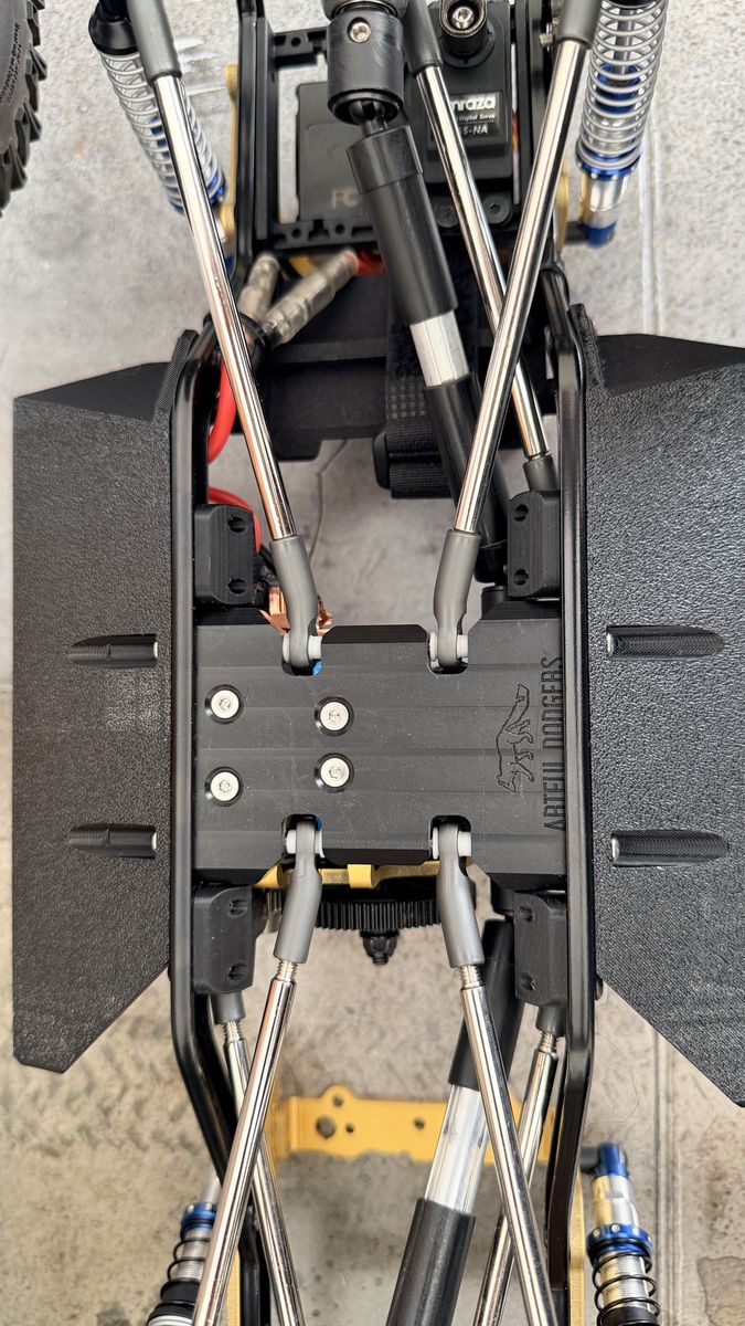 VenmoRC4WD 4door body Vanquish Phoenix rear cage Artful Dodgers Fox Belly transmission Artful Dodgers Shock Towers Metal axles Bowhouse battery tray Proline Pro-spec shocks (90mm & 100mm) Interior with 3d printed detail parts RC4WD 2.2 Mickey Thompson tires (4.75” tall) 2.2 metal beadlock wheels