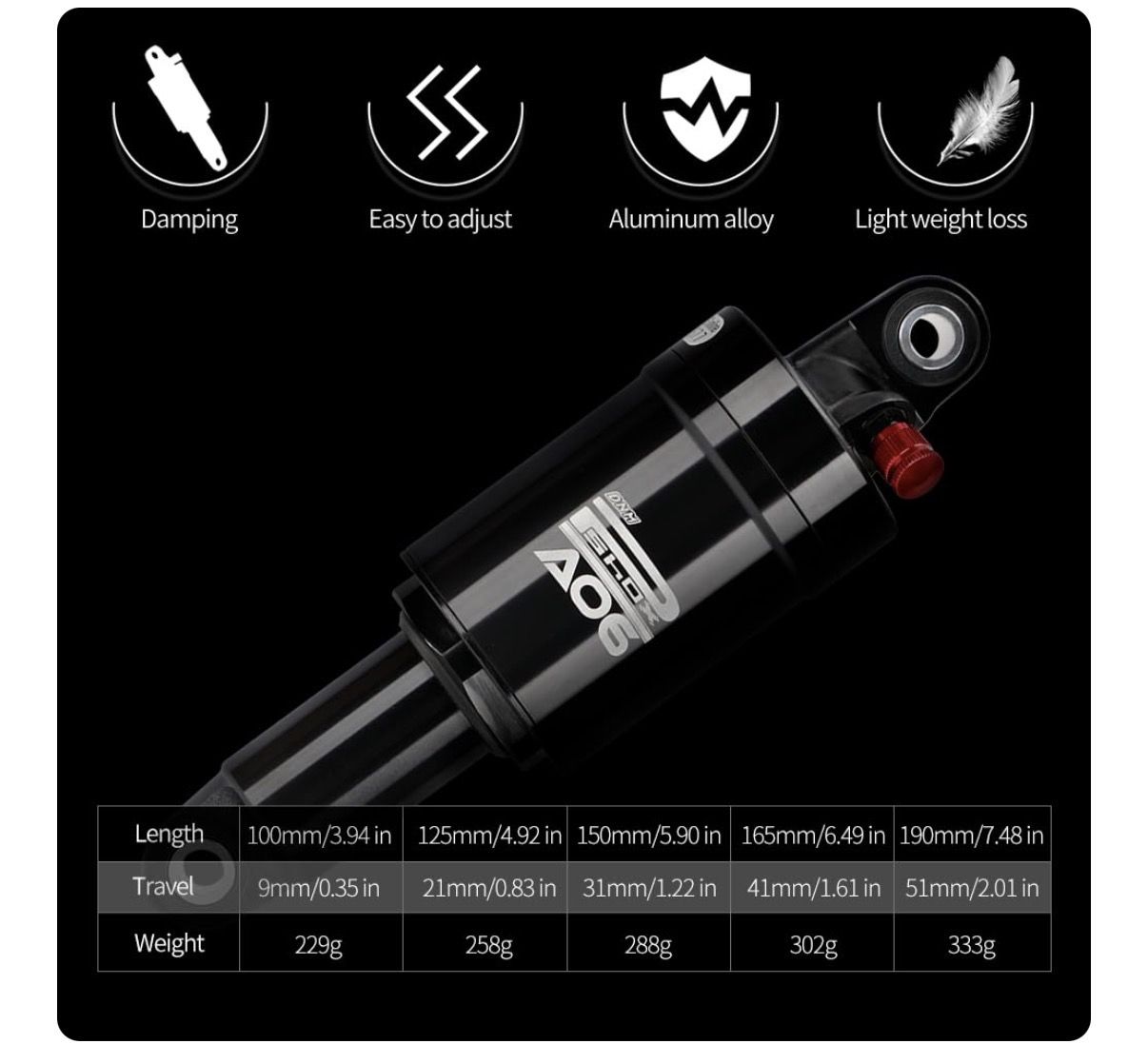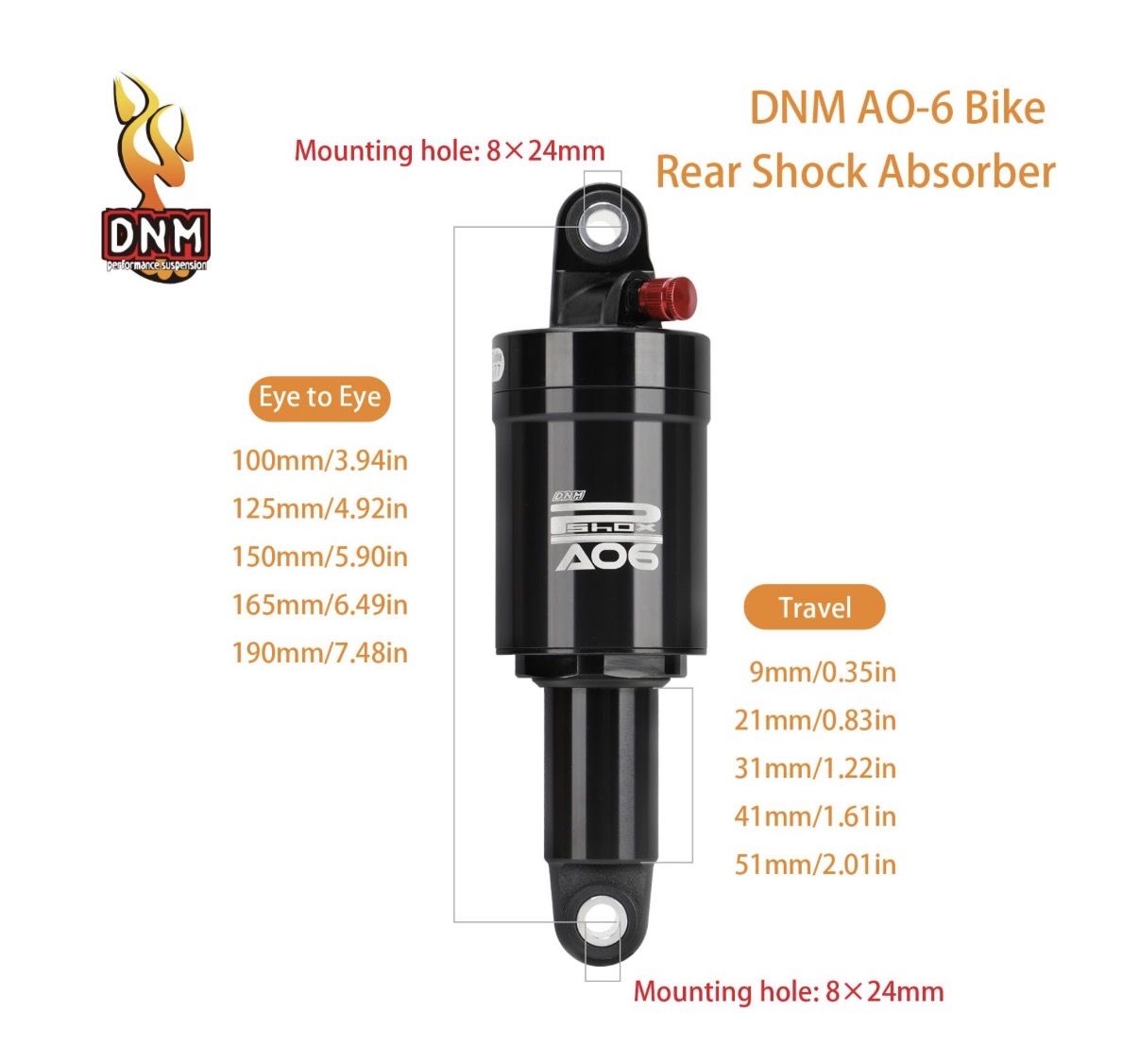 DNM AO-6 Mountain Bike Air Rear Shock AL 6061 Shock Body Adjustable Air Pressure 190mm Bike Shock Absorber (190mm x 51mm 7.48" x2.01"