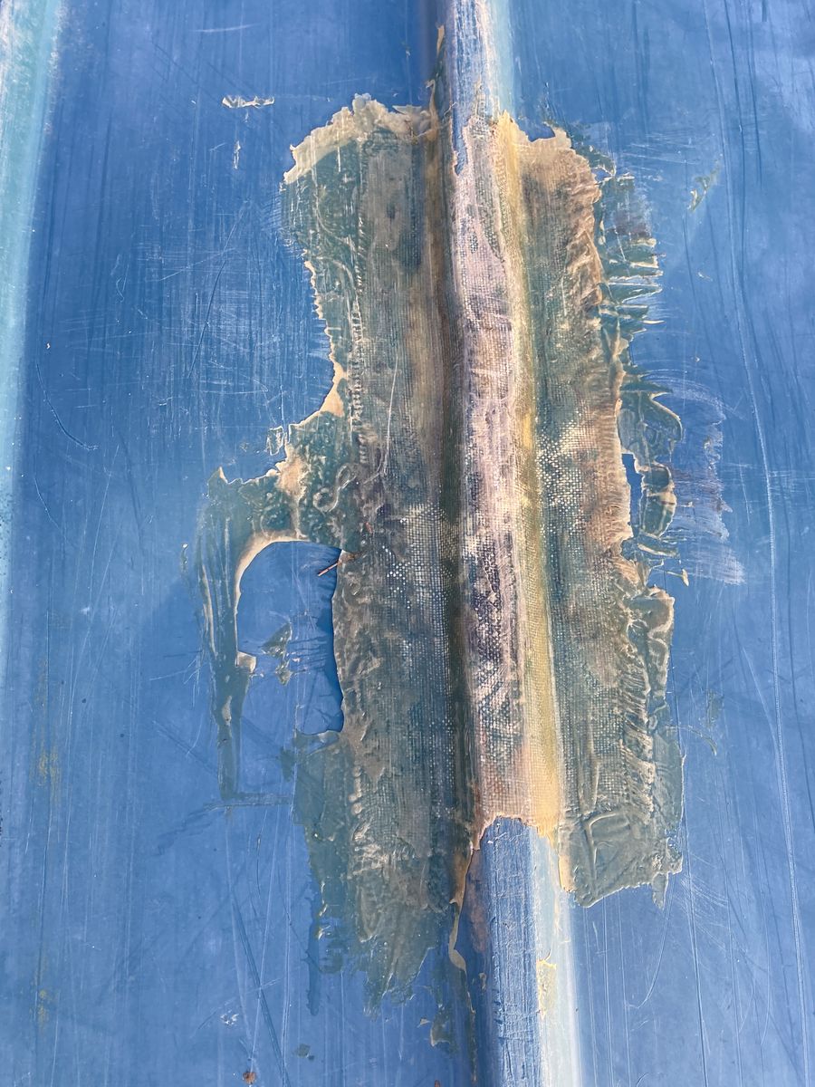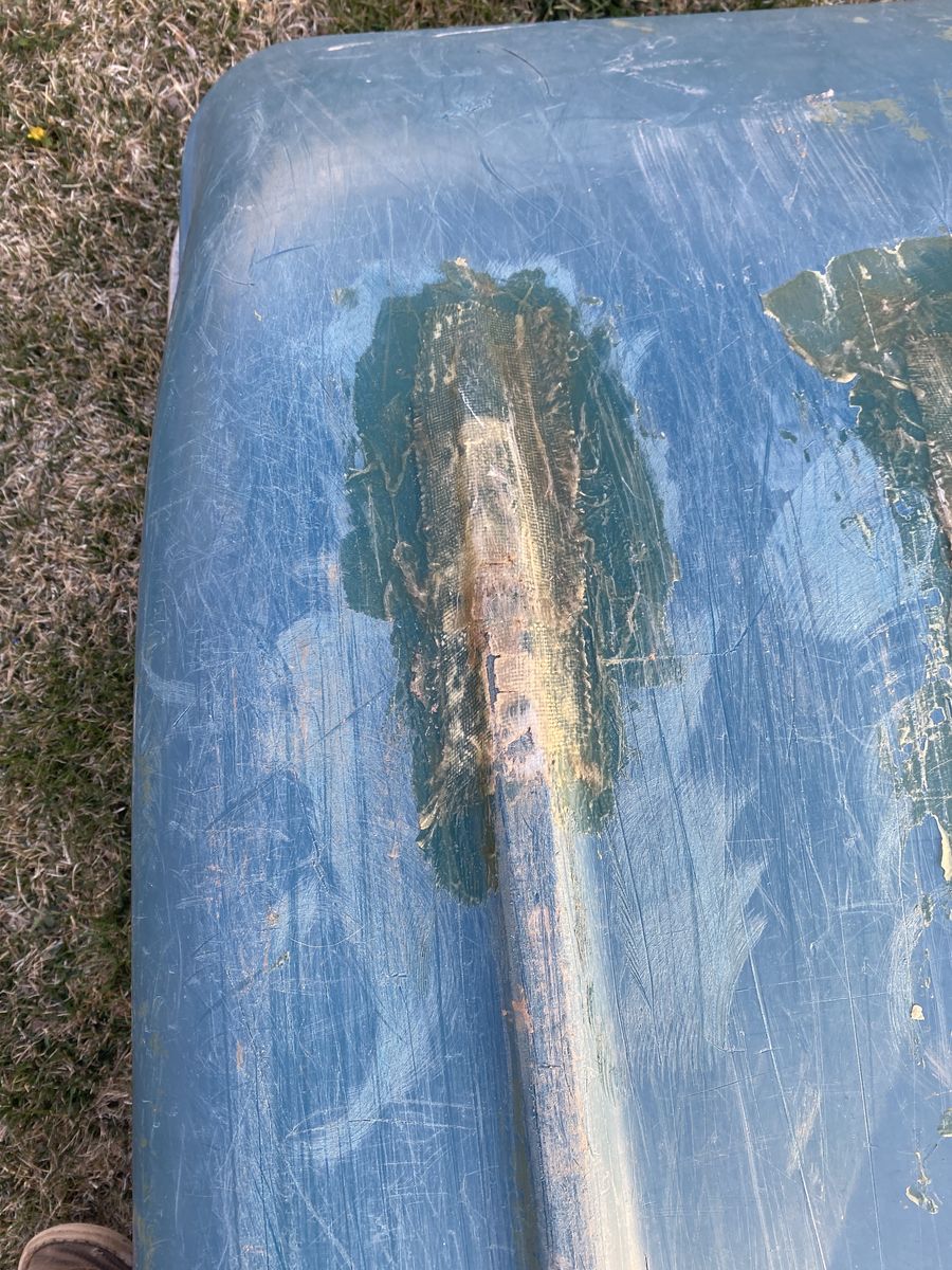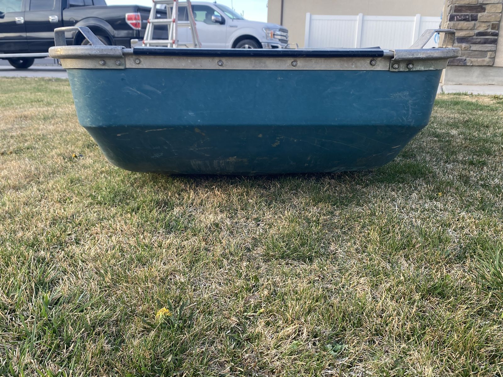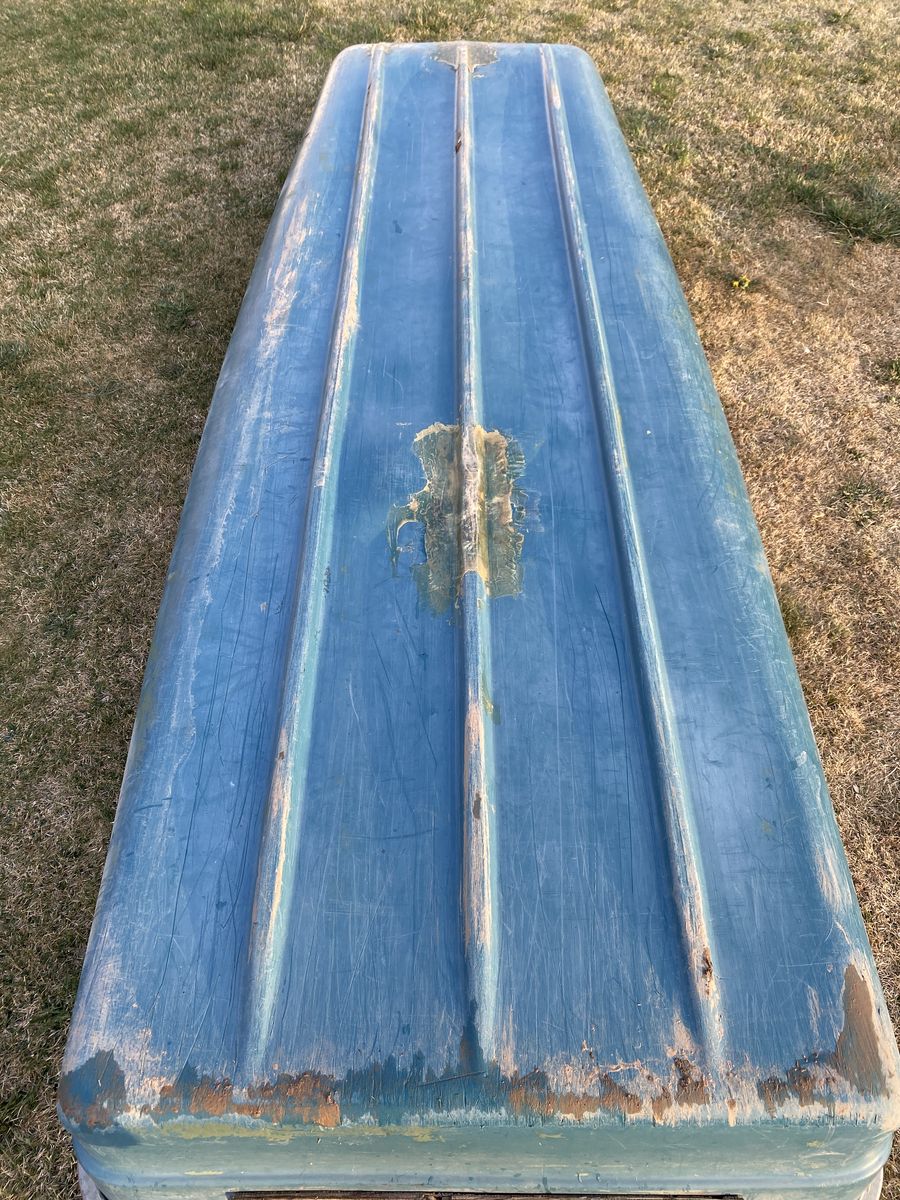 Venmo12 foot plastic Jon boat Beefed uo transom and three patched holes but no leaks it has been on the water 50 plus times since they have been patched