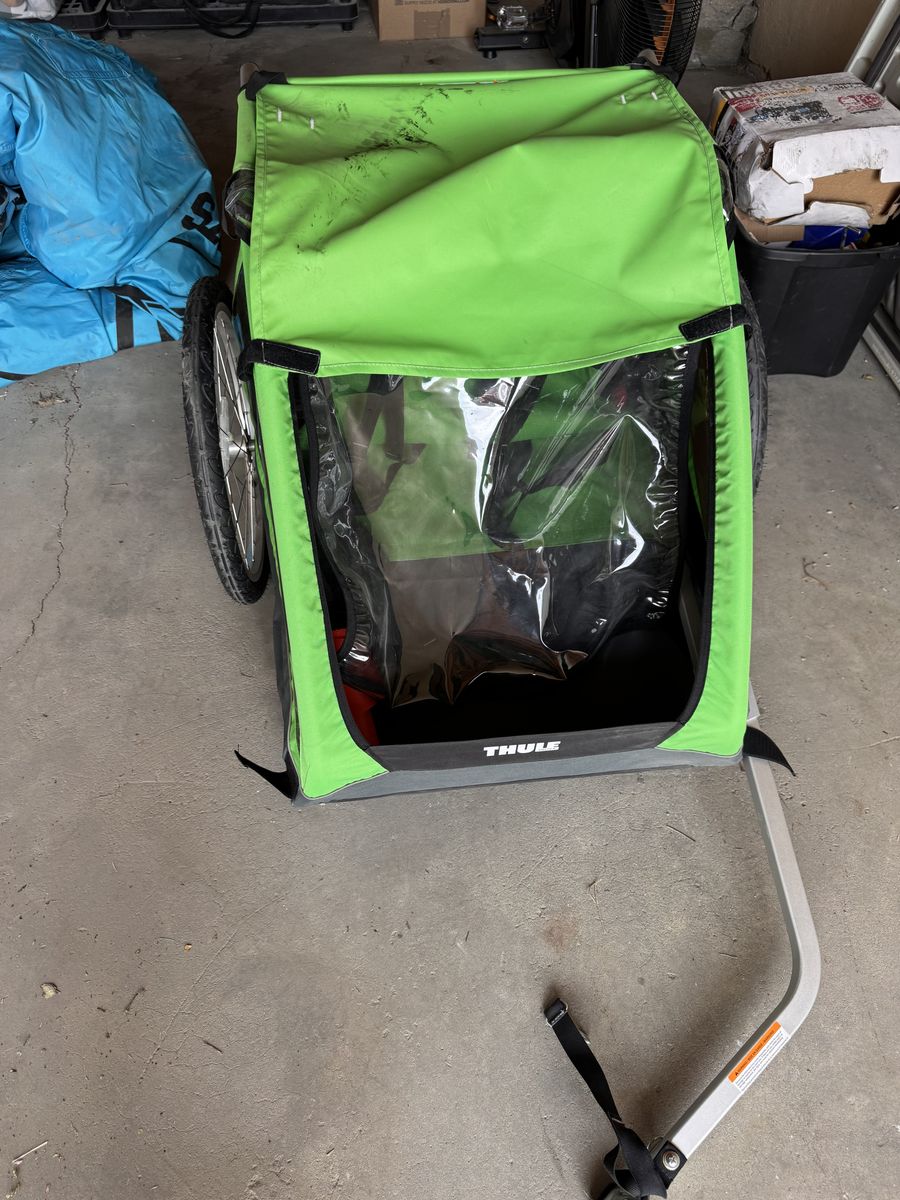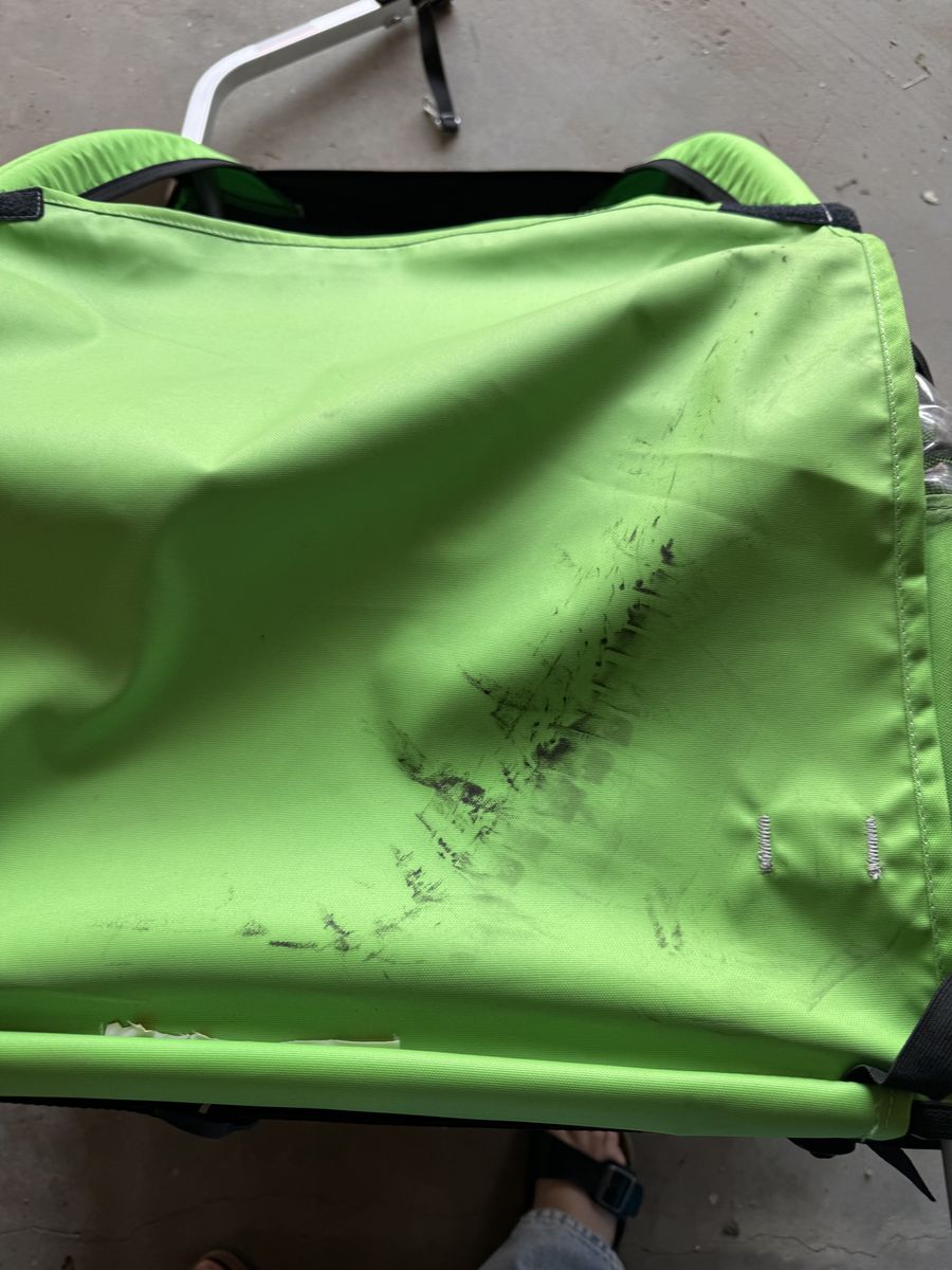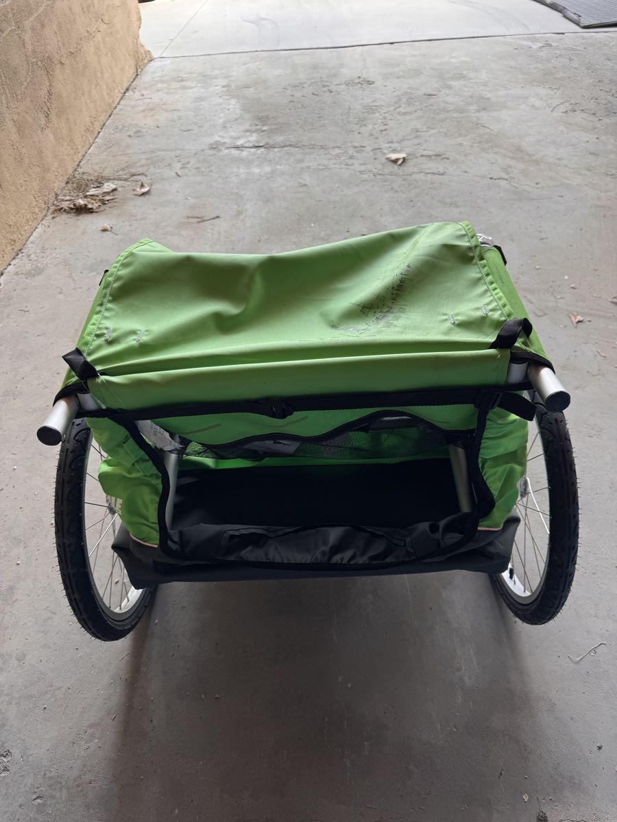 VenmoI bought this with good intentions and it has sat in storage for several years. A bike got put on top of it and it has a bike tire mark on the top and it's dusty otherwise it is brand new with the tag still. Space for two kids. I marked it used because of the mark but it has never been used.
