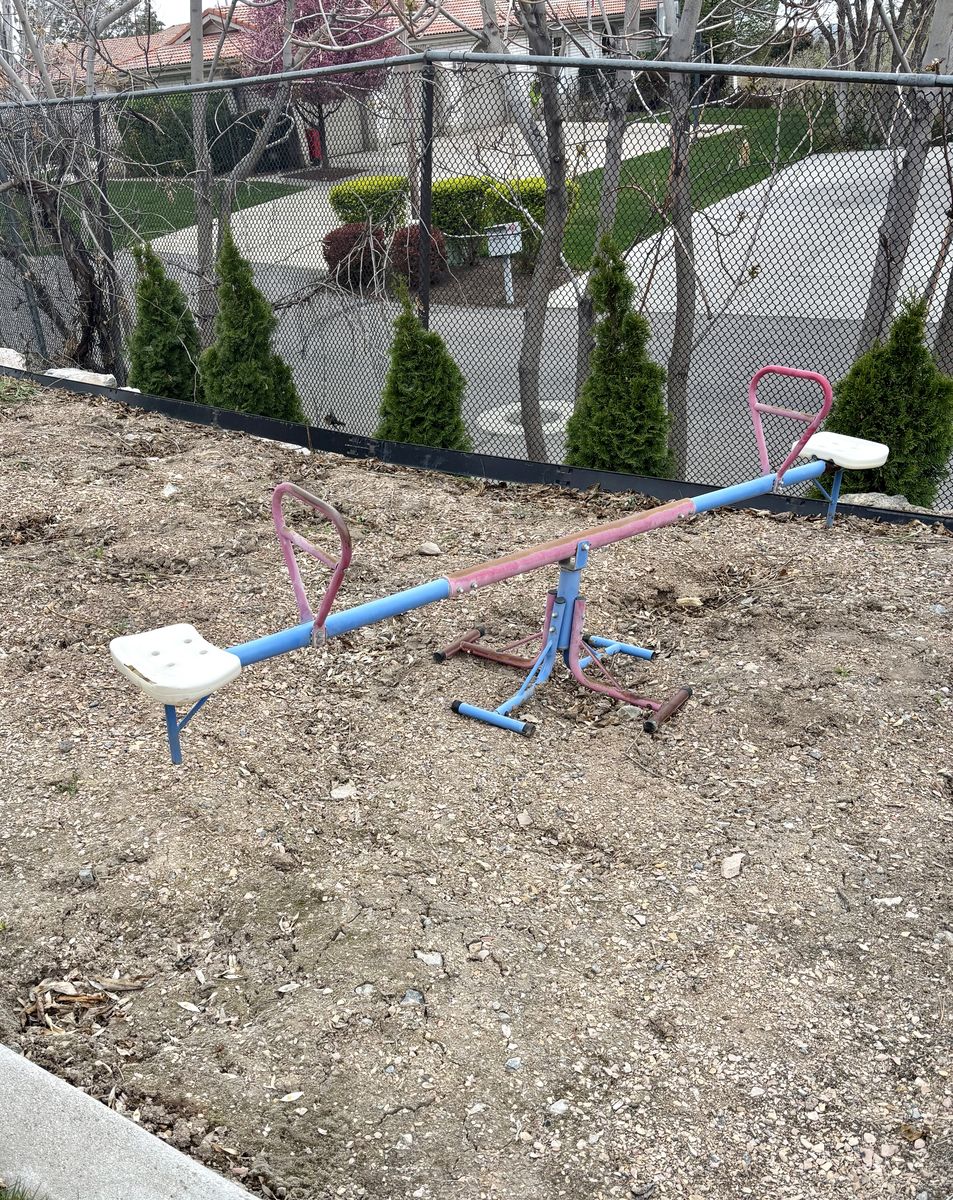 Toddler trike, teeter totter. The teeter totter needs attention--a little spray paint and replace or cover the seats? Must take both. Please don't message for just one item.