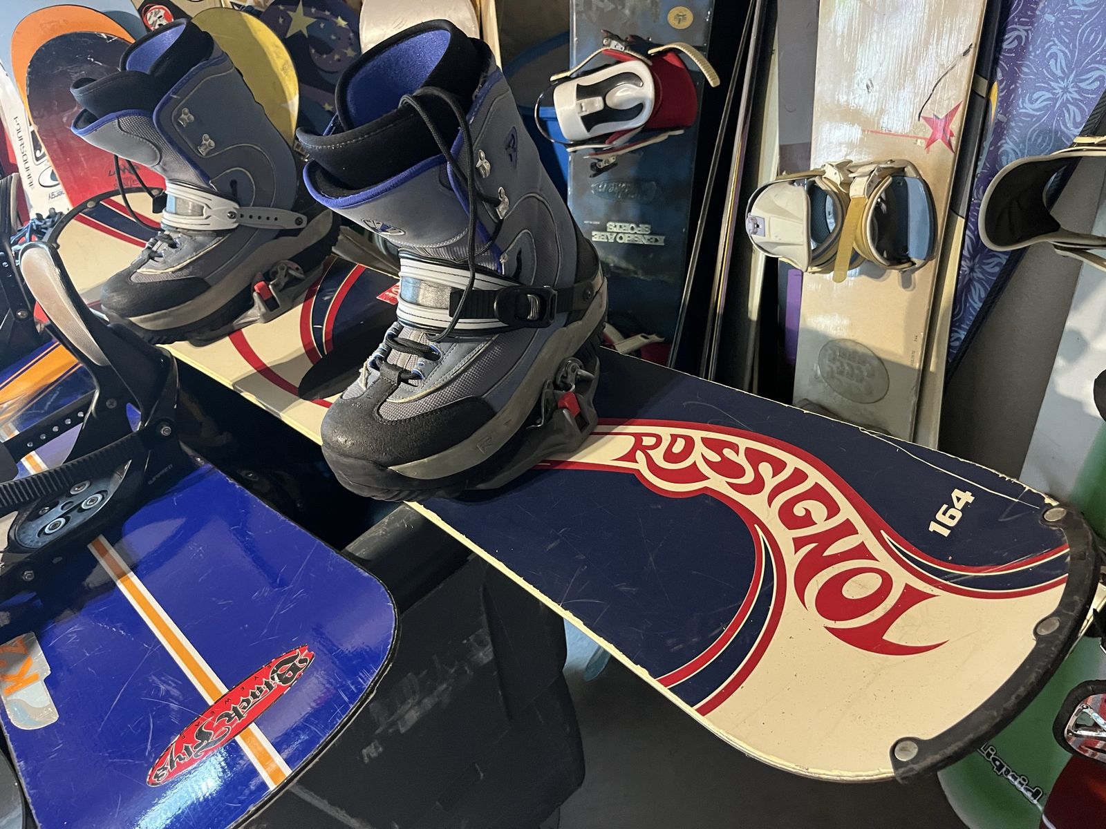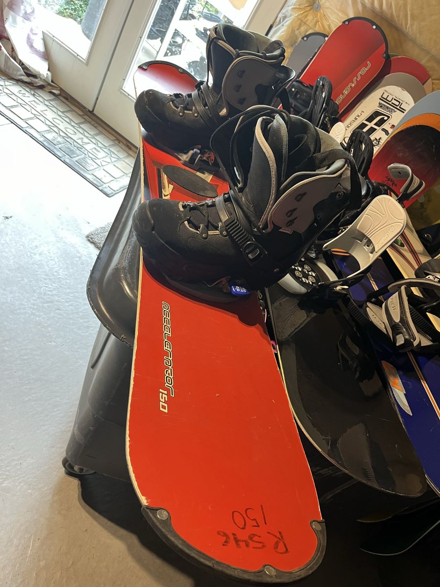 I have two step in snowboards with boots, size 12 boots, a 150 and a 164 Rossignol check pictures for more detail details