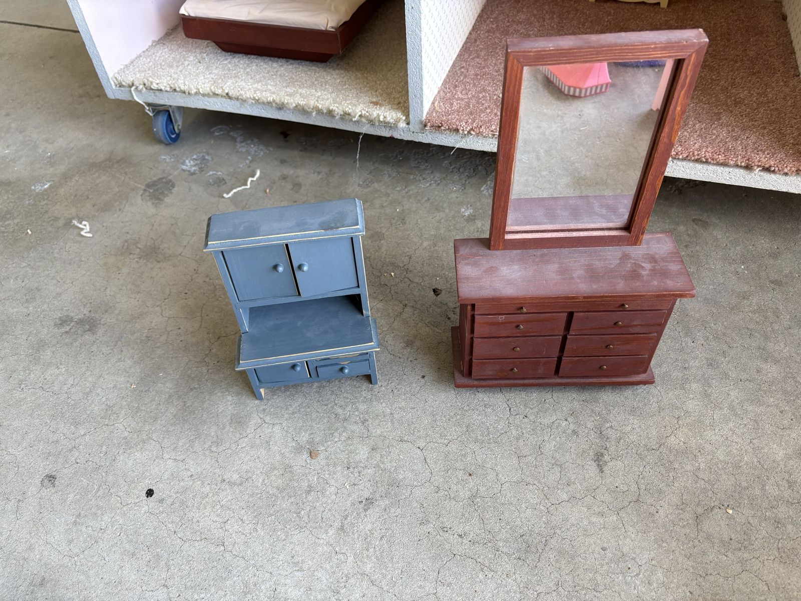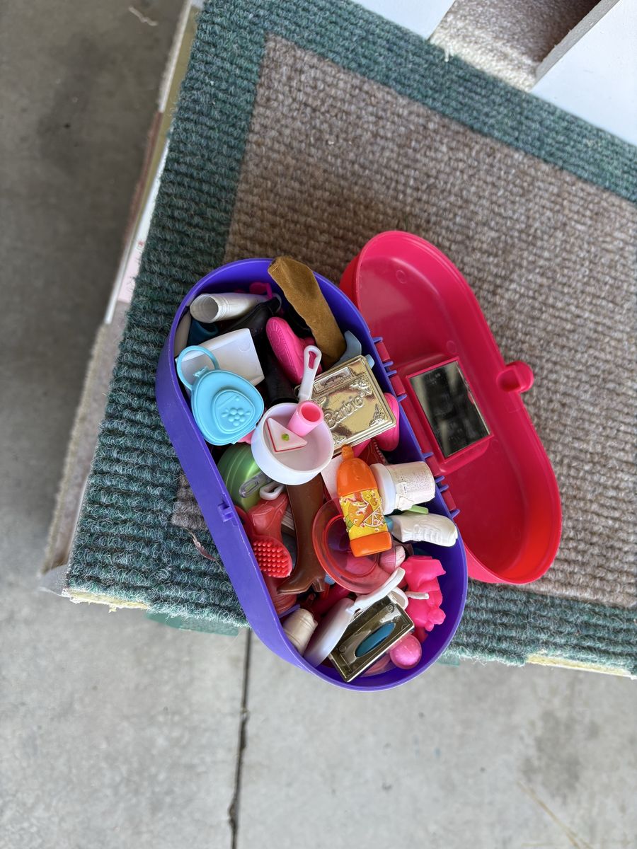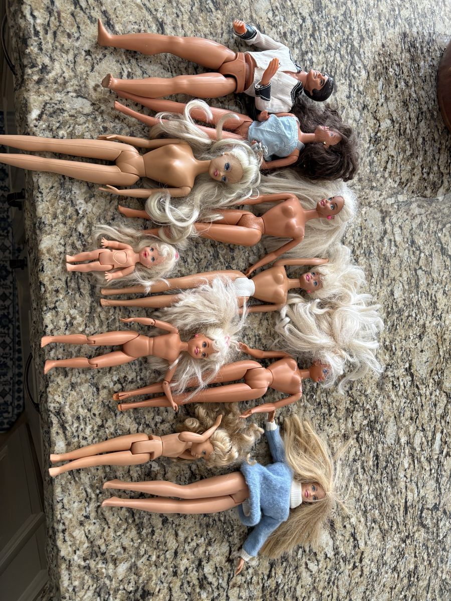 VenmoHomemade wooden Barbie dollhouse. Includes furniture for all of the rooms, 10 Barbies, Barbie jeep and Barbie Volkswagen bug. House is on castors so it is easy to move