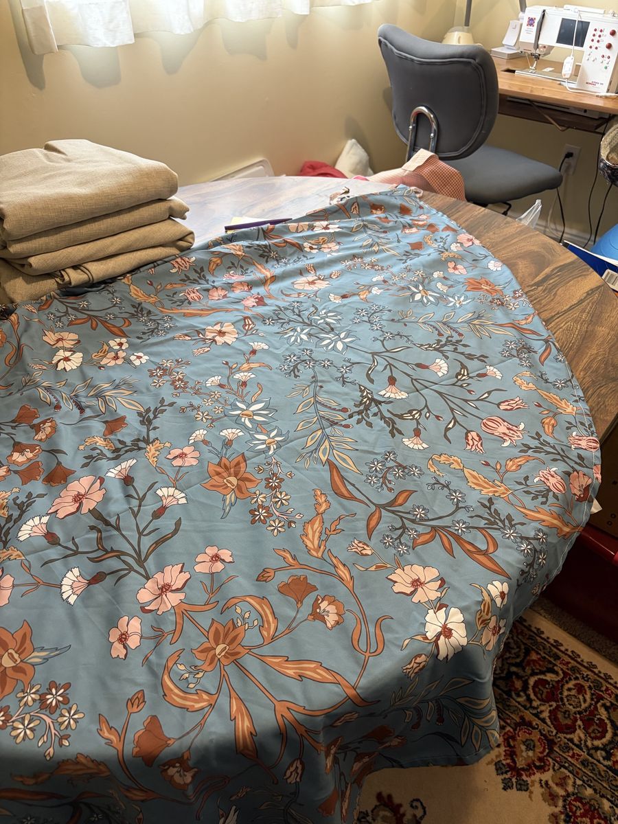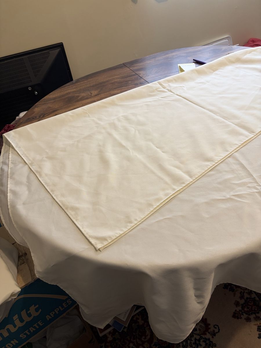 Venmo5 60x100 beige rectangle polyester wrinkle free washable $30 group 4 96”x88”apx beige faux linen round washable wrinkle free $75 group 4 96”x88” blue gray floral round polyester washable wrinkle free $30 group