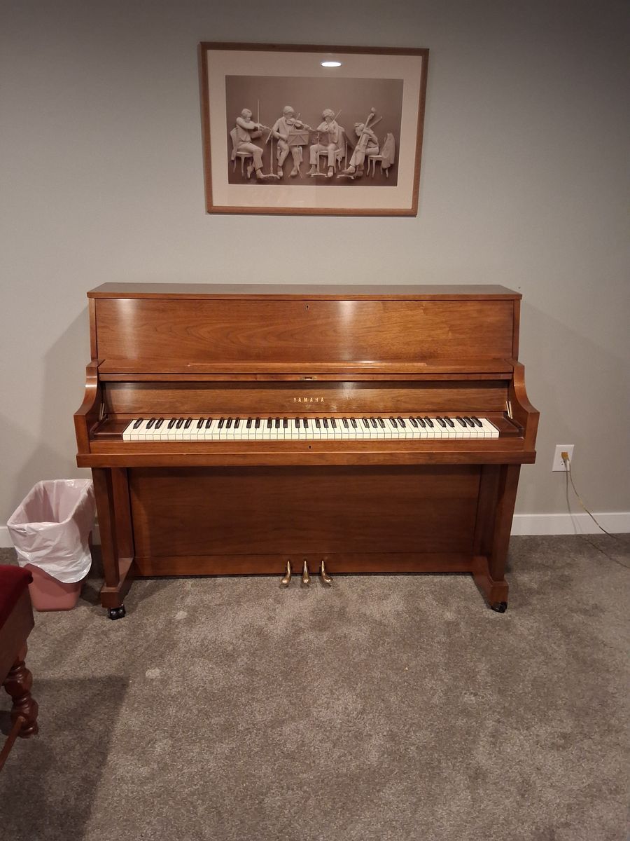 Upright Yamaha Piano, Tuned, Cleaned, Tuned up, Worked up, a year and a half ago, perfect working order, sounds great, good condition, minimal use, in home, living room only, purchased mid eighties, taken good care of.