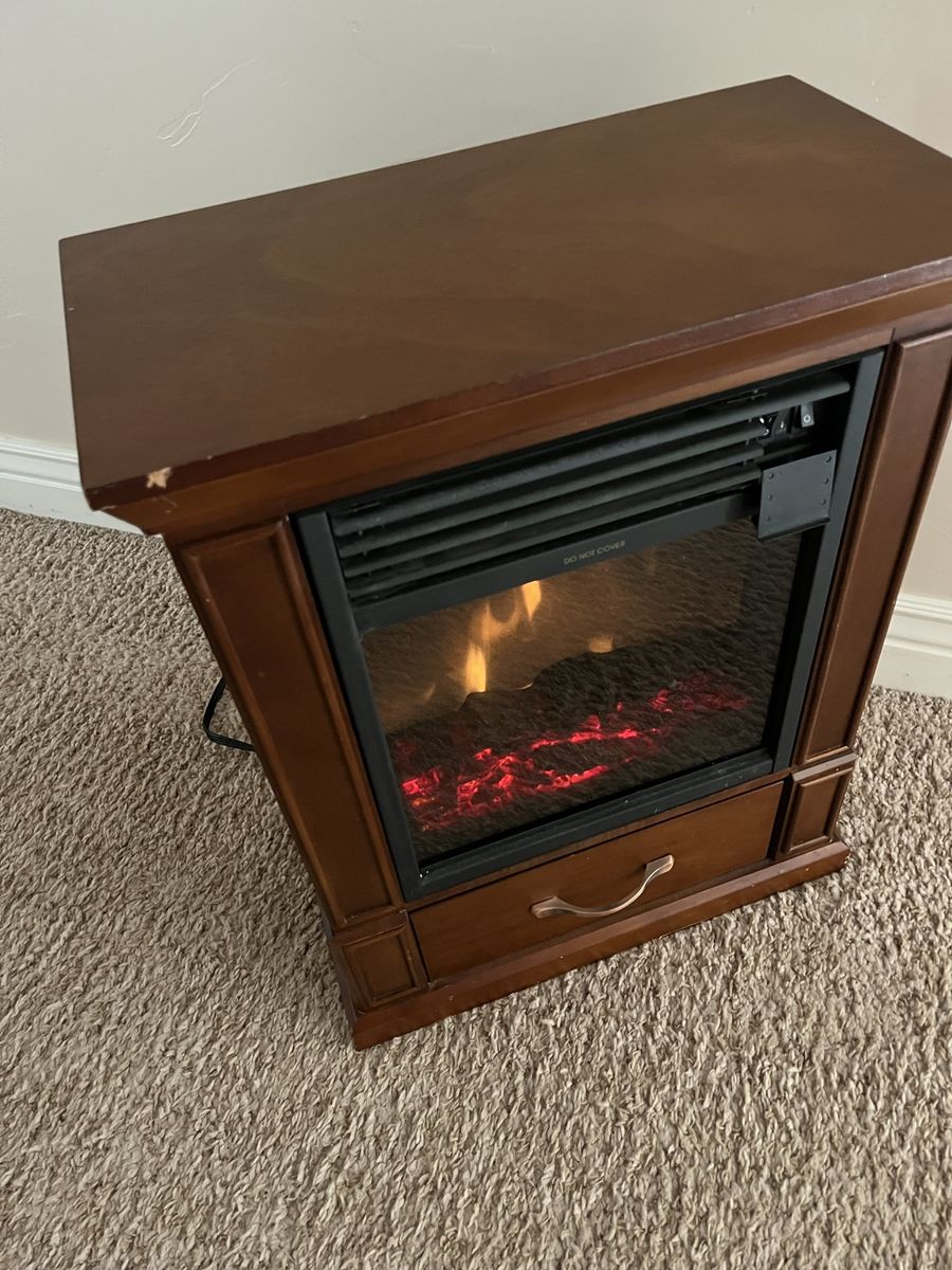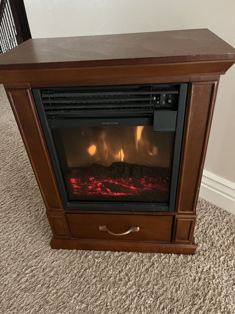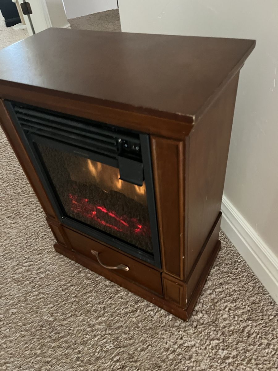 Nice small electric fireplace with flames, with or without heat, you can have the flames and not the heat or the flames and heat, the dimensions are 20 inches long 25 inches tall and 11 inches deep. Located in Saratoga Spgs Venmo or cash