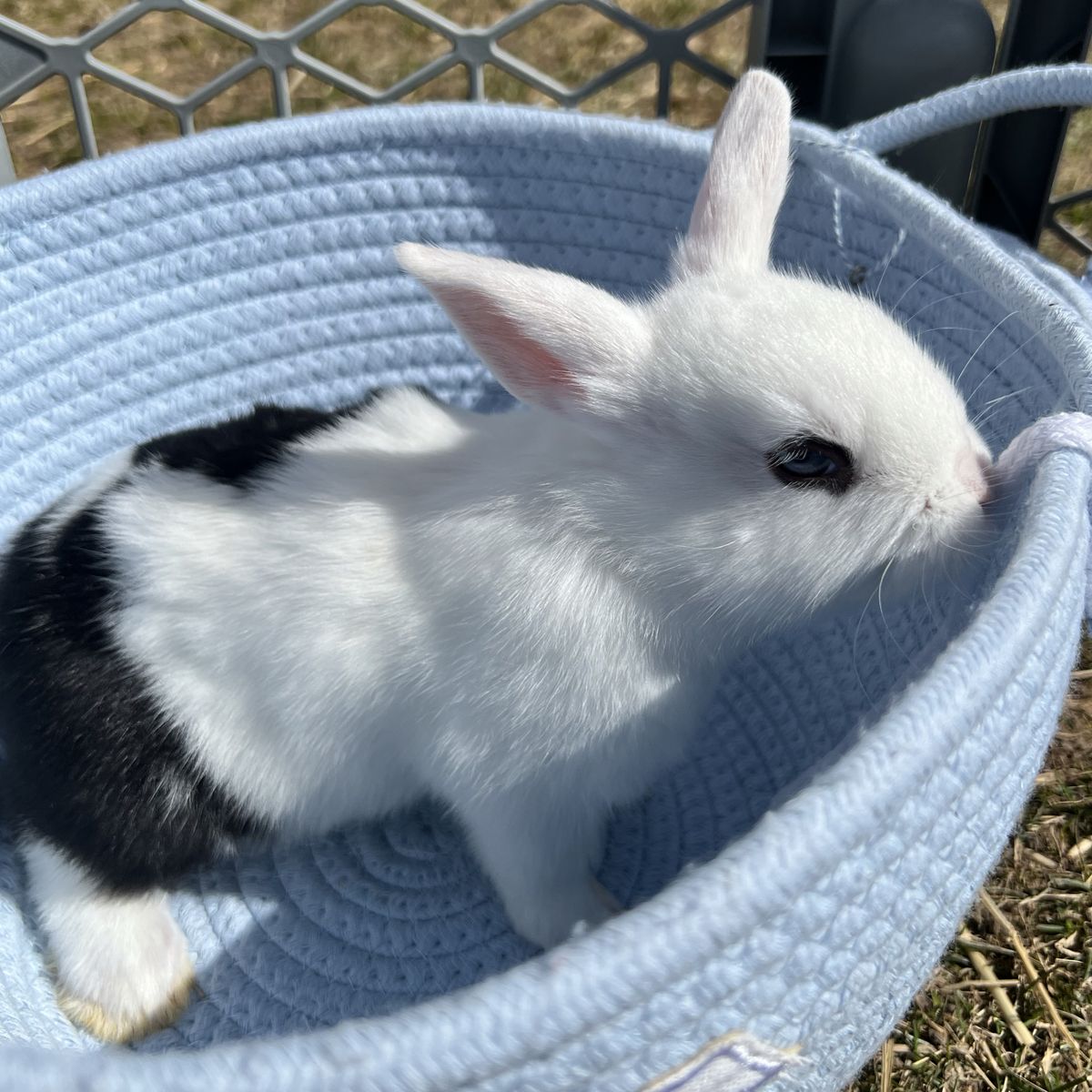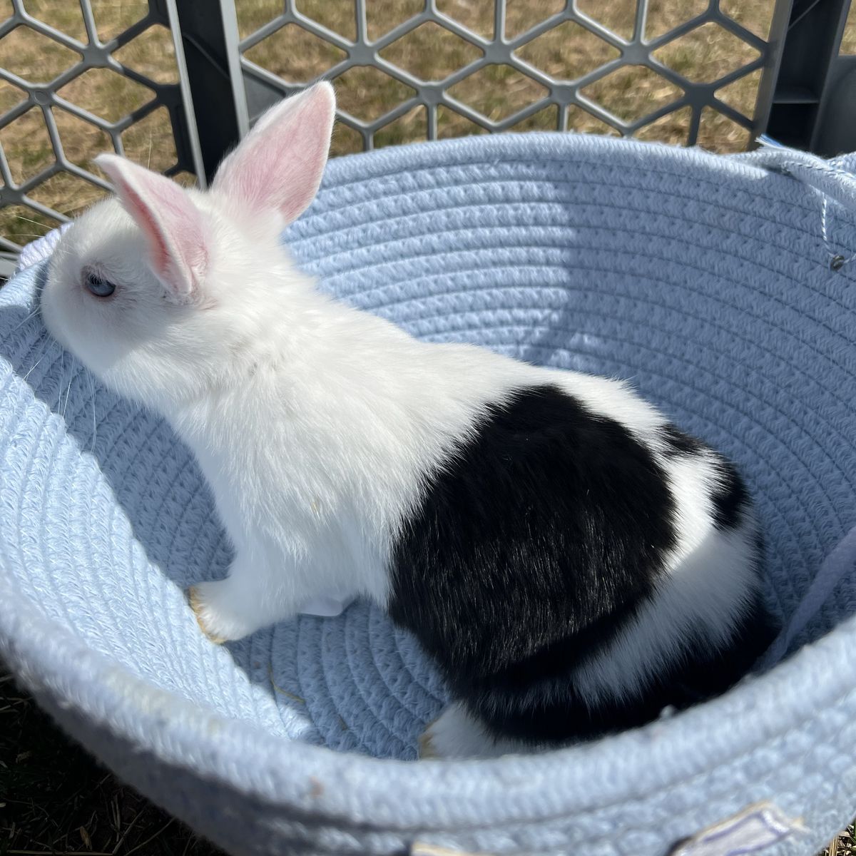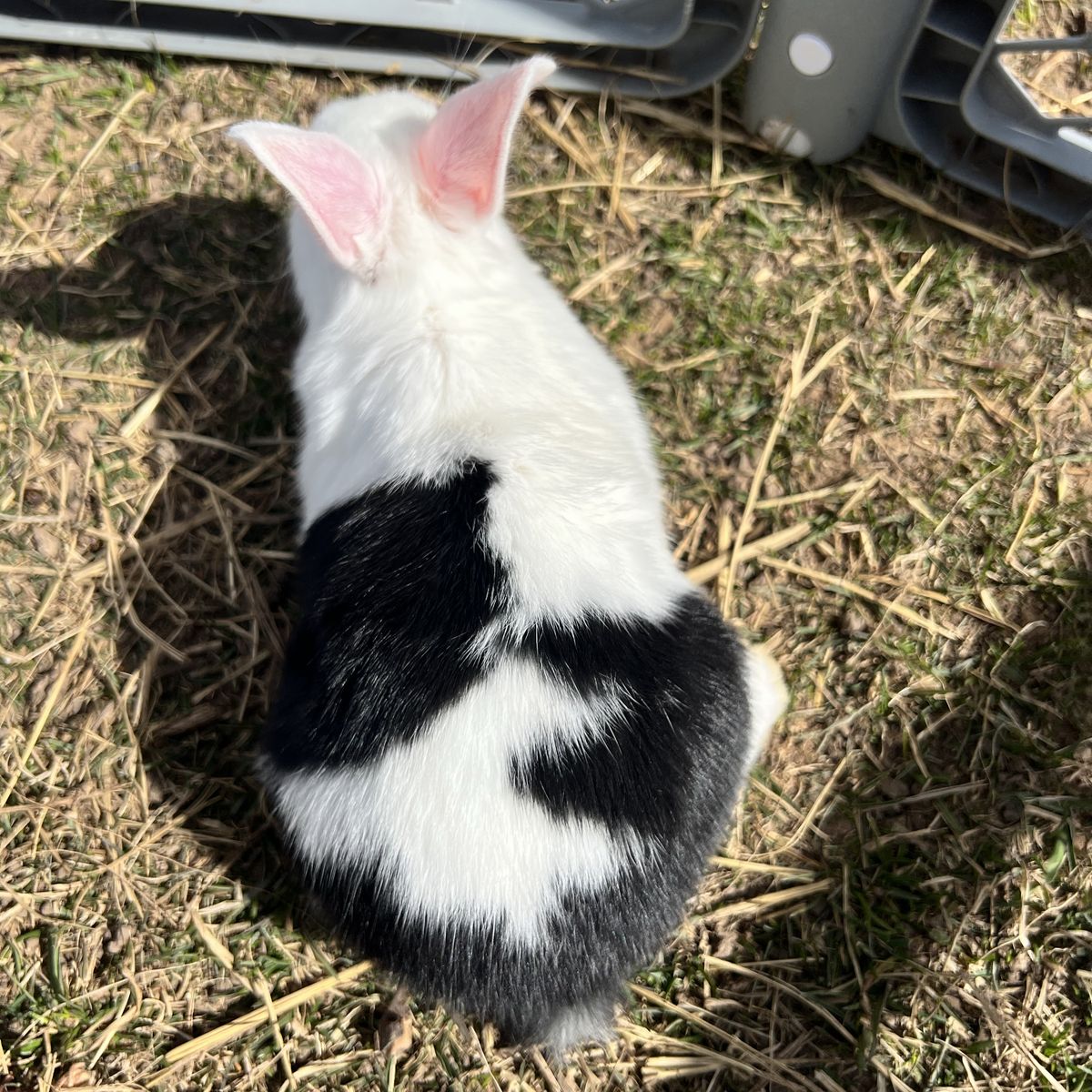 VenmoDutch rabbit buck. He has the prettiest black line around his eye. He looks like he’s wearing eyeliner! He is 8 weeks old and ready to go! These fluffballs have been around other bunnies, dogs , cats chickens and little kids. (youngest is 3) They are used to being held and loved on. 40 OBO