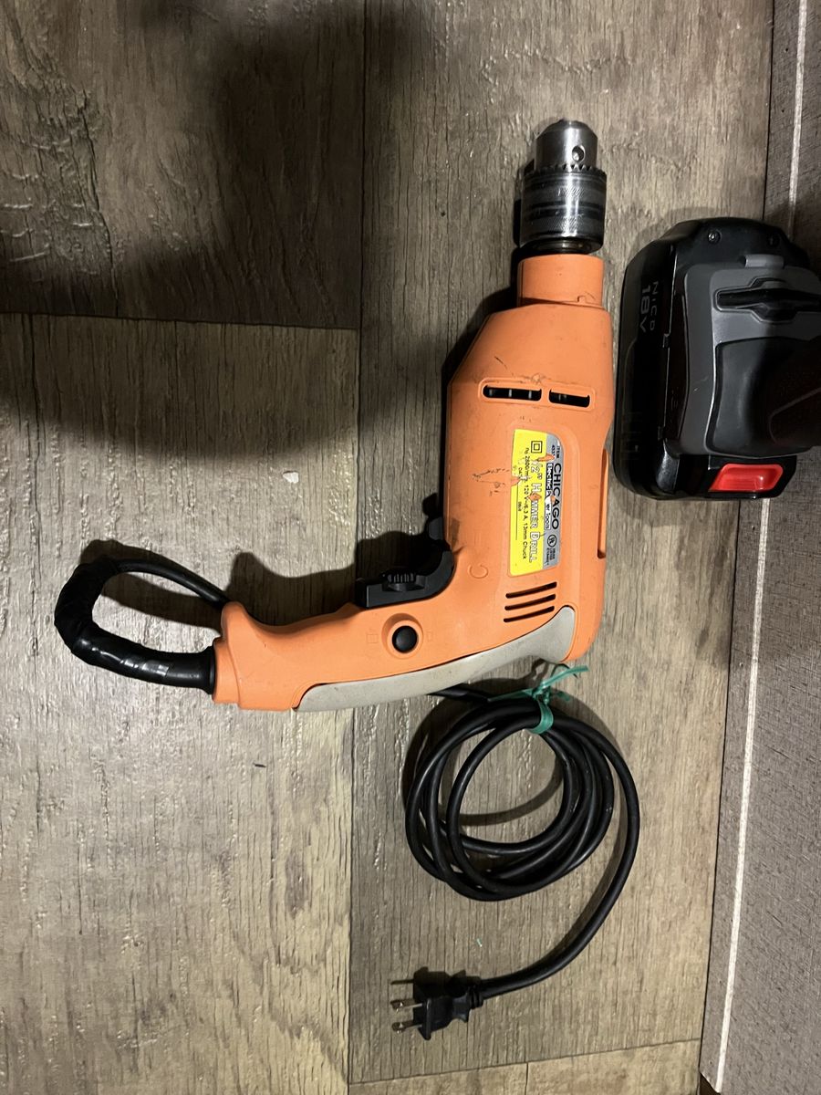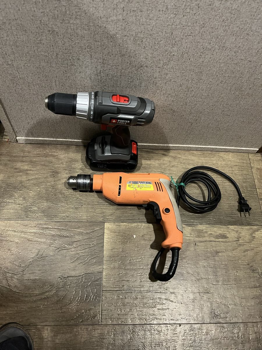 Hammer Drill, Hand Sander, 10amp circular saw, 7.5 amp belt sander, and cordless drill (no charger for that cordless drill)