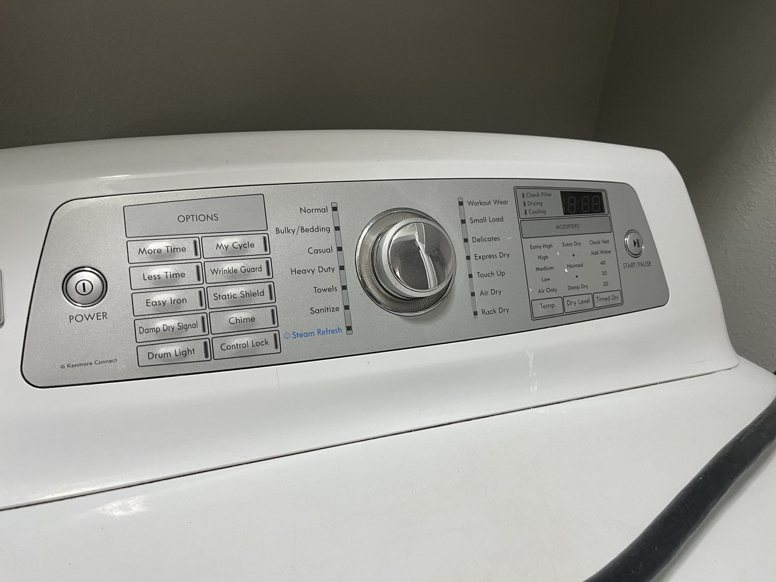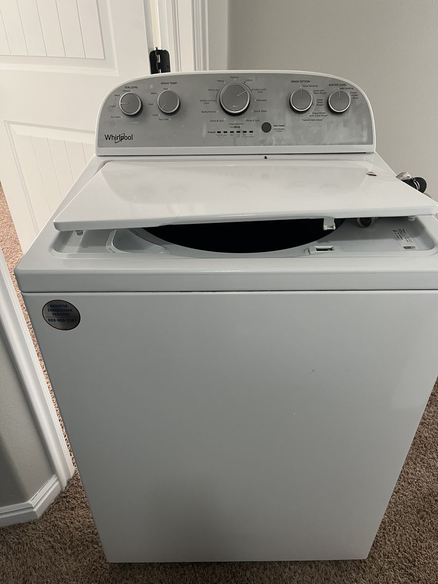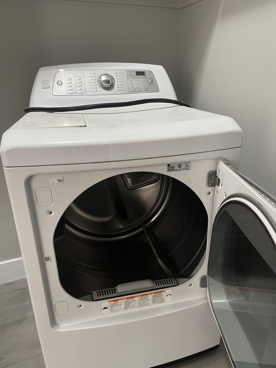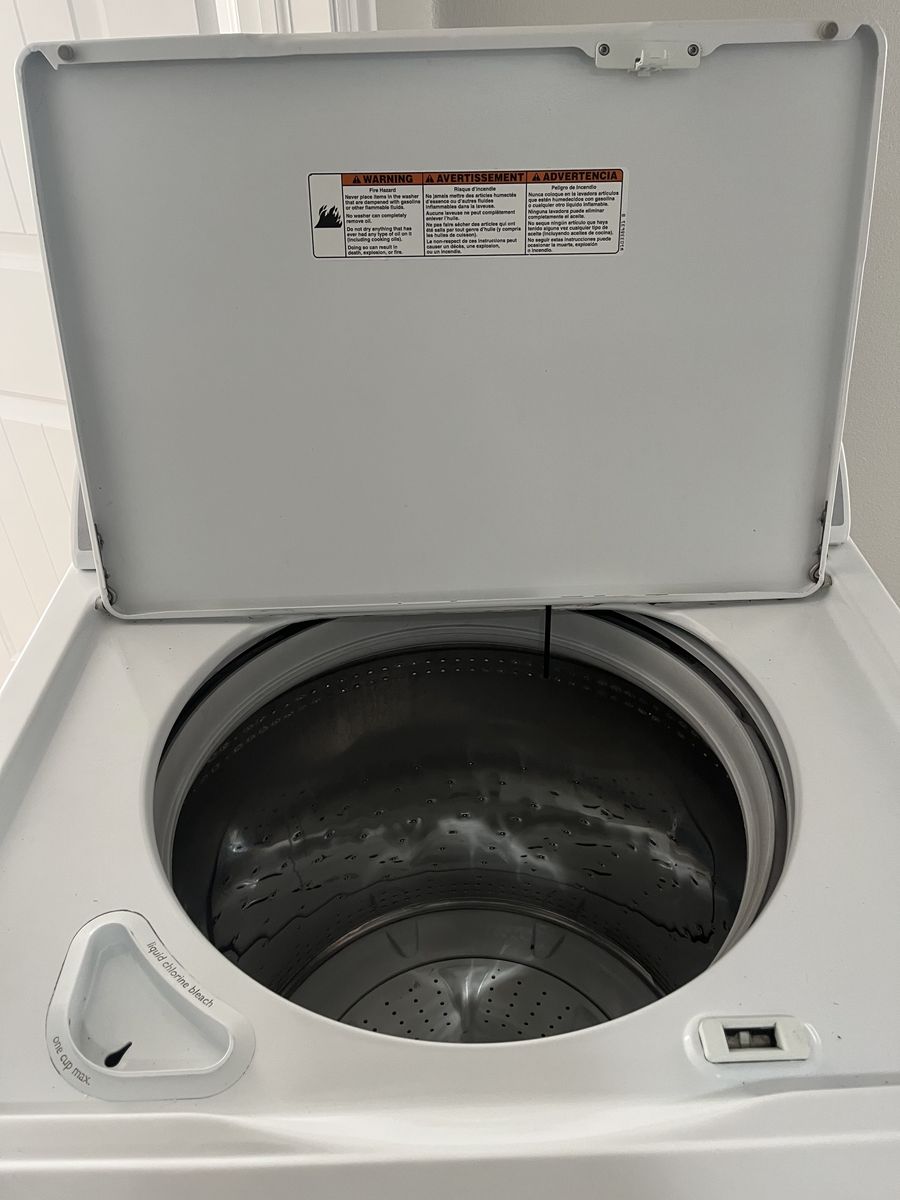 VenmoWasher: About two years old, works great. High Efficiency Top Loader without agitator for larger loads. $450 Dryer: A little older but still works well. Electric. $150