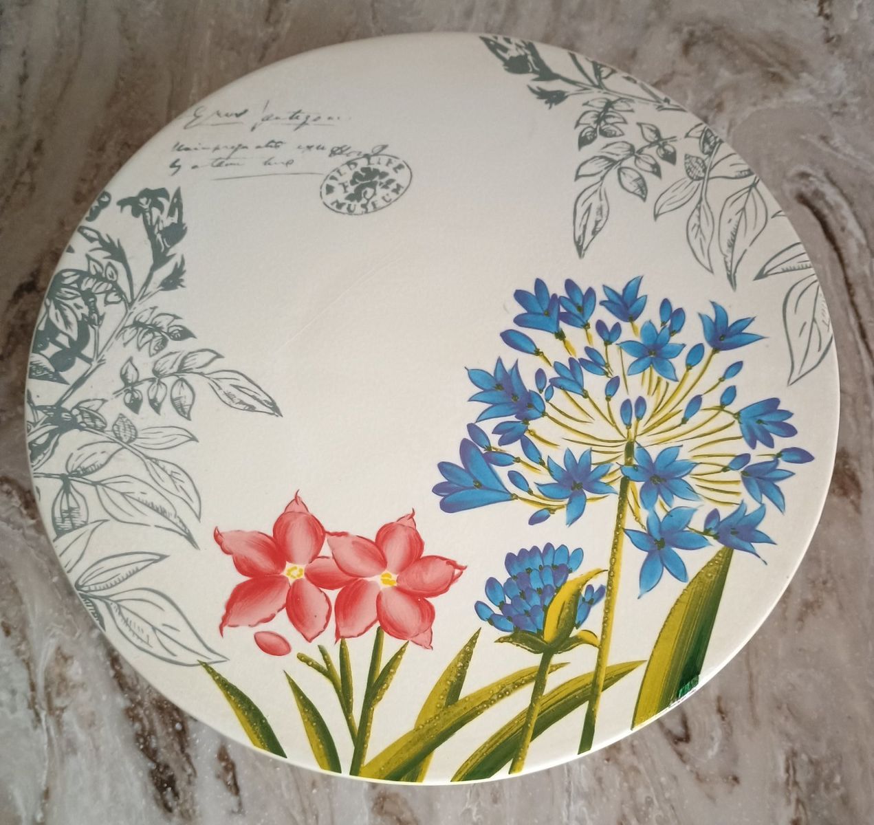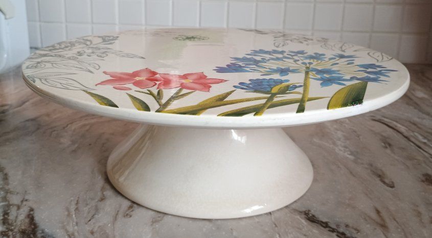 VenmoFloral Cake Stand measures 12.25" across, 4" tall. Ceramic. Smoke and pet free home