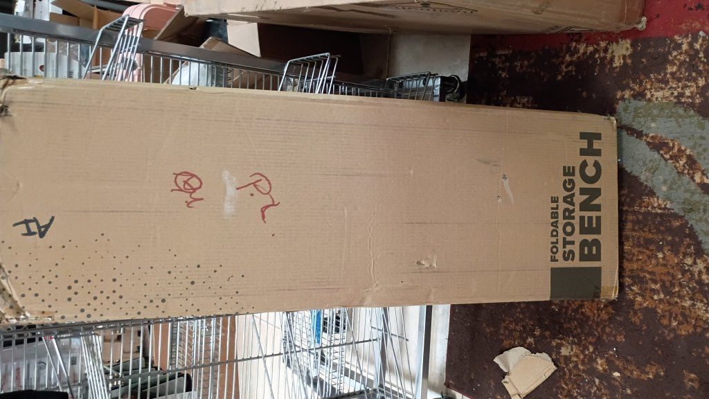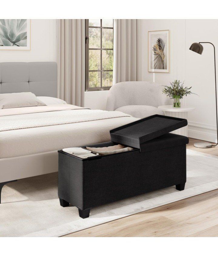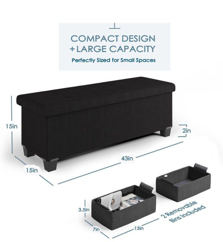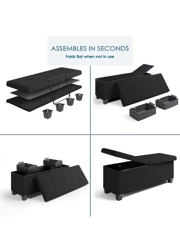 New in box Storage Ottoman Bench with Storage Bins, 43-In Storage Bench for Bedroom End of Bed, Large Ottoman Foot Rest, Black Ottoman with Storage for Living Room, Bench with Storage Max 660lbs, Fabric Ottoman