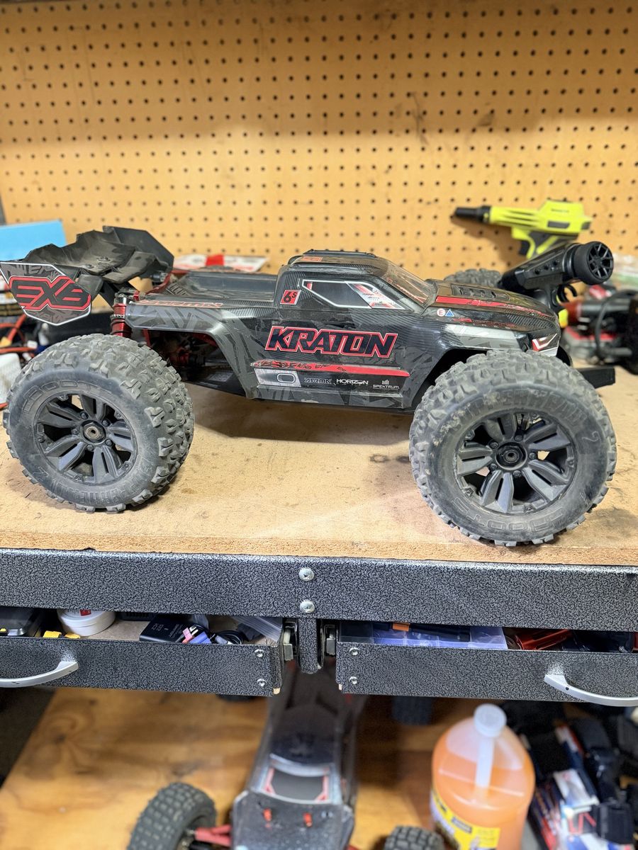 VenmoFor sale is a Arrma Kraton Exb V6 6s 1:8th scale. It’s been an awesome car only things I’ve done to it where Gpm center diff cover and center diff locker spool. I’ve only ran maybe 3 or packs through it besides that it’s basically still brand new. It comes with a 6s battery and the transmitter.