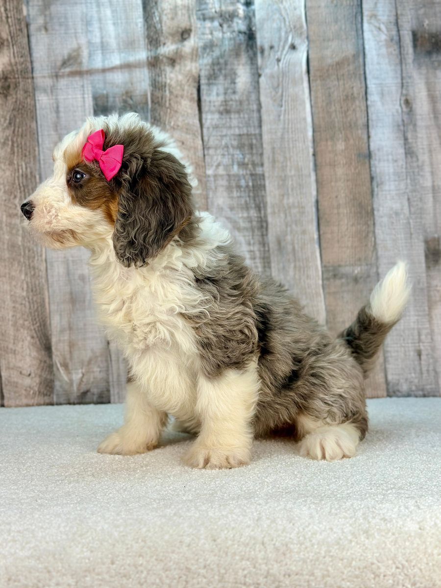 ZelleFifi is a beautiful Mini Bernedoodle girl with a gentle, loving personality and a playful charm that makes her impossible to resist! She’s expected to weigh around 30–40 lbs full grown, making her a perfect medium-sized companion—great for families, cuddles, and everyday adventures.