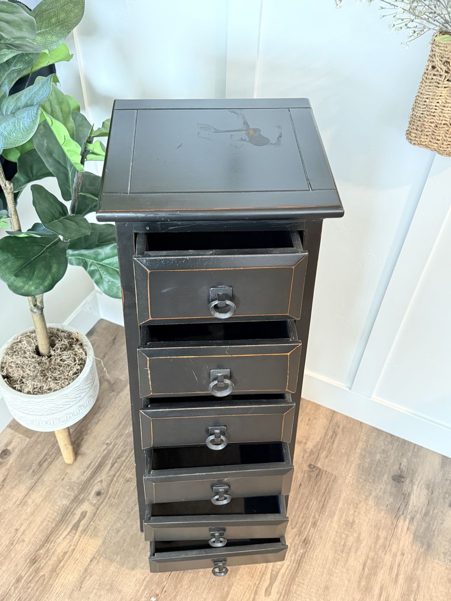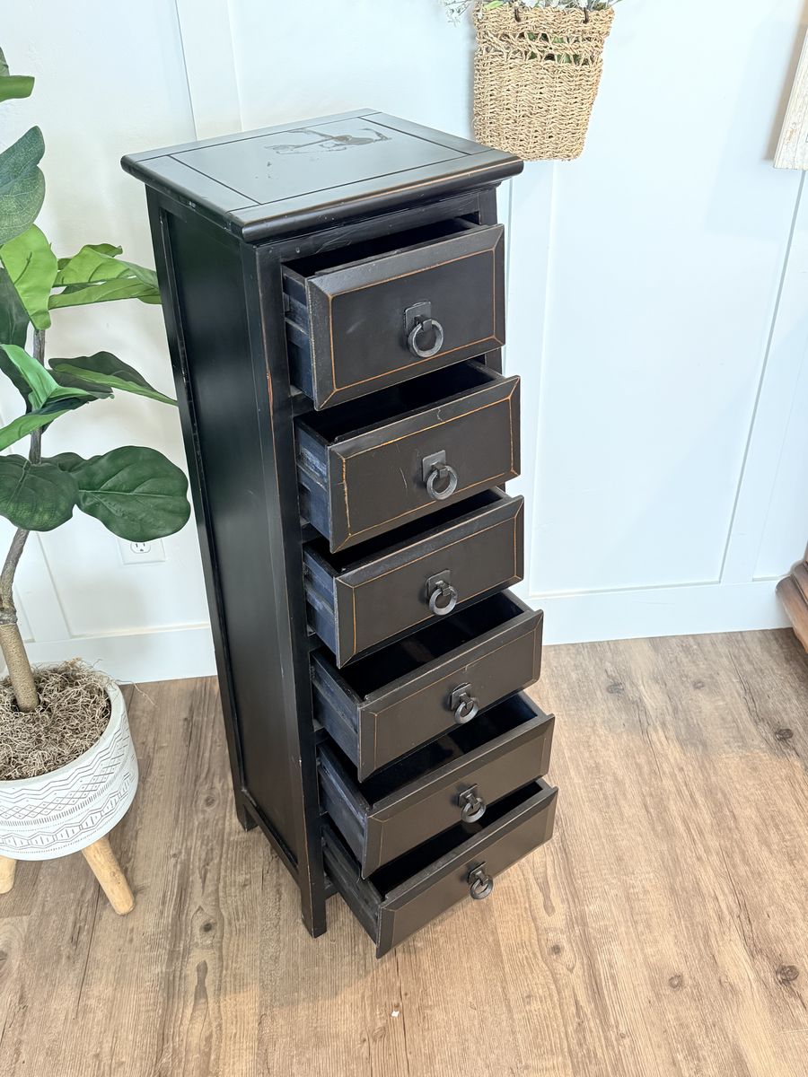 VenmoTop is approximately 12 x 12 and it widen as it goes down to about 15 x 15 Beautiful seven drawer 43 inch tall lingerie dresser In great shape