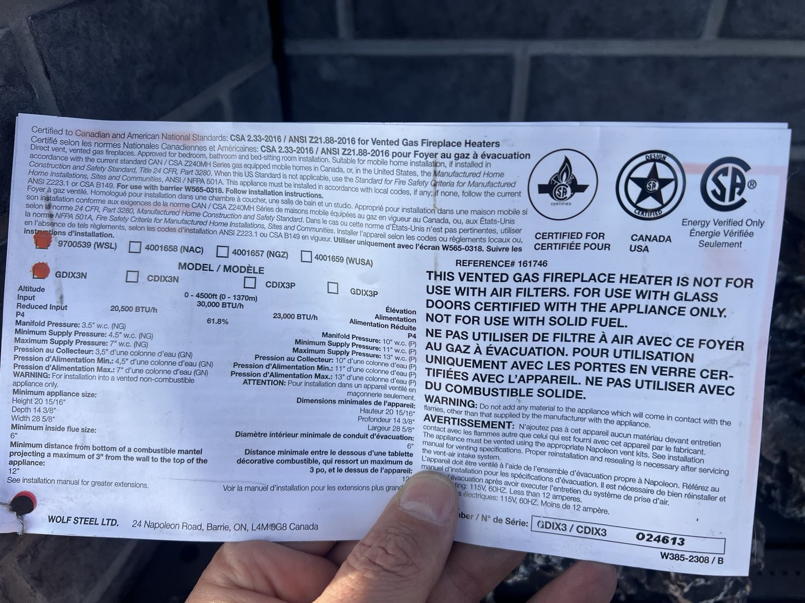 ZelleThis is for a Napoleon Oakville X3 demo unit. This is a deluxe Gas Fireplace Insert which offers exclusive lighting system and additional BTU's for added heat. Directional baffles increase air flow to help drive the heat into your home for maximum efficiency. The perfect solution for replacing and updating an inefficient old masonry setting. PLUS this insert comes equipped with eFIRE Bluetooth technology for your added convenience.