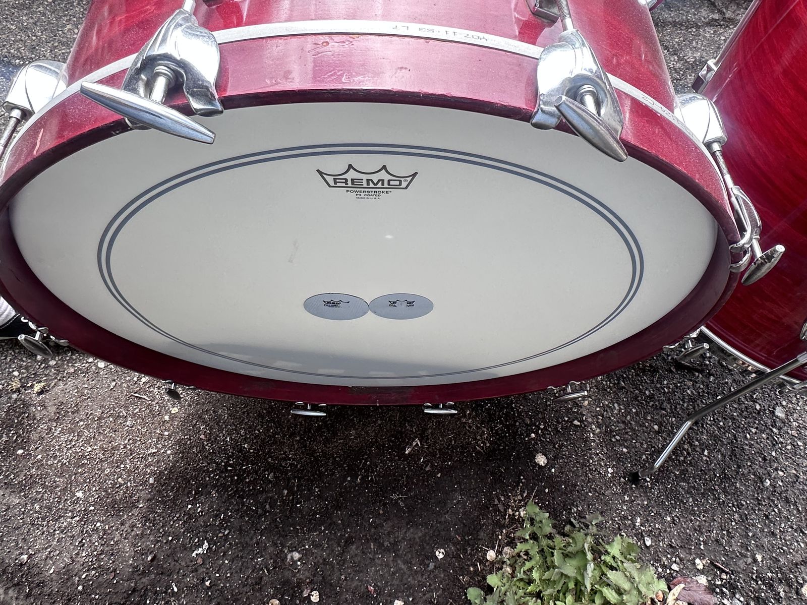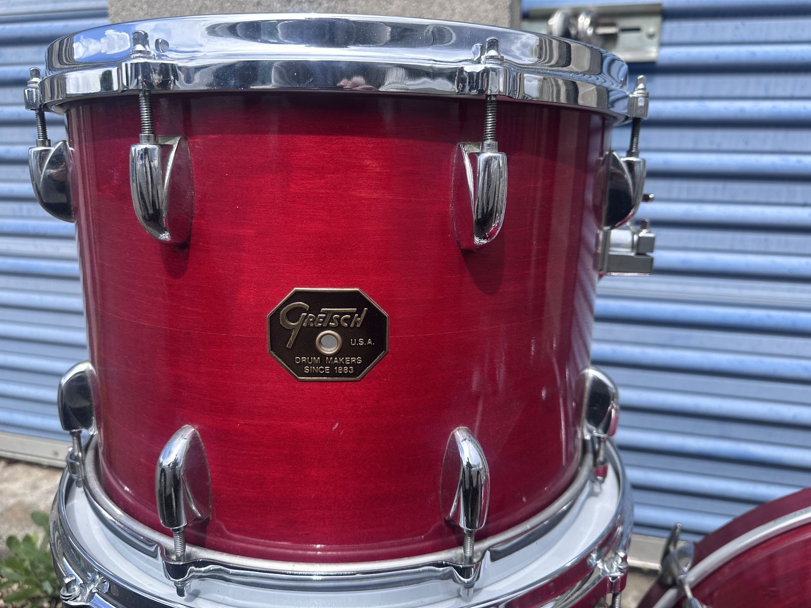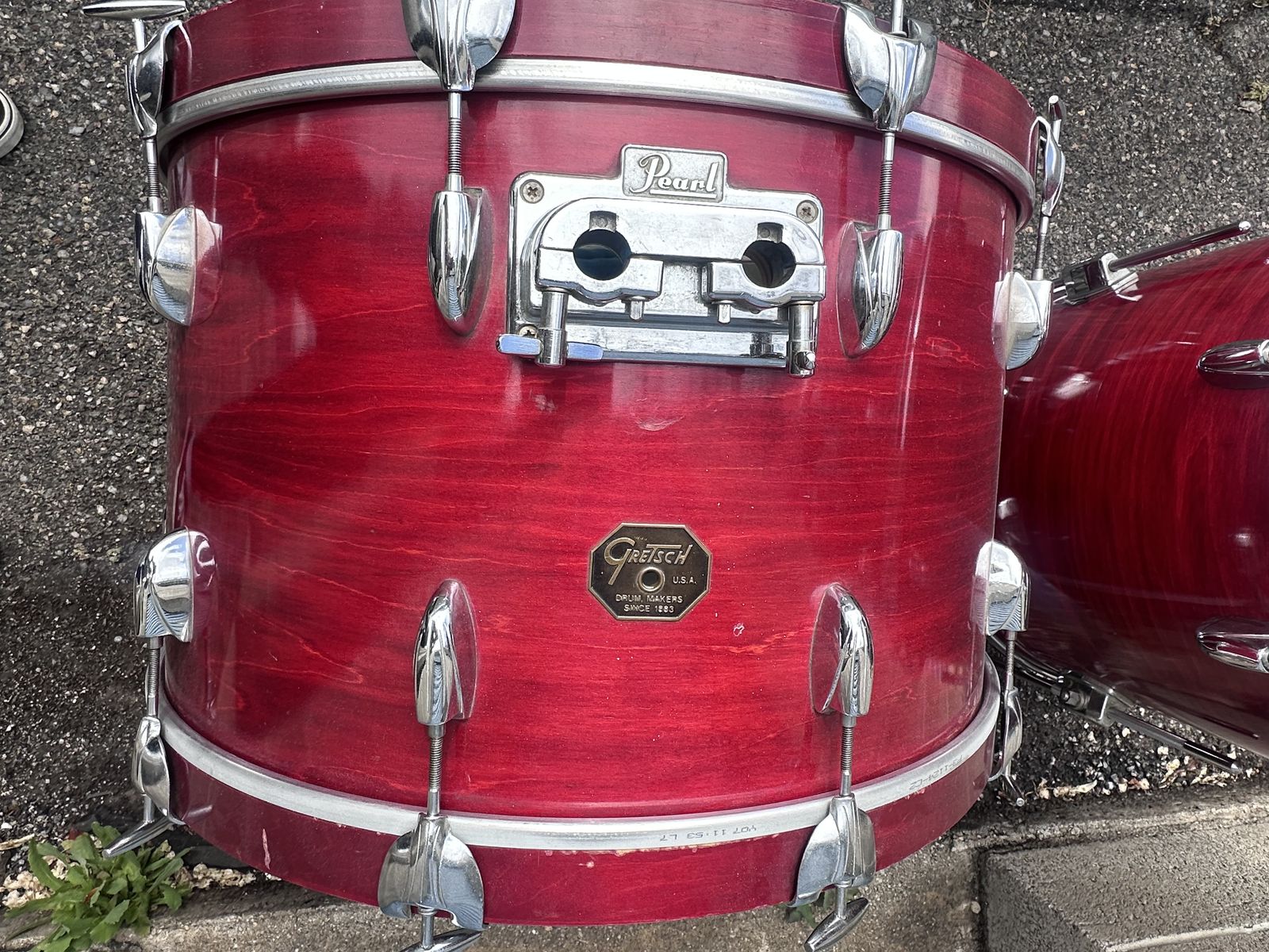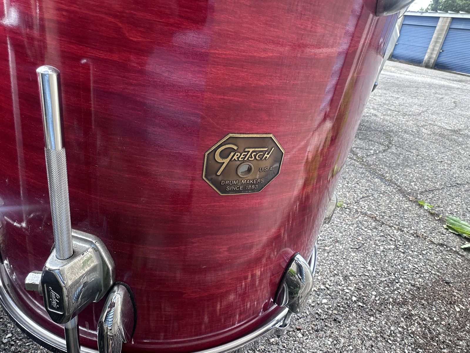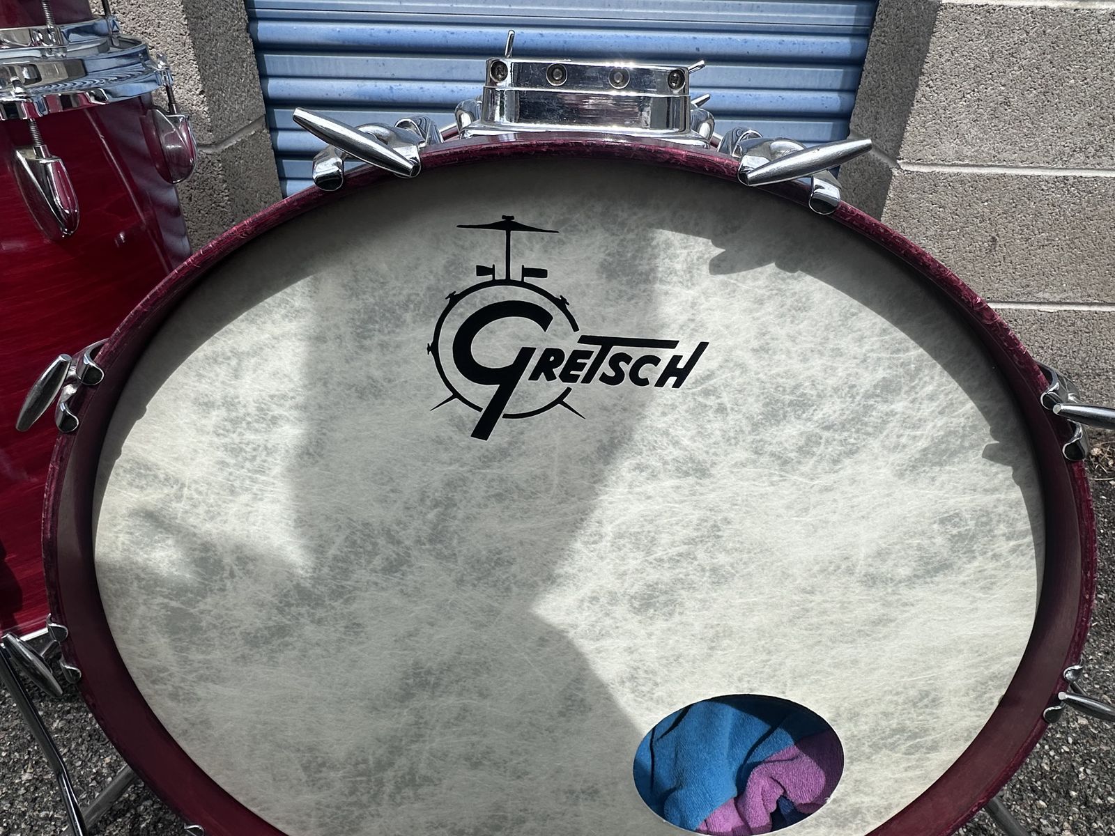VenmoVintage Gretsch kit from the late 70s or early 80s. Rosewood lacquer. 24x14, 14x10, 16x16. Stop sign badge. sounds unbelievable just downsizing a bit.