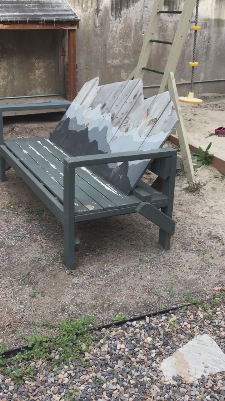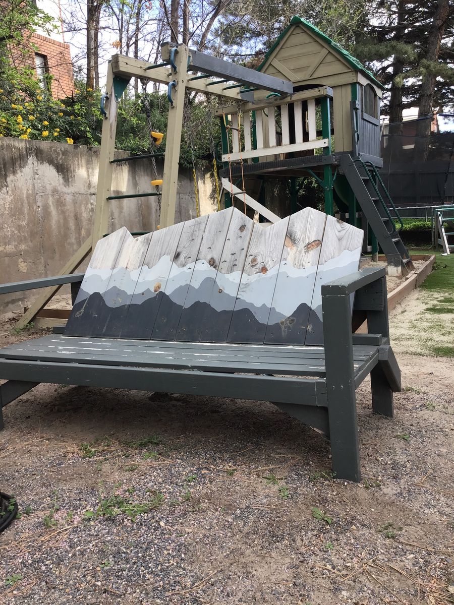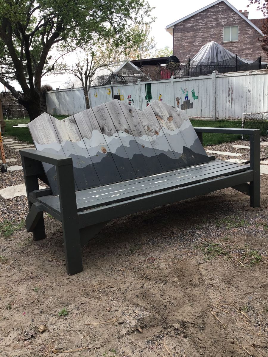 ZelleMade it a couple years ago and designed back rest with art of mountains. Dimensions 68” Long x 34” width
