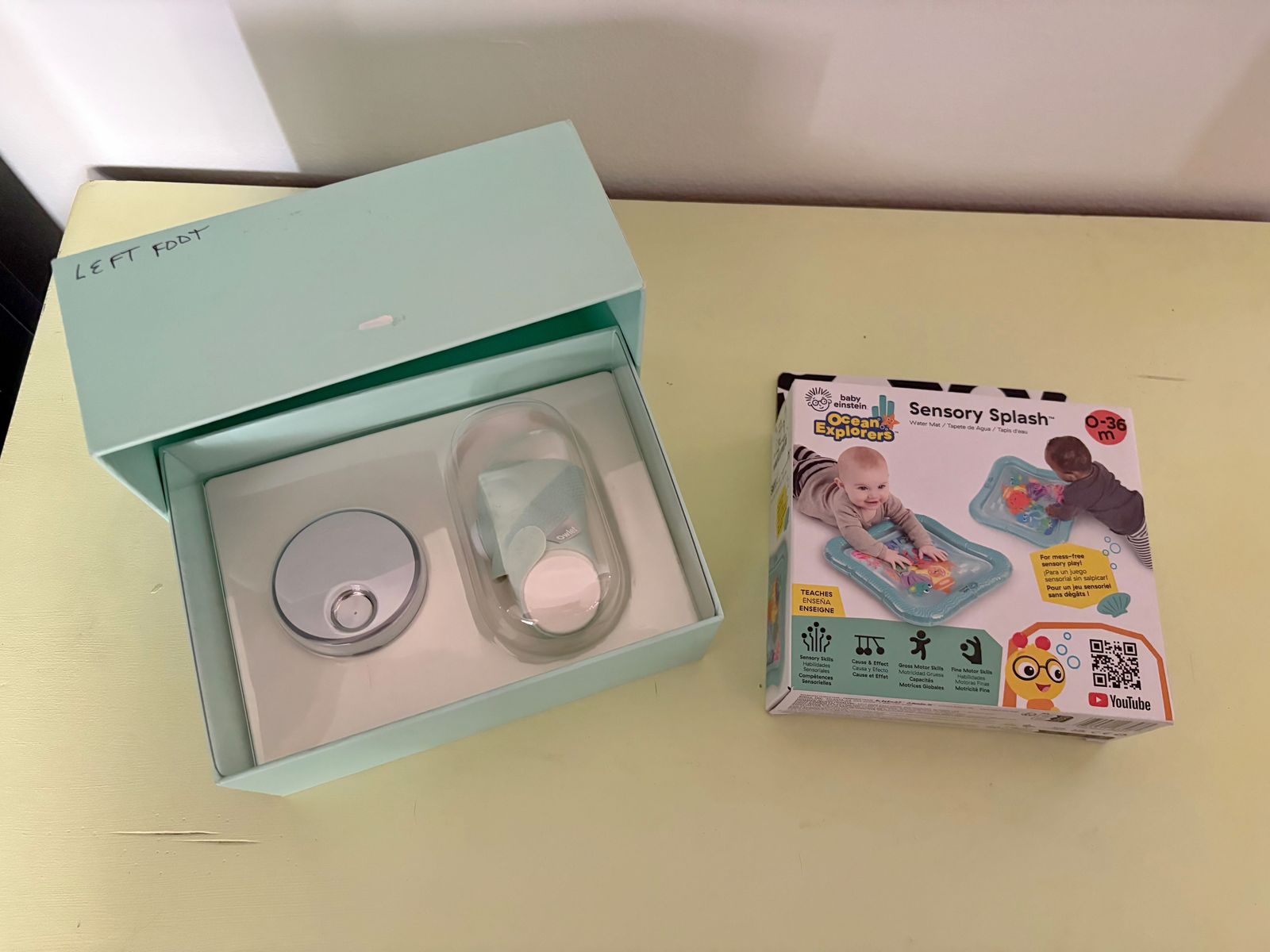 Brand New Owlet Dream Sock (3rd Gen) $275 Barely Used Bottle Warmer $20 Huge diaper lot Newborn and Size 1 mix approximately 275 plus diapers mix of brands some unopened $35 Baby boy onesies and Velcro swaddles assorted $20 Brand New Sensory Splash Pad $5 HALO Bassinest Swivel Sleeper $60 some staining but fully functional