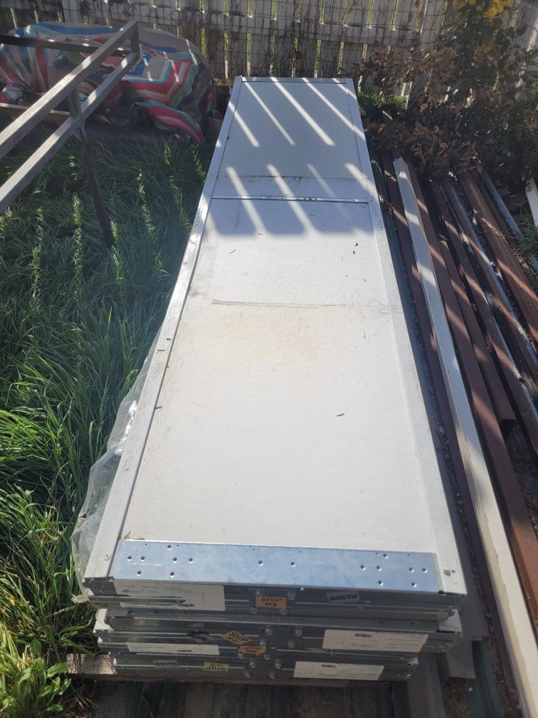 I got two brand new doors. 9'2"x 8' these are insulated doors from Martin Door. built sept of last year and are still bundled together. they have a few minor dings and are missing the bottom angle/seal. these are panels only no hardware