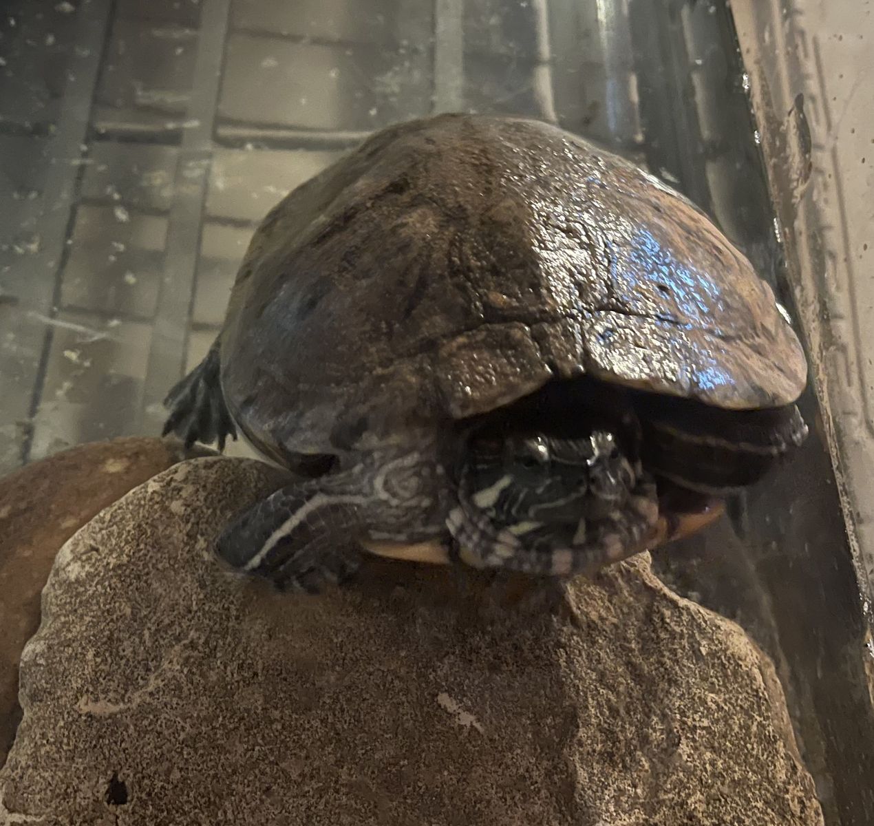 Adult red eared slider, tank, pump/filter, water heater and some turtle food.