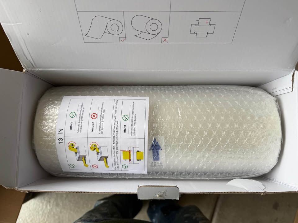 Venmo13x328 film roll brand new still in the bubble wrap. Single-sided cold tear film type. Pick up in Herriman.