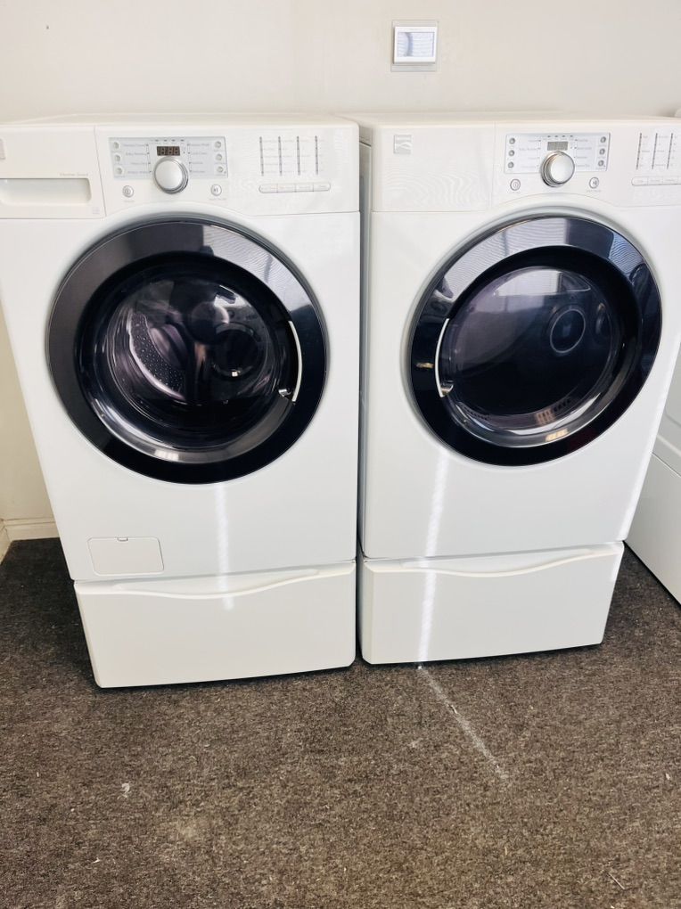 Very nice kenmore by lg washer and dryer set In excellent condition and very clean, the washing machine has a brand new drain pump, the dryer is electric with stainless steel drum. They are mounted on 15” pedestal drawers for extra height and storage. Both look and work amazing. Only $580 for the set. I can deliver and install for a little extra. Call 8015403075