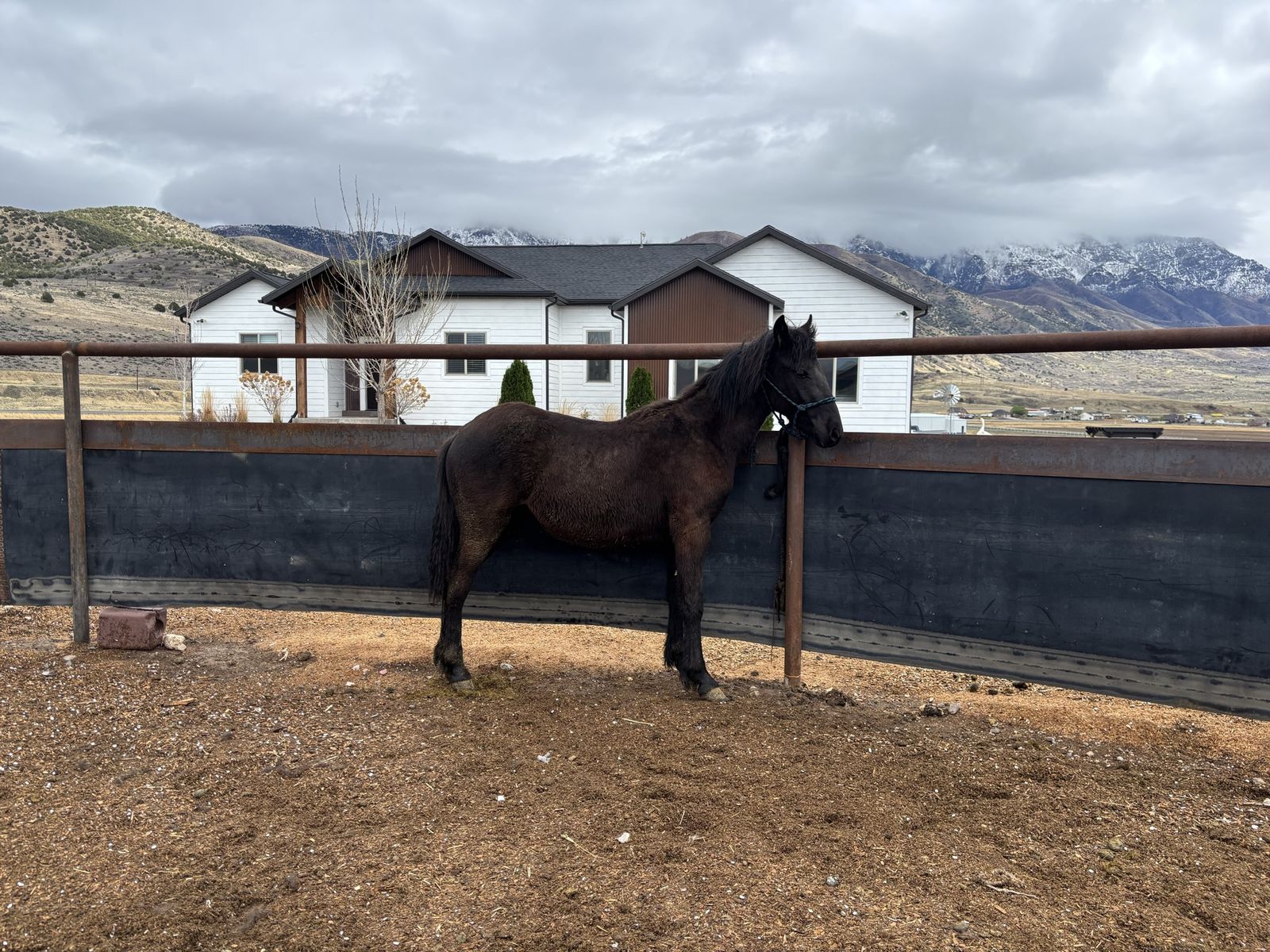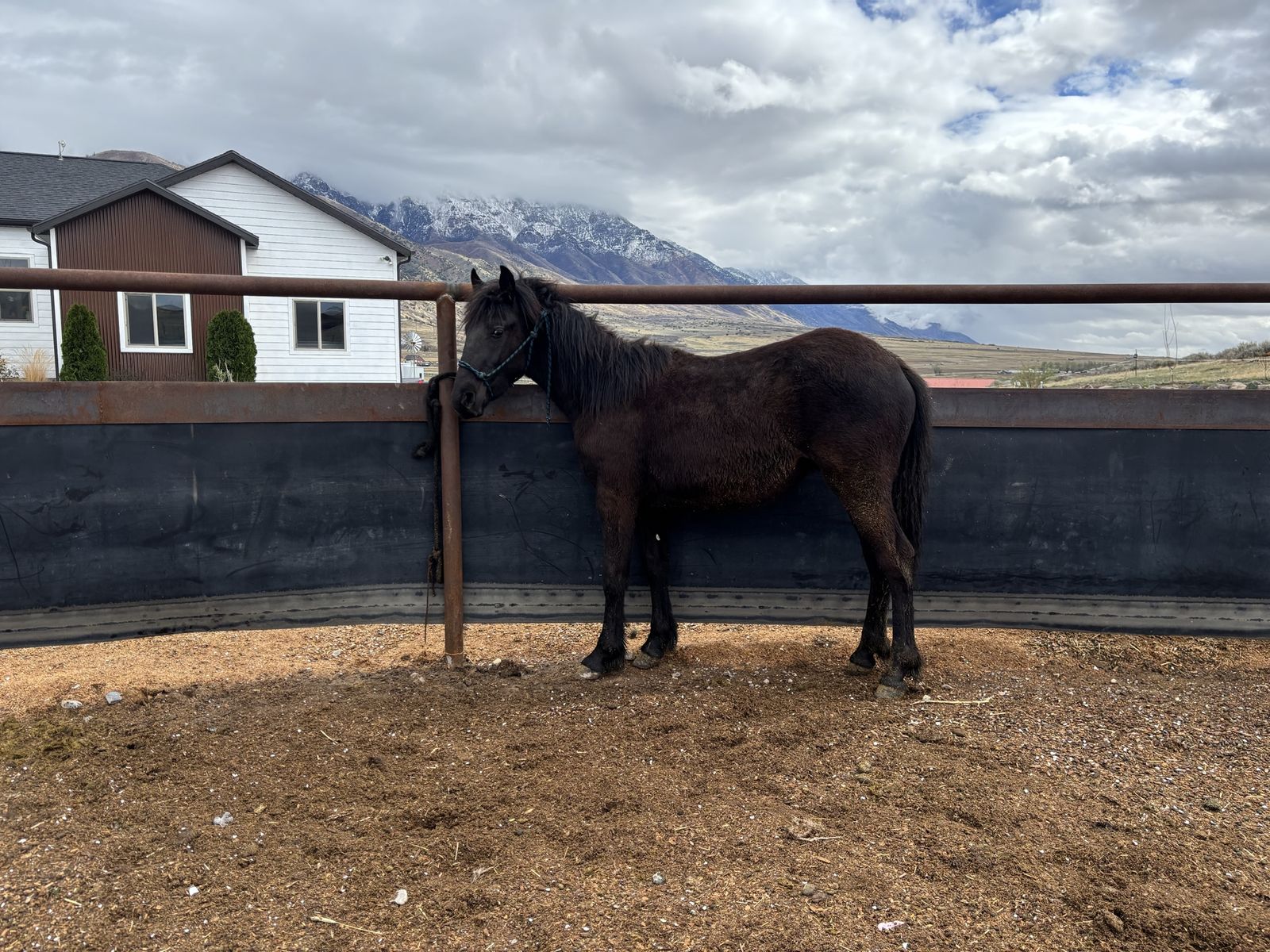 ApplePayAlso interested in trading for some hay! Grimm is a grade yearling black stud Colt. He should roan out I’ve been told. I bought him for one of my siblings, but it ended up not working out. So he’s up for grabs! He’s so sweet and very easy to catch. I brush them off almost daily! Very friendly personality! The baby picture is with his mom and the Stud pictured is his dad. Other than that I don’t know much about his parents. All straight legged:) text with any questions!