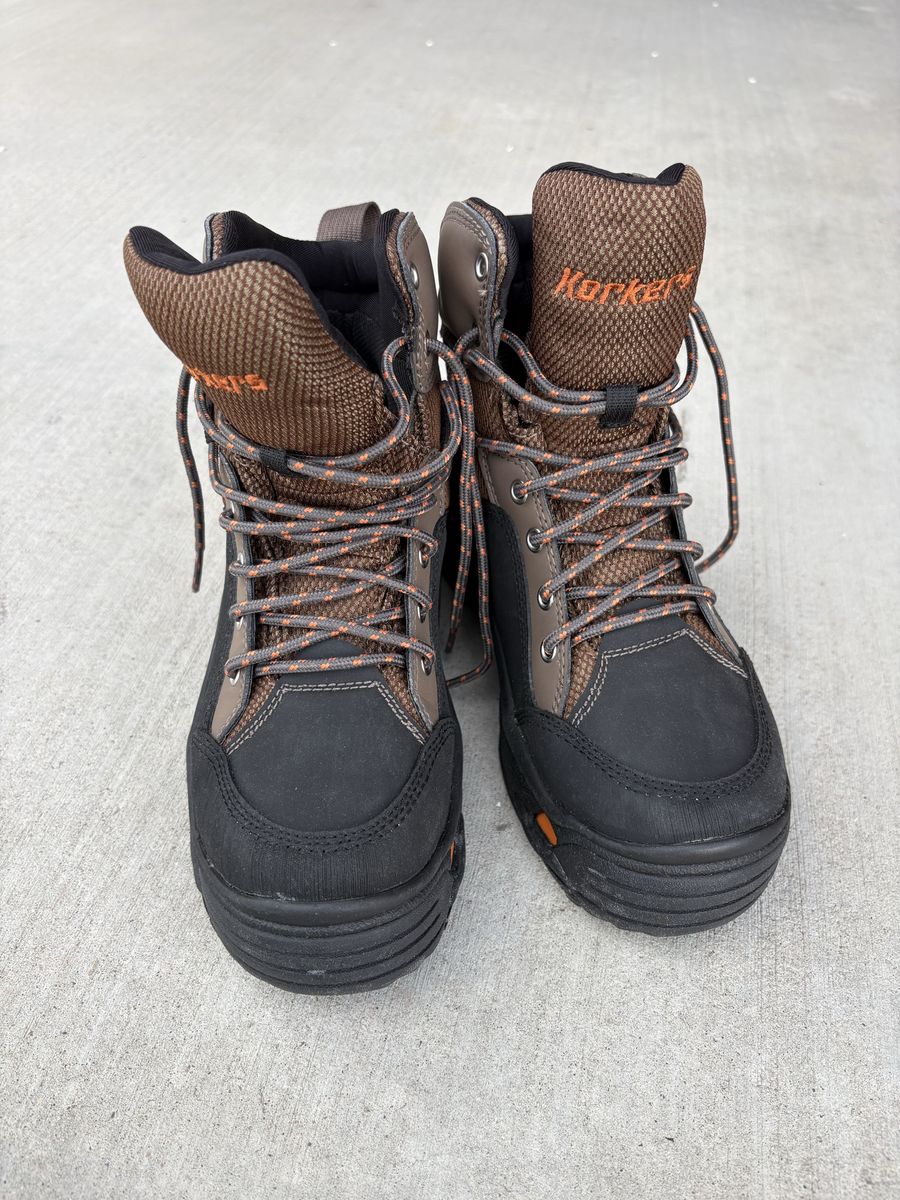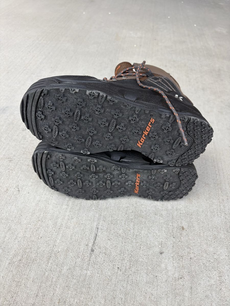 Selling a pair of Korkers Buckskin wading boots in size 7. These boots come with interchangeable Kling-On and studded Kling-On soles.
