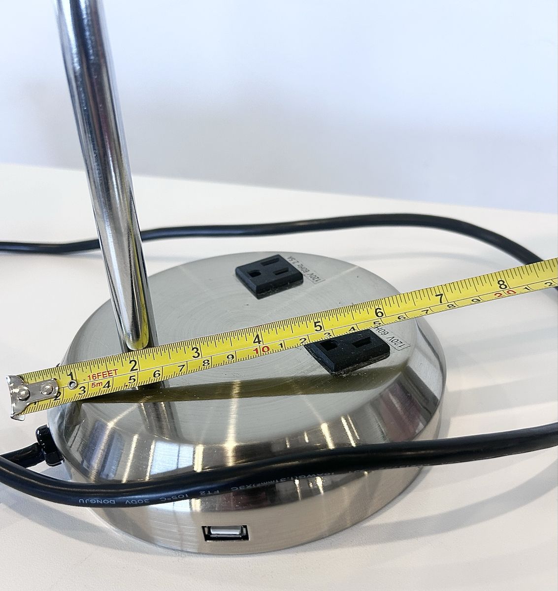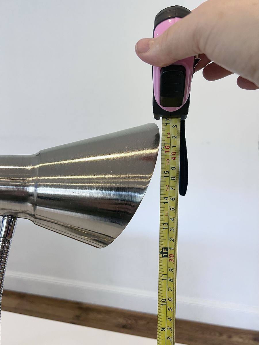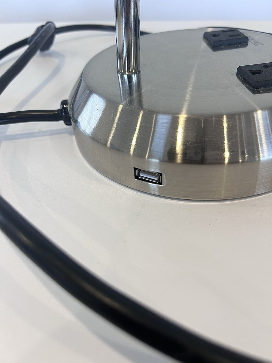 ZelleThe Modern Office Lamp is a sleek and stylish desk lamp designed for a home office or study space. With a silver metallic finish and adjustable features, this lamp is both functional and modern. The lamp is powered by a wall plug-in and made of chrome and metal materials, making it sturdy and durable. The cone-shaped shade and compact dimensions of 9” in length, 16.5” in height, and 9” in width make it a versatile and convenient lighting solution for any workspace. Made in China, this lamp weighs 5 lbs and exudes a contemporary design perfect for any home or office setting.