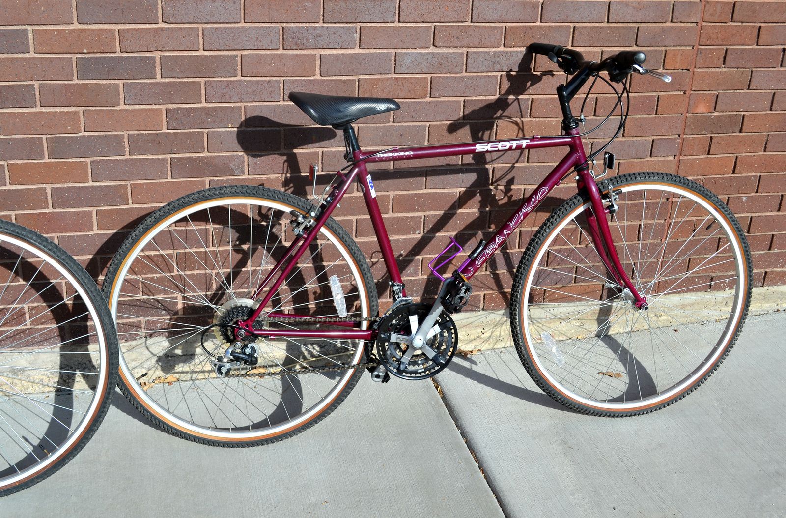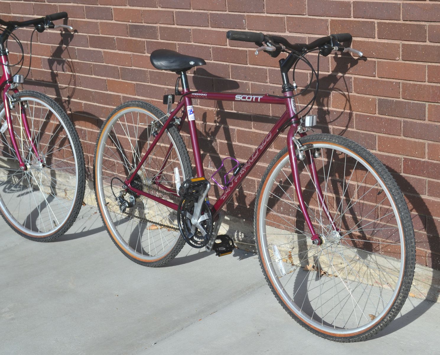 Here we have a couple of nice Scott, 10 speeds bikes, in excellent condition. As you can see from the picture, one has a larger frame, than the other. Tires hold air, and bikes are ready to go. Message me for more information and address where they are at. The price is $125.00 each, or both for $200.00. I live in the Sugarhouse area. These bikes seem to be expensive. Check out prices on eBay or KSL classifieds. Both are models TREKKING, with SAN FRANCISCO on the slopped downbar.
