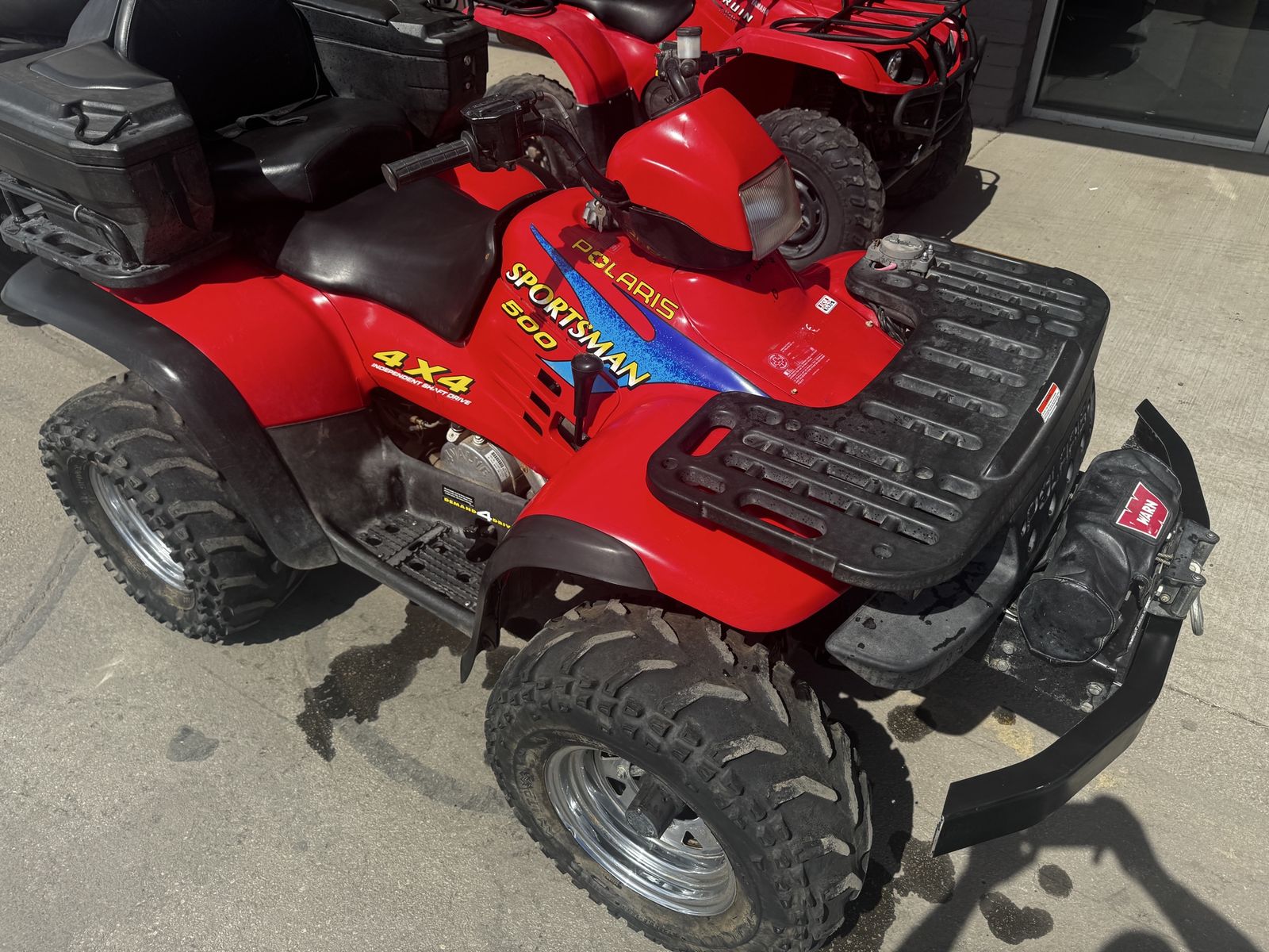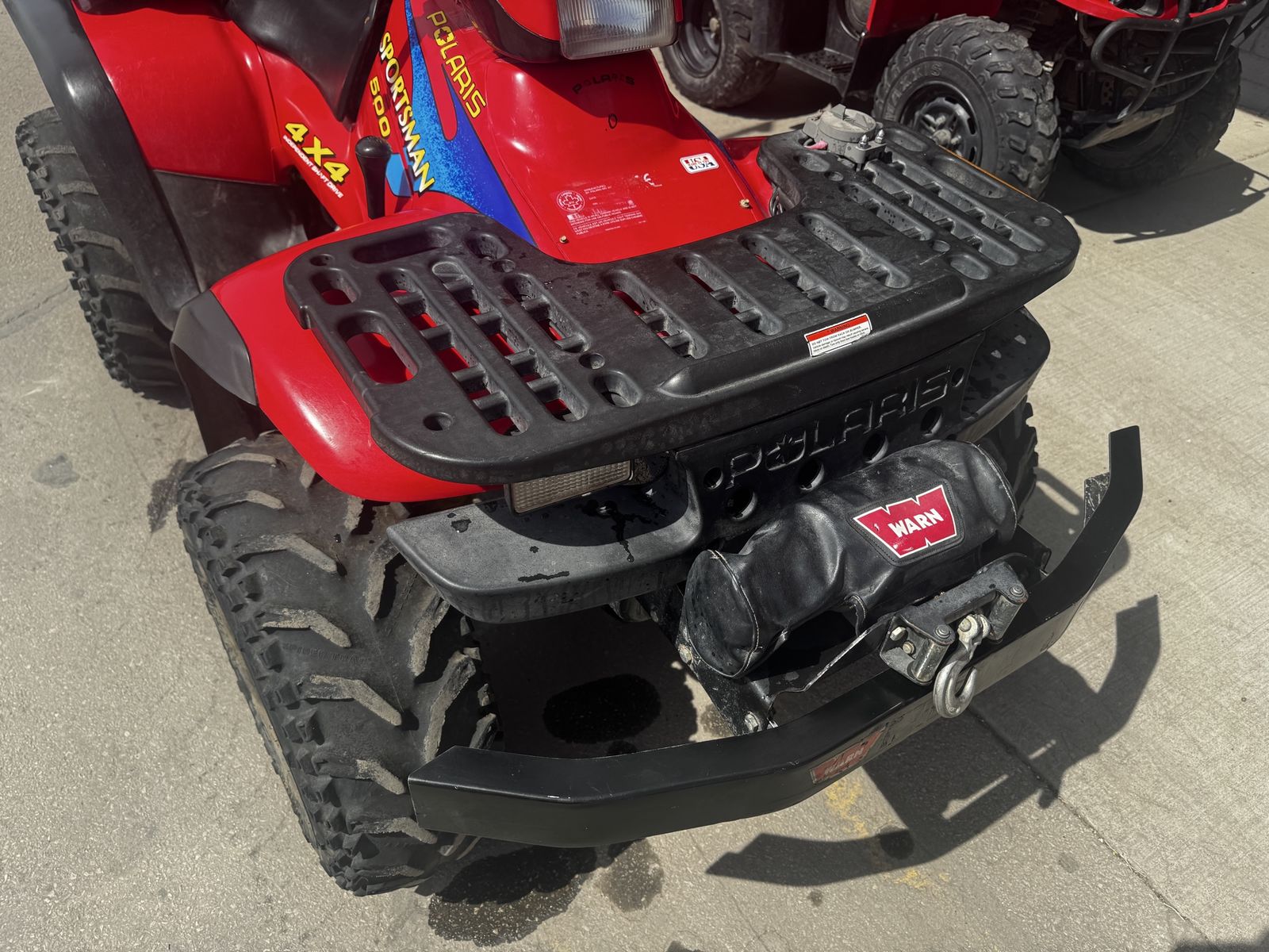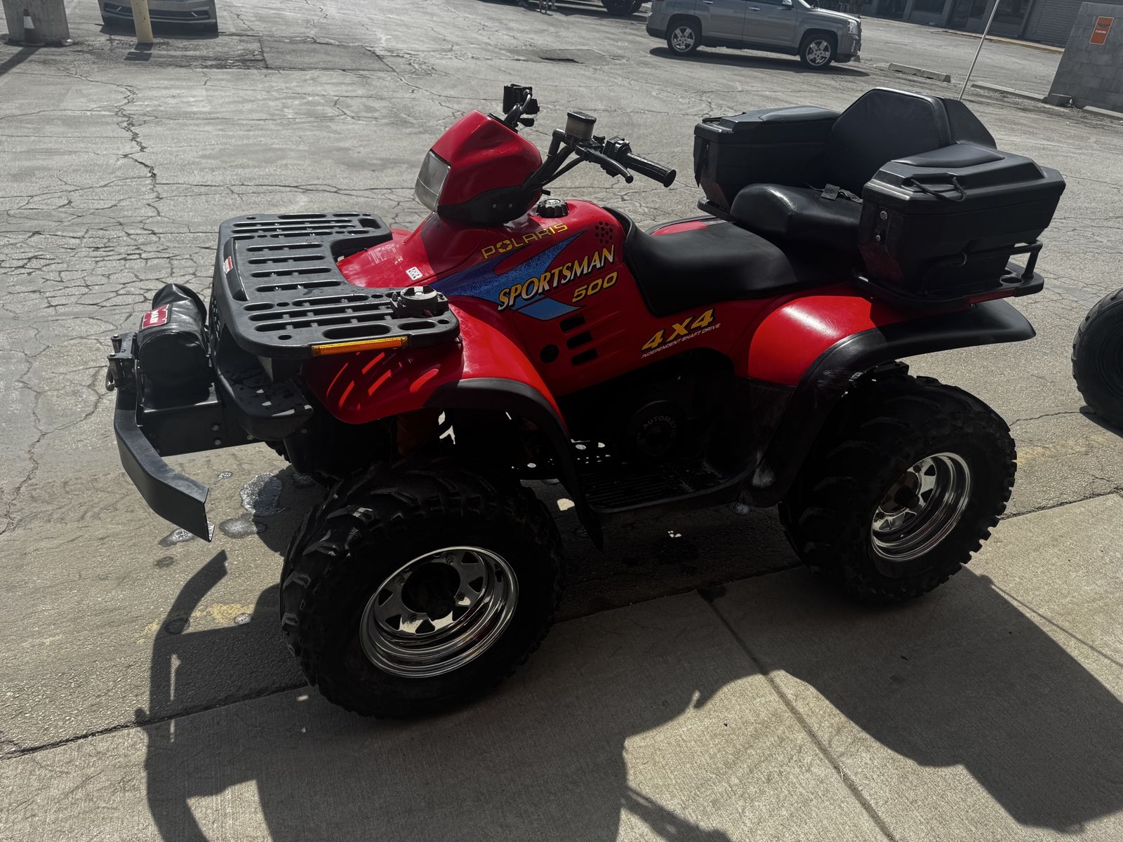 ApplePay2004 Polaris sportsman 500 in very good condition with upgraded bumpers, worn winch and luggage backseat accessory.