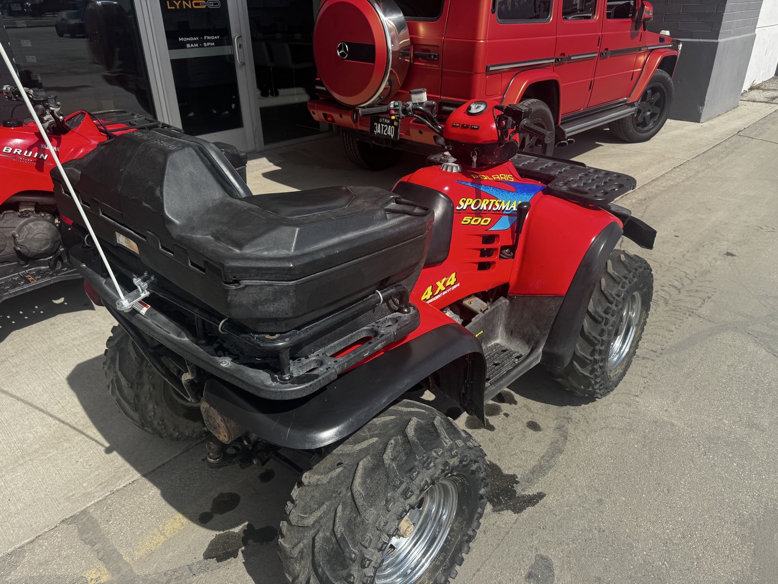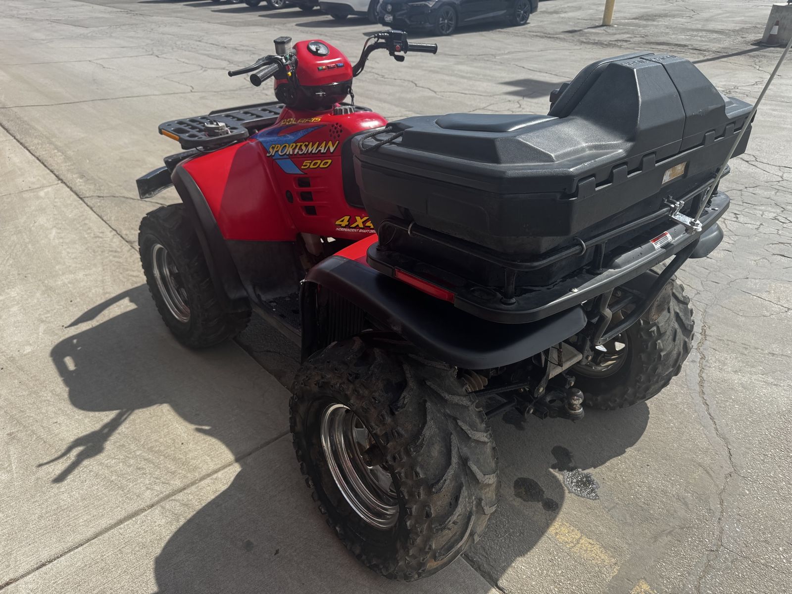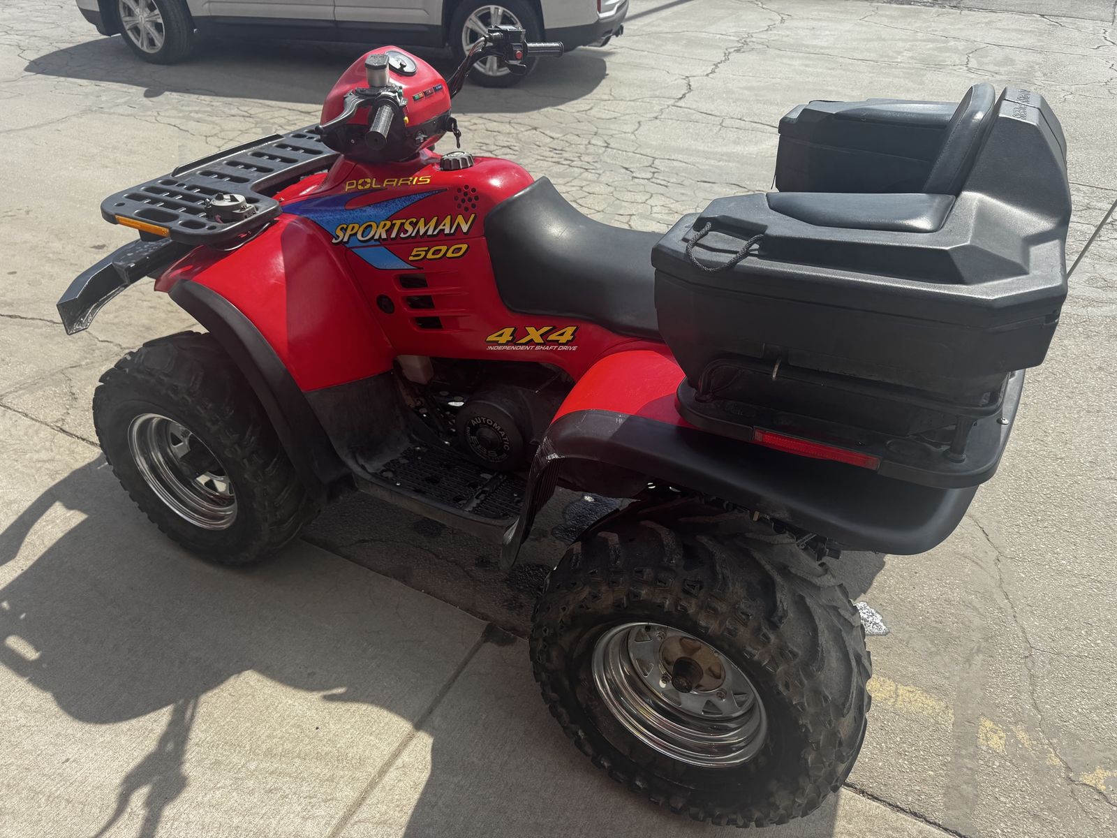 ApplePay2004 Polaris sportsman 500 in very good condition with upgraded bumpers, worn winch and luggage backseat accessory.