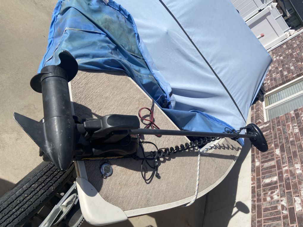 This is a 16’ Klamath DLX hull with a 2009 50h.p. Evinrude E-tec motor and 2010 4 h.p. Yamaha 4 stroke trolling motor. Both motors are in great working condition. Last service was done by Dicks boat shop in June of 25’. I have only run non-ethanol through both motors. And have always used the recommended Evinrude oil in the big motor. I’ve changed the lower unit gear oil every other year. This is setup to be a versatile fishing boat. With the front and back decks, I mostly used it to bass fish but with the trolling motor and rod holders it’s also a great trolling boat. It is very stable for how light weight it is. This specific hull from Klamath is designed for big water. When Lake Powell and Flaming Gorge get nasty it handles it easily. Comes with the fish finder shown in pic. Top speed is 29 mph. But realistically with 2 people and gear at 90% throttle you hover around 24-25 mph. Comes with a 2nd prop that is quicker out of the hole but slower top speed. Does not come with black metal bracket on front. The last 3 pictures are the minn kota that is coming off the boat I’m buying and will be included with this boat. It is a 24v minnkota and will be way more power than you’ll need. $5500 o.b.o