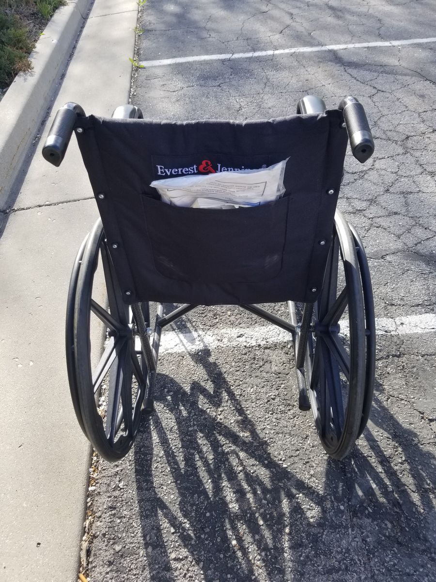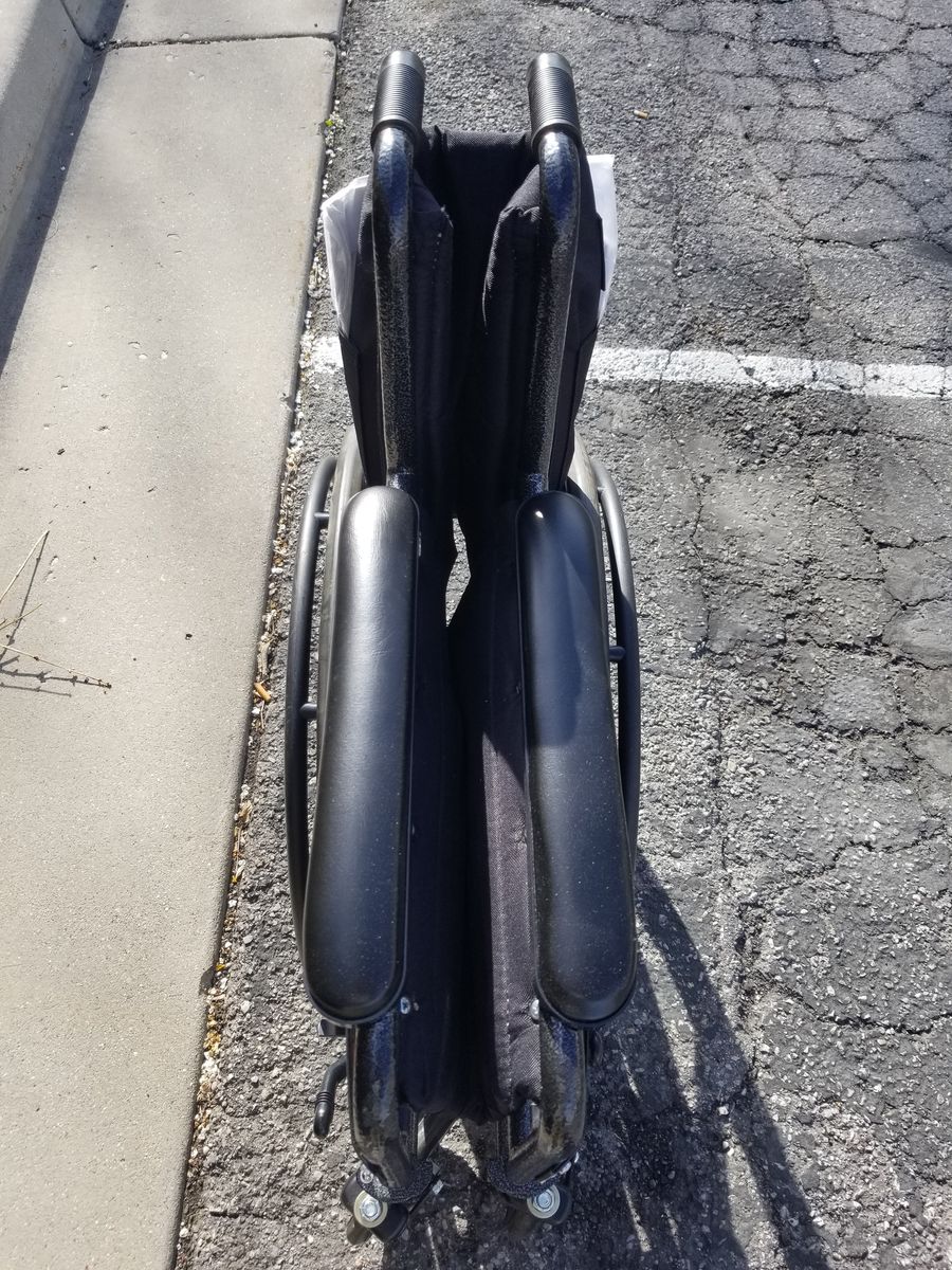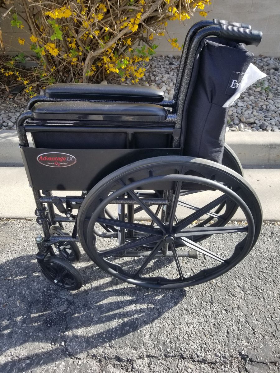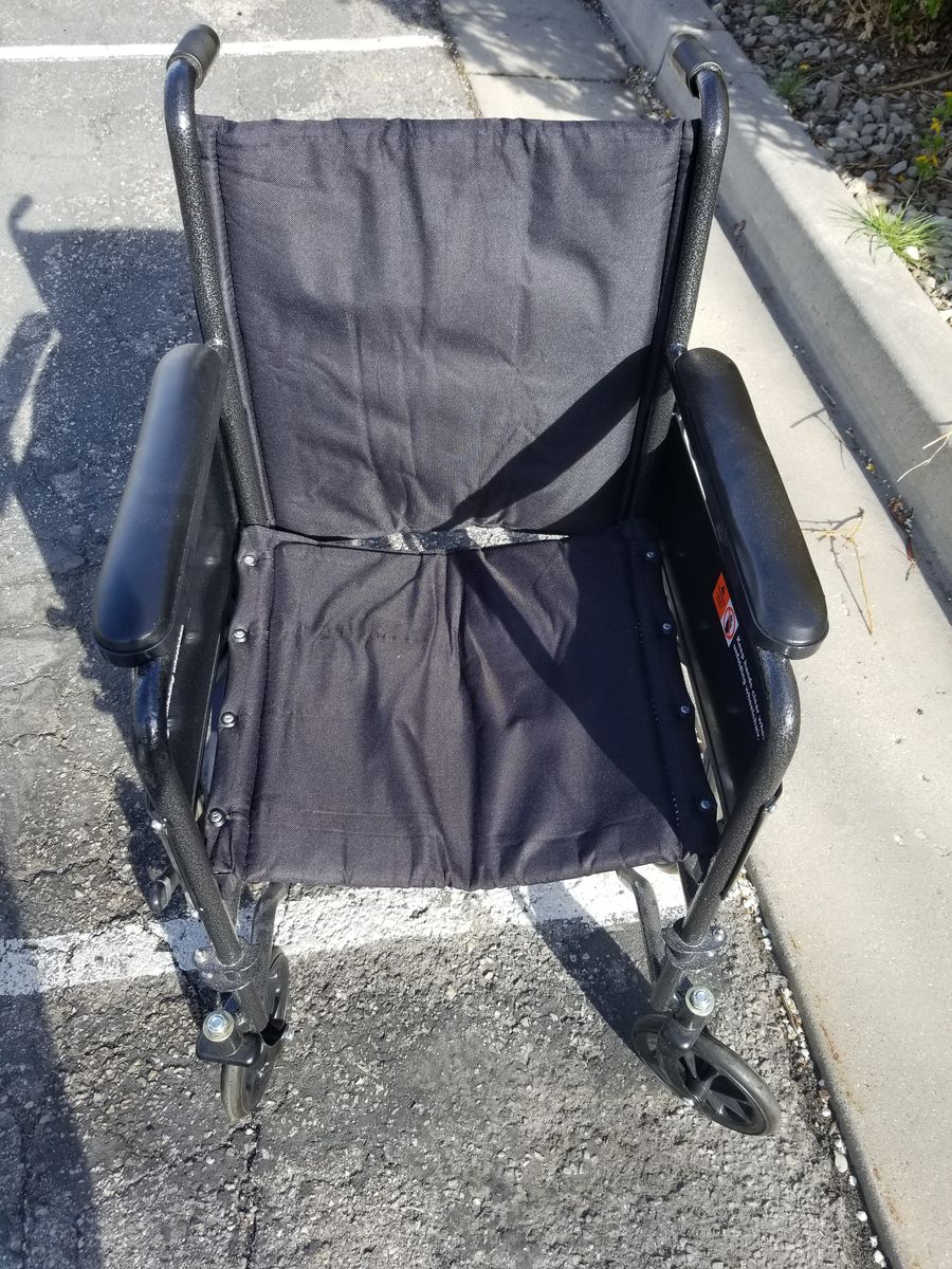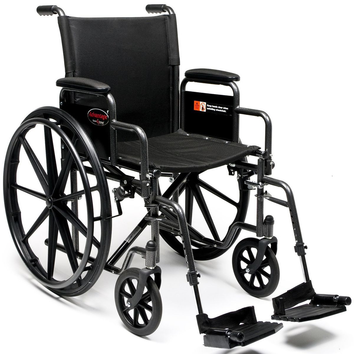 This model has the following features: Folding frame, removable desk or full length armrests, durable nylon upholstery, removable footrests or elevating leg rests, supports up to 300 lbs.